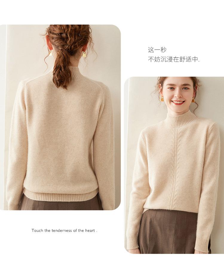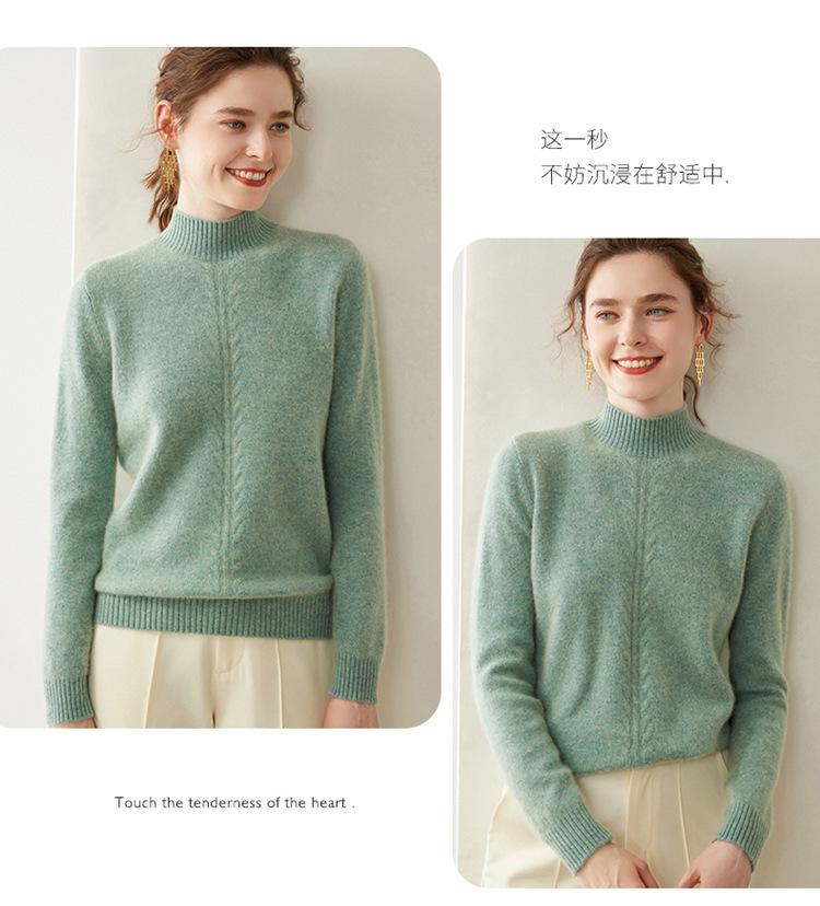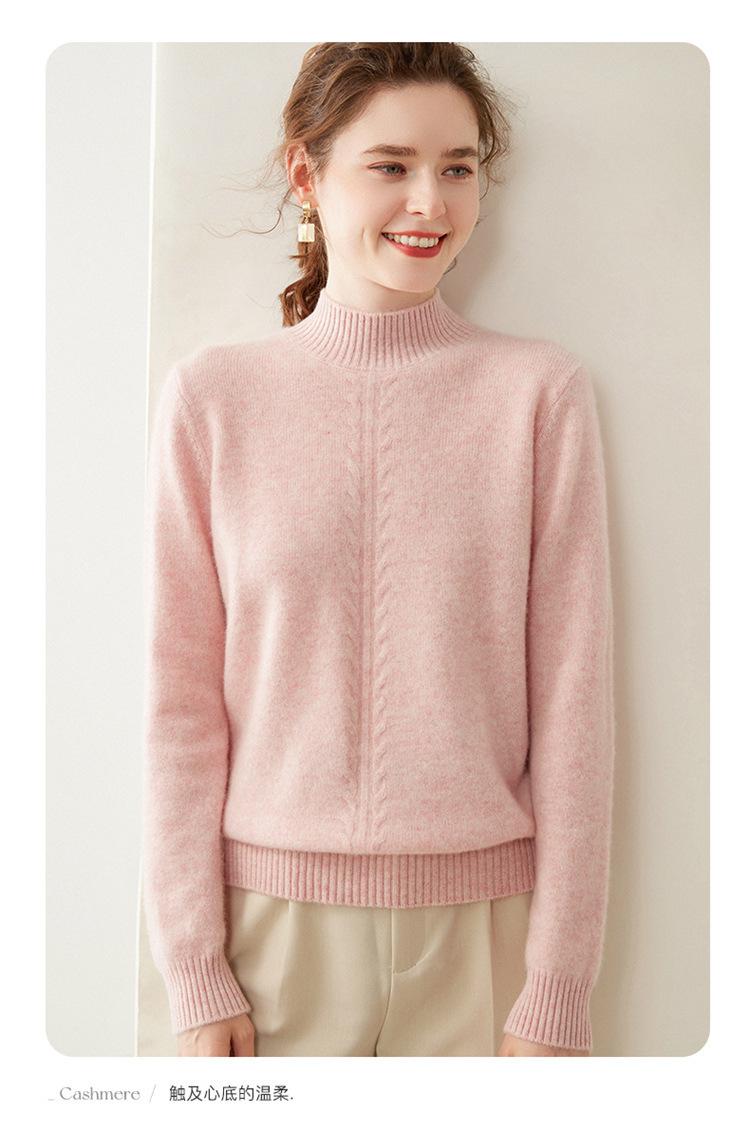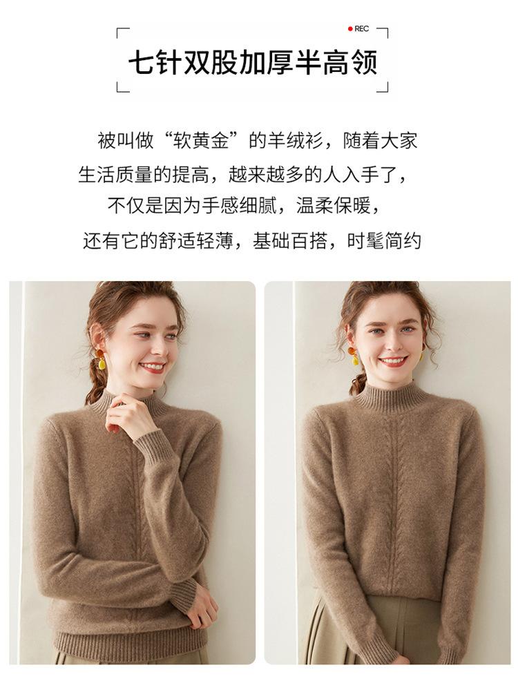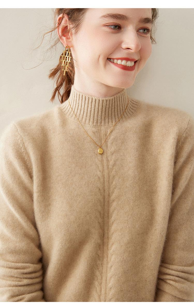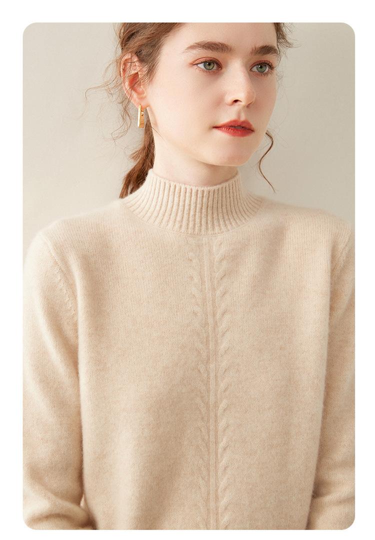Suéter de Cachemira de Cuello Alto para Mujer Otoño e Invierno Nuevo Tejido Grueso de Doble Hebra de Siete Agujas Suéter Básico Tejido Jersey Jacquard de Color Puro Lana