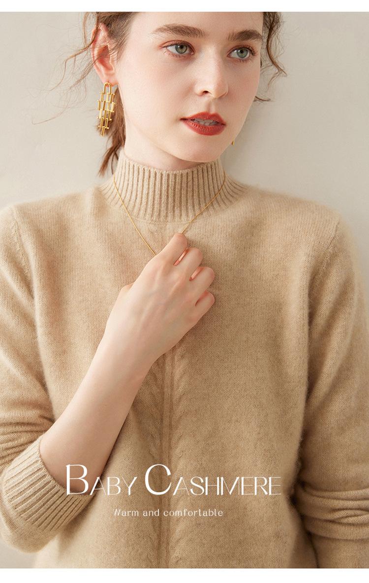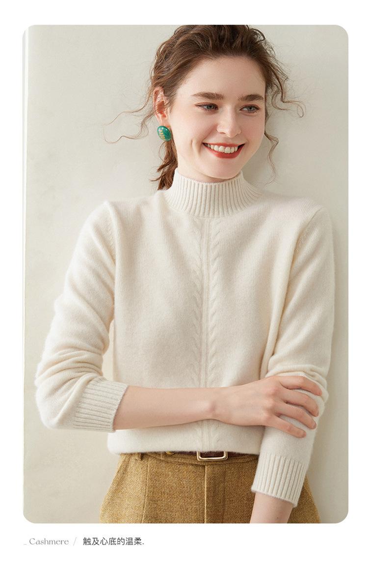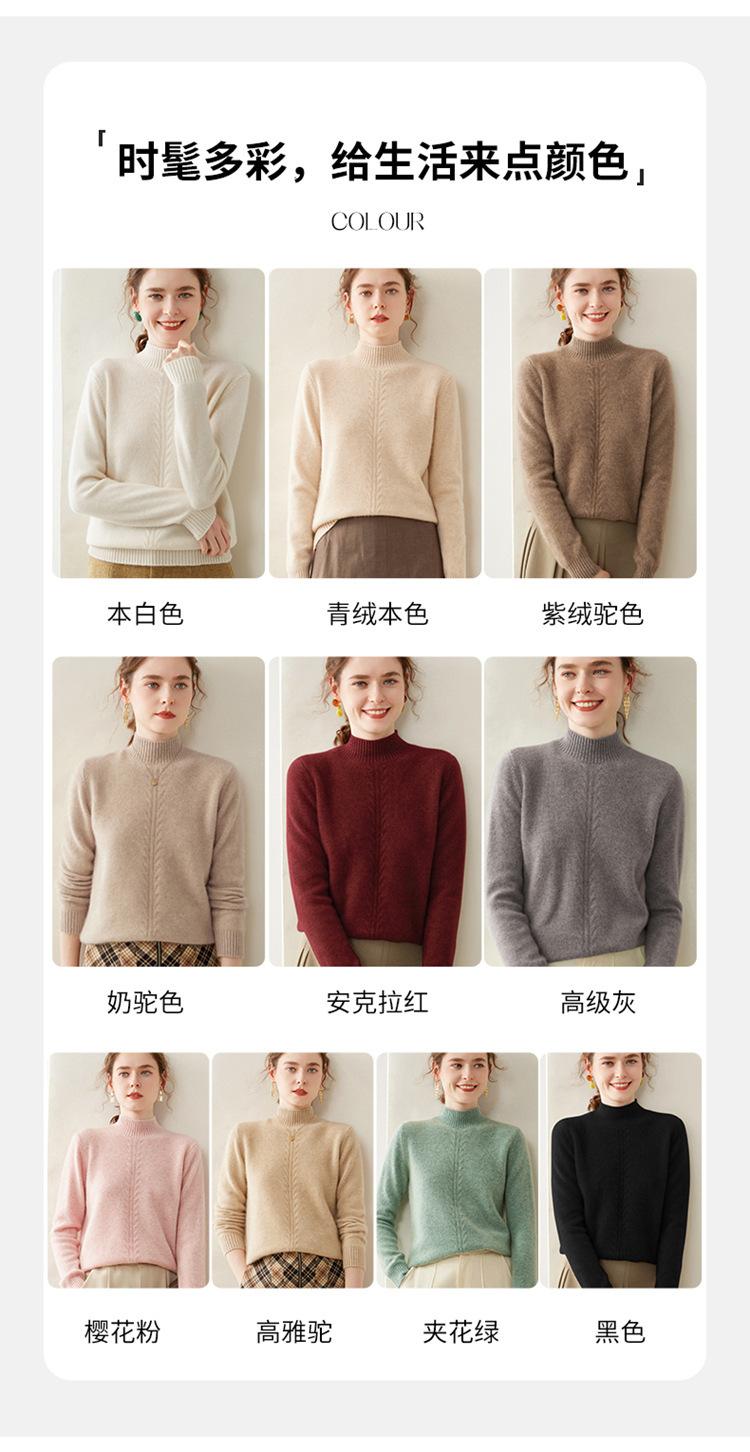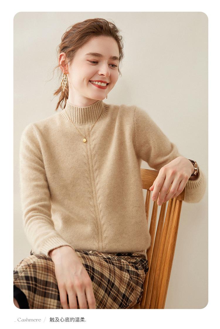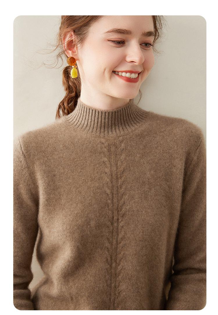 Suéter de Cachemira de Cuello Alto para Mujer Otoño e Invierno Nuevo Tejido Grueso de Doble Hebra de Siete Agujas Suéter Básico Tejido Jersey Jacquard de Color Puro Lana