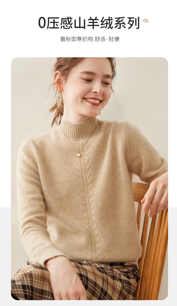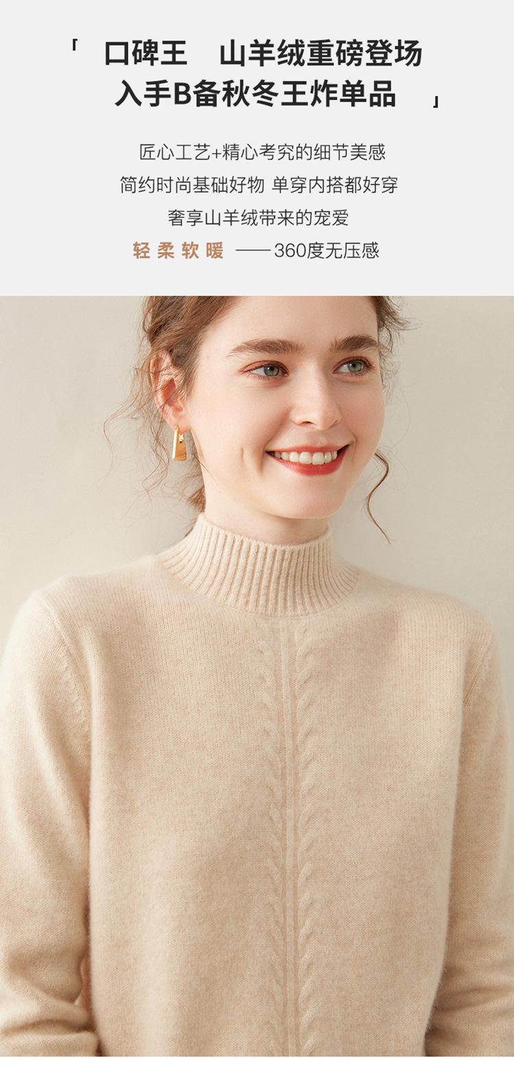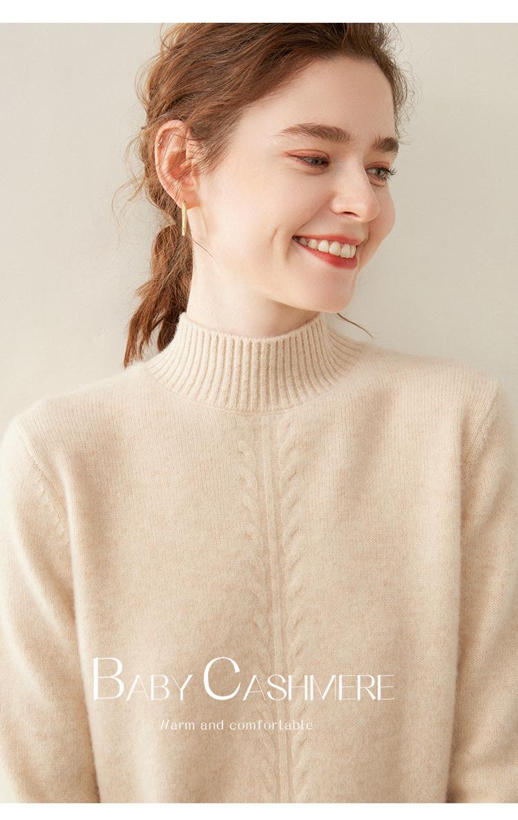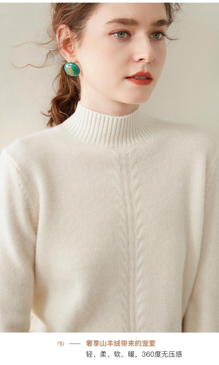 Suéter de Cachemira de Cuello Alto para Mujer Otoño e Invierno Nuevo Tejido Grueso de Doble Hebra de Siete Agujas Suéter Básico Tejido Jersey Jacquard de Color Puro Lana