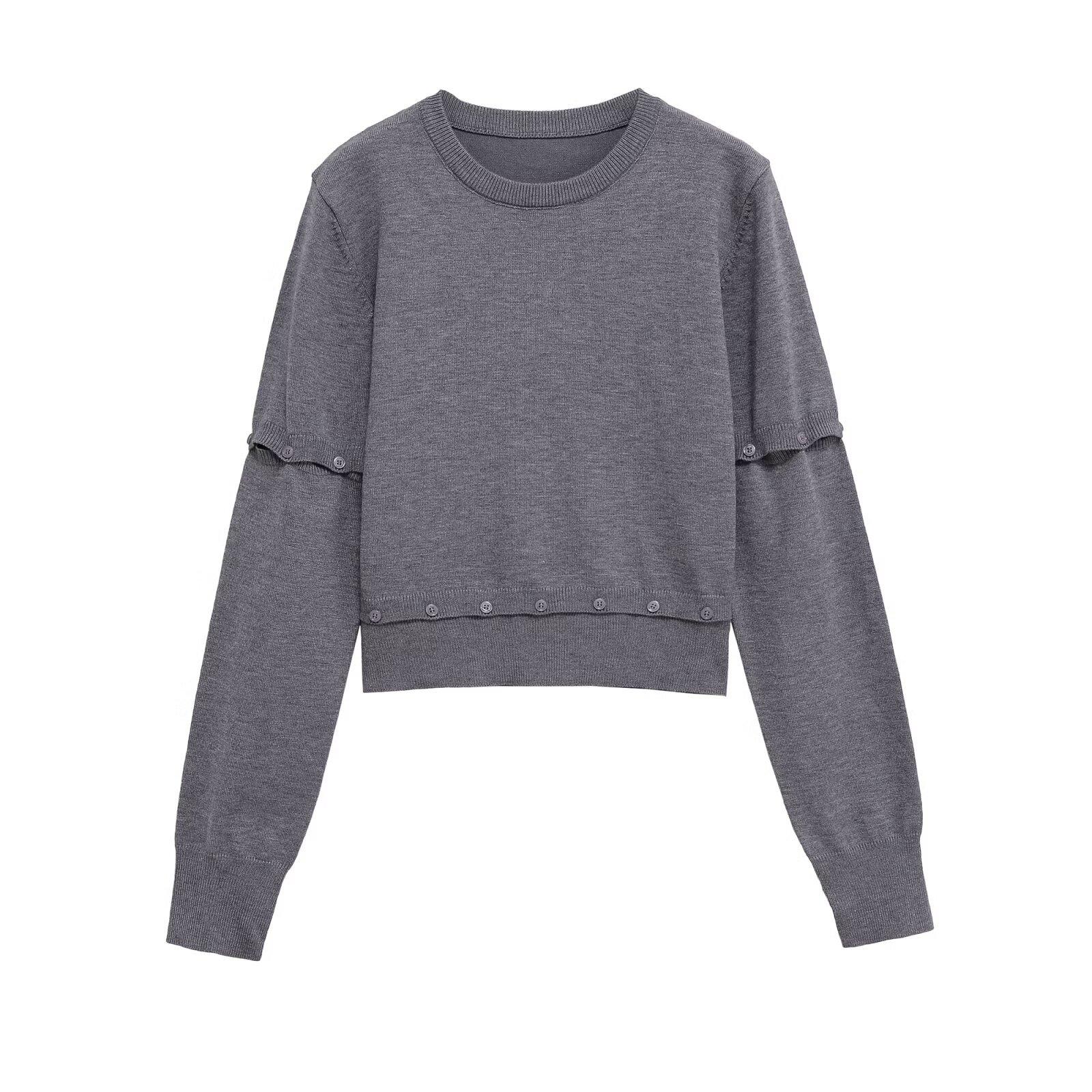 Ropa de mujer transfronteriza al por mayor 2025 otoño nuevo estilo europeo y americano cuello redondo color sólido suéter de punto holgado de temperamento nicho