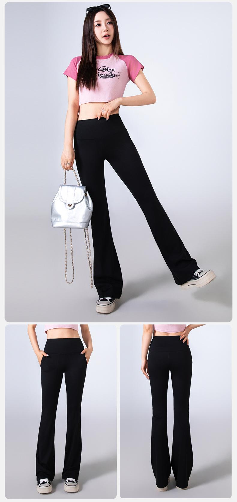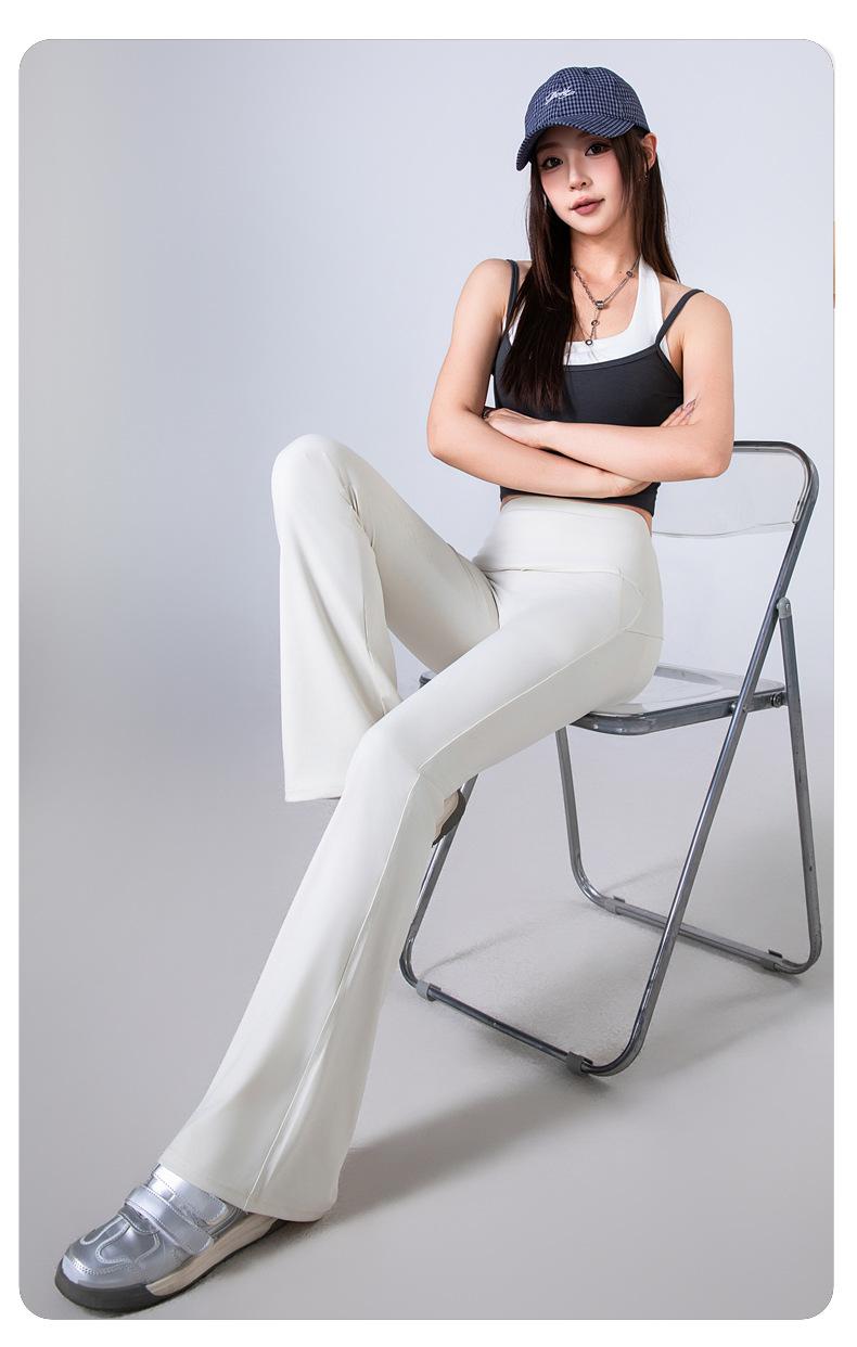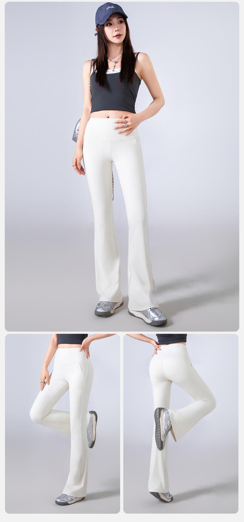 Pantalones Micro Acampanados Blancos para Mujer Estilo Primavera y Otoño Ropa Exterior Cintura Alta Adelgazantes Yoga Estilo Occidental Ajustados Elásticos Tipo Mop