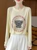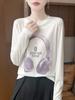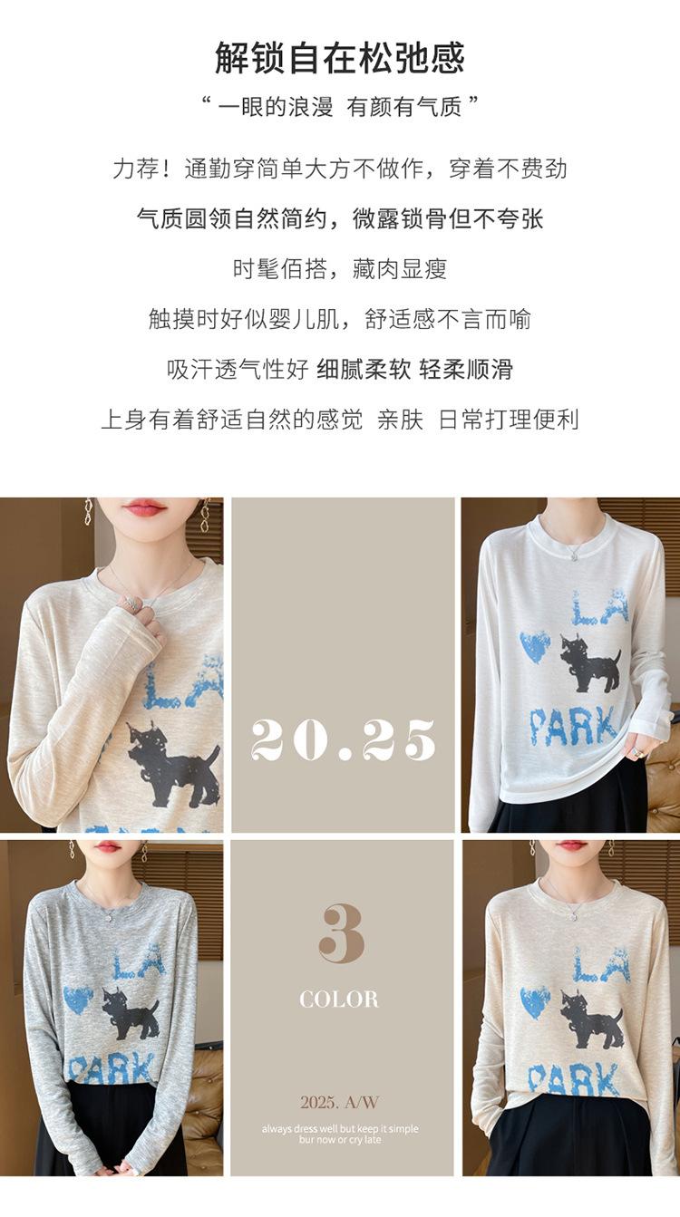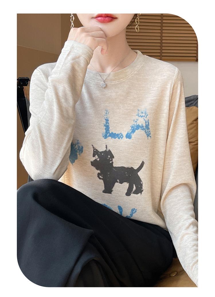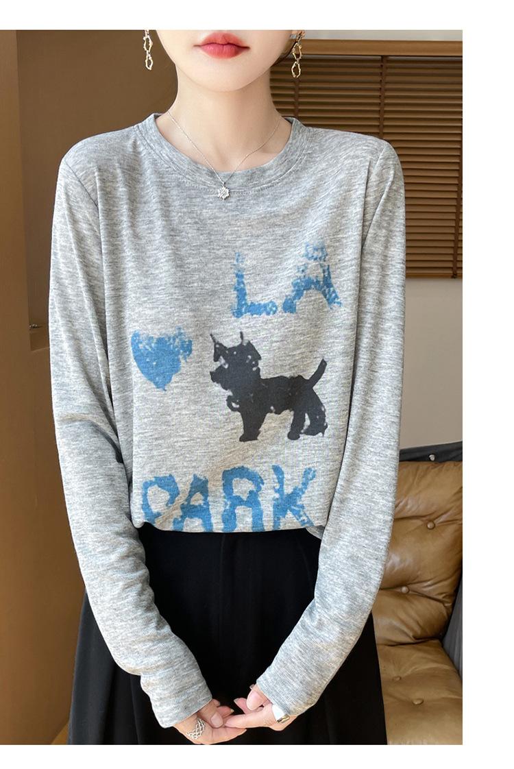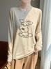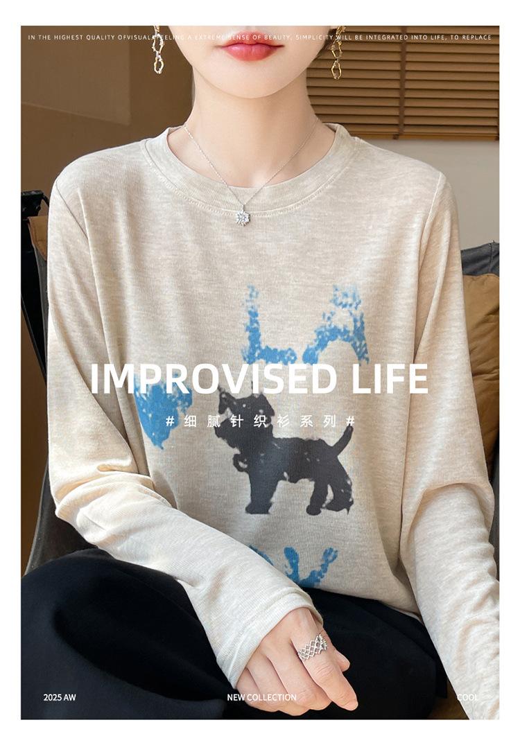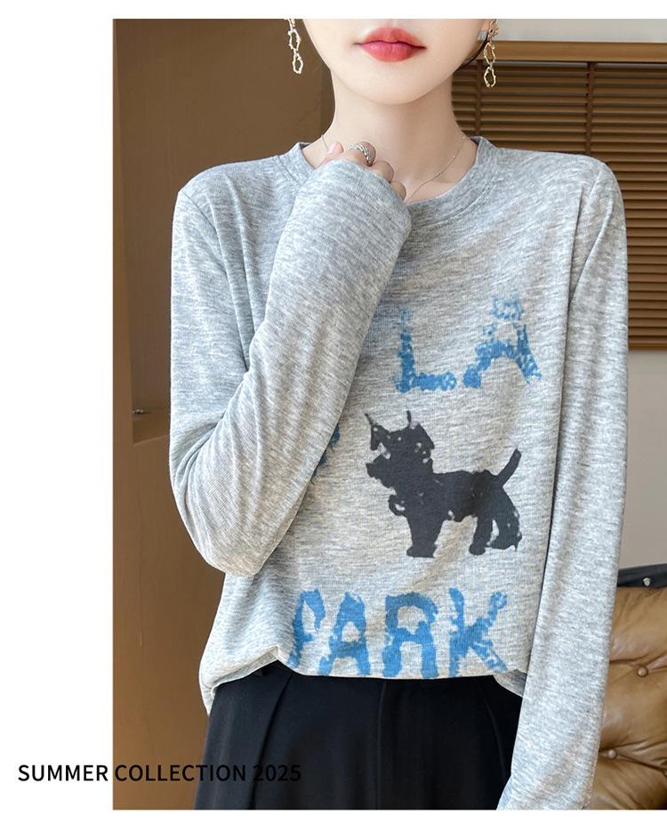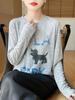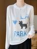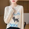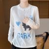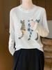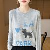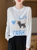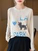 2025 Principios de Otoño Nuevo Tejido Fino Cuello Redondo Manga Larga para Mujer Estampado de Corazones Suéter Holgado Top Básico