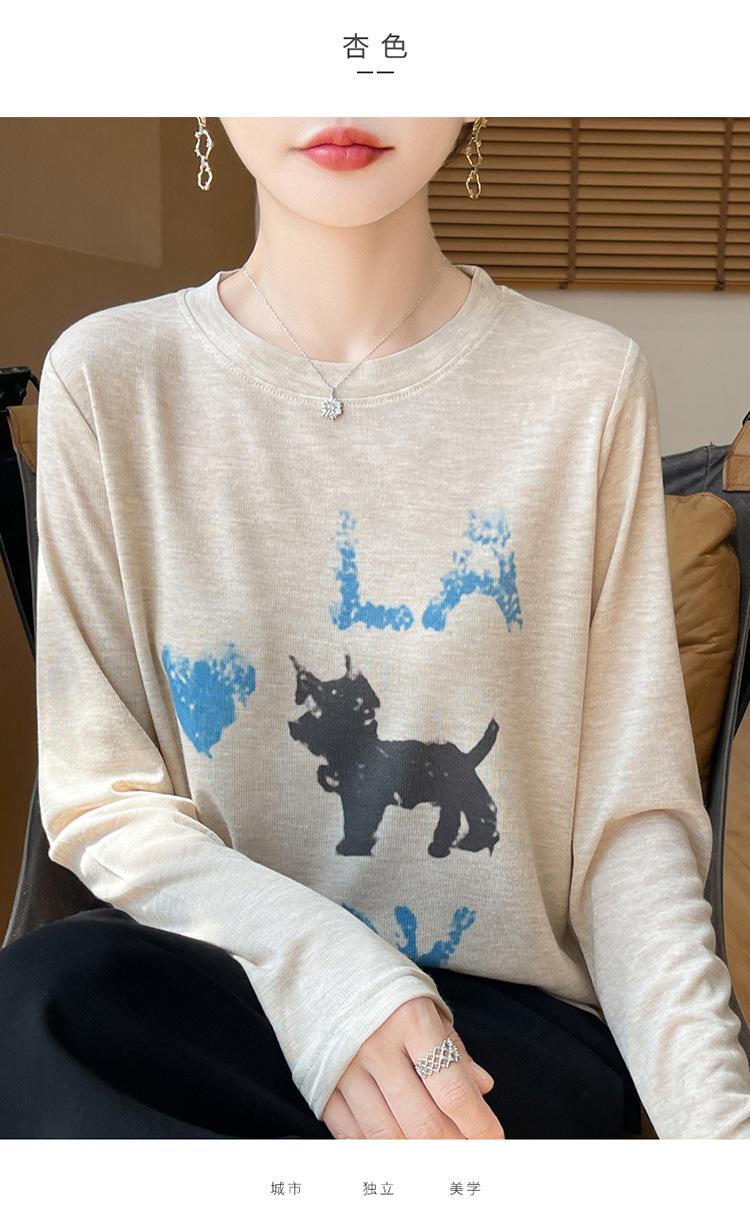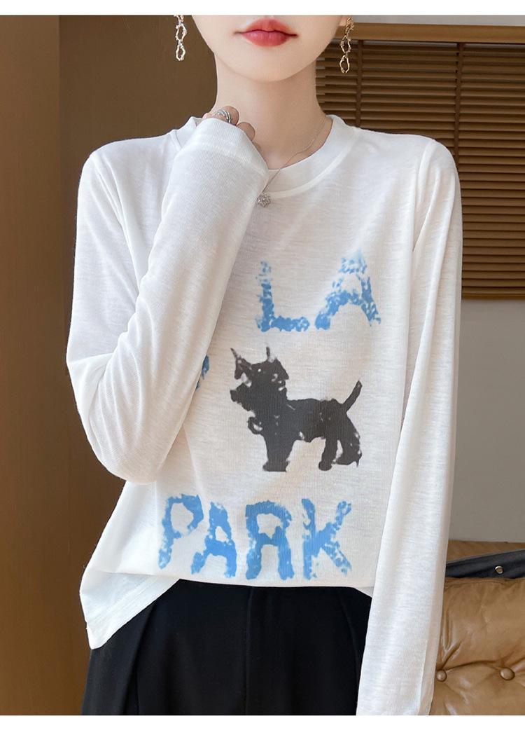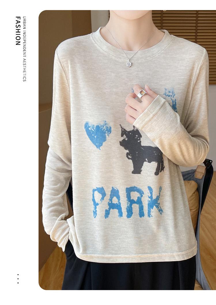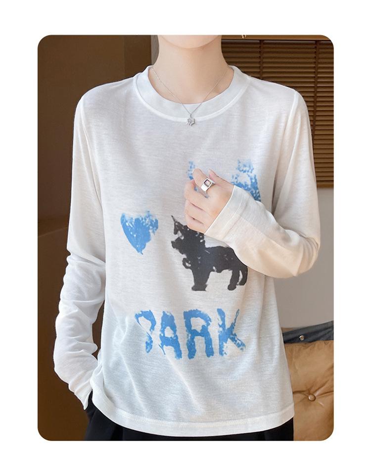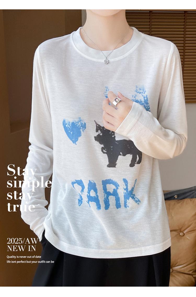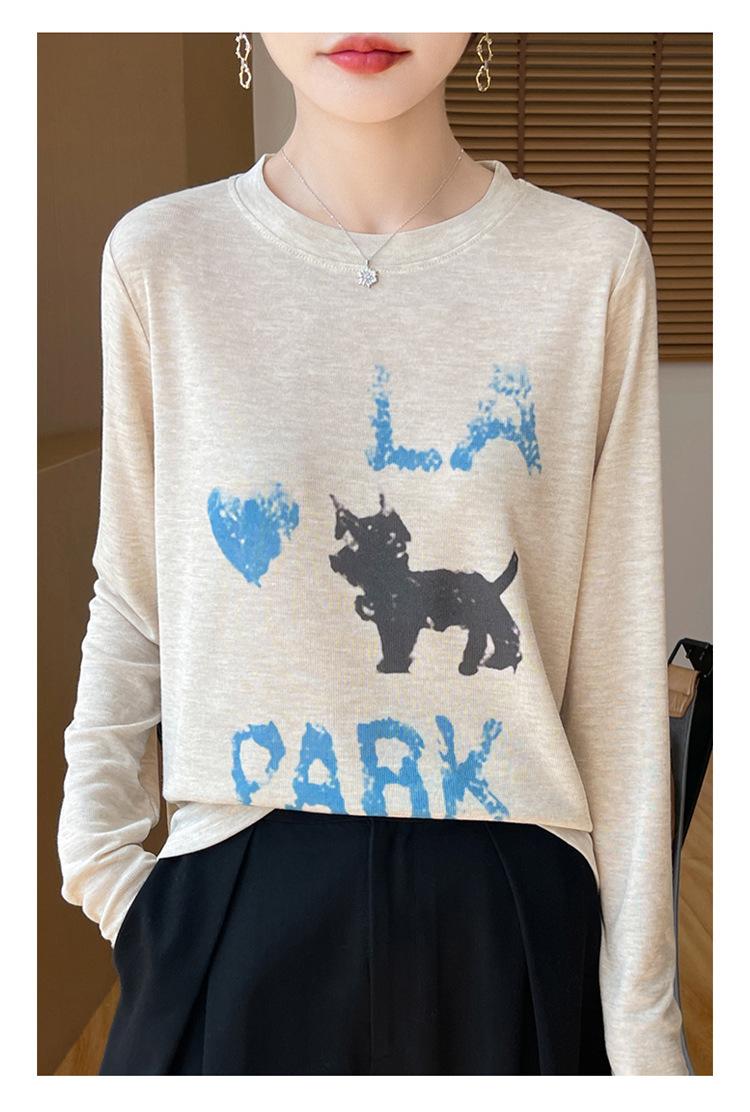 2025 Principios de Otoño Nuevo Tejido Fino Cuello Redondo Manga Larga para Mujer Estampado de Corazones Suéter Holgado Top Básico