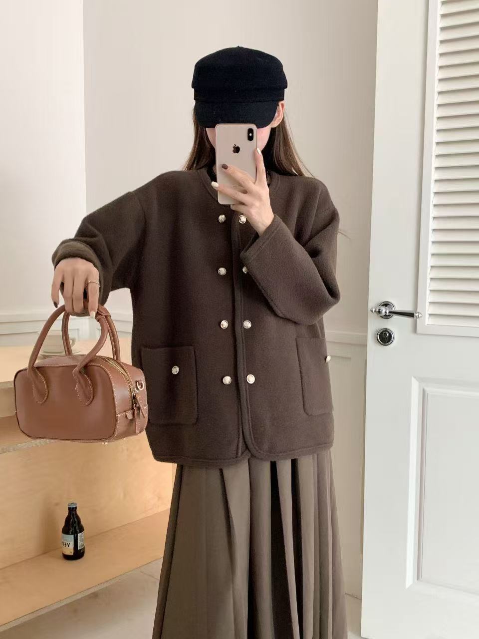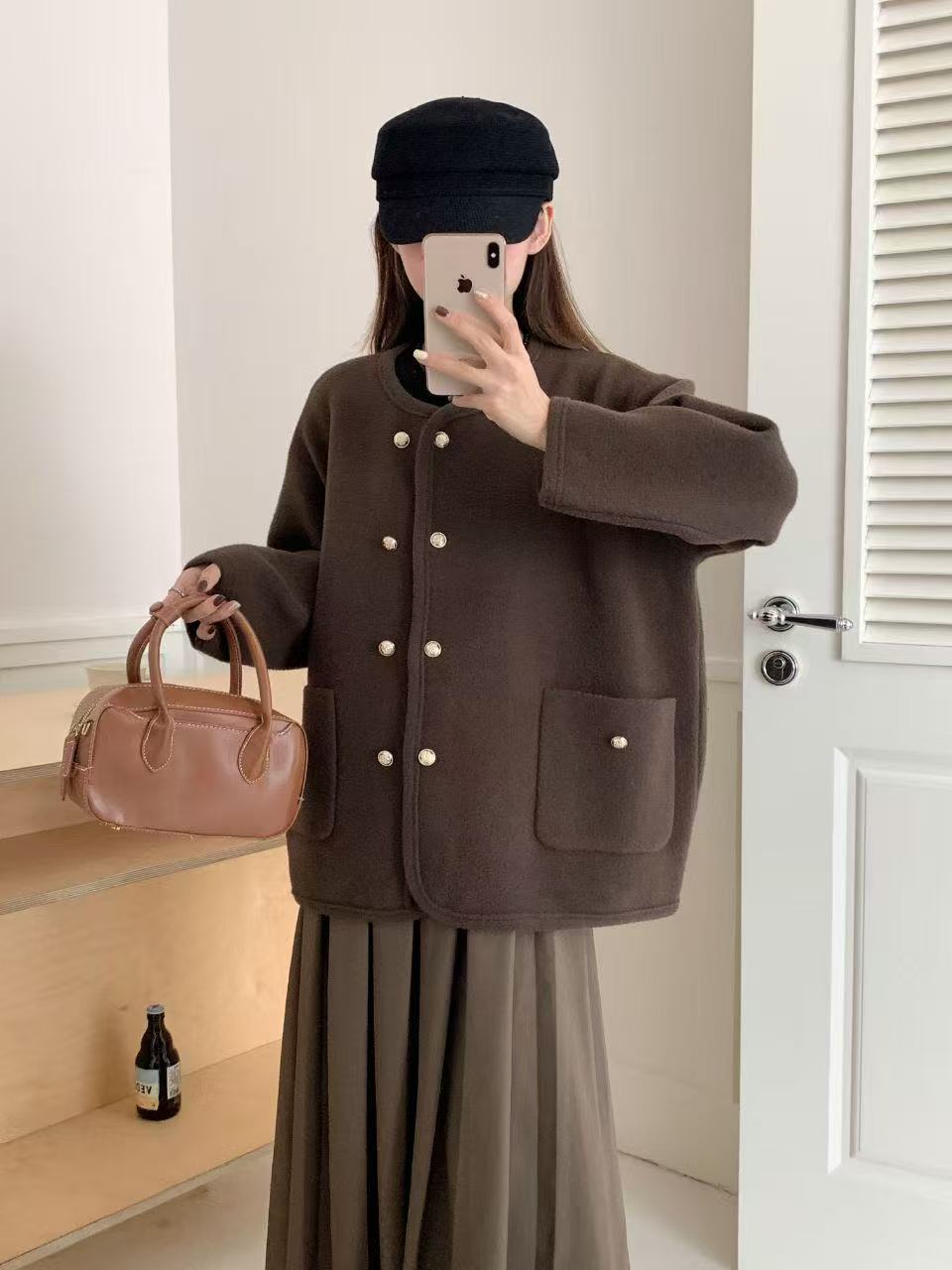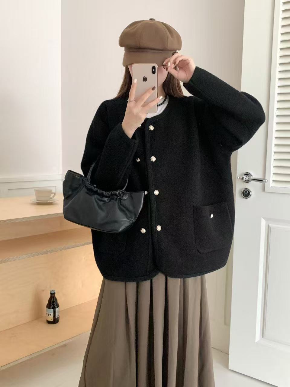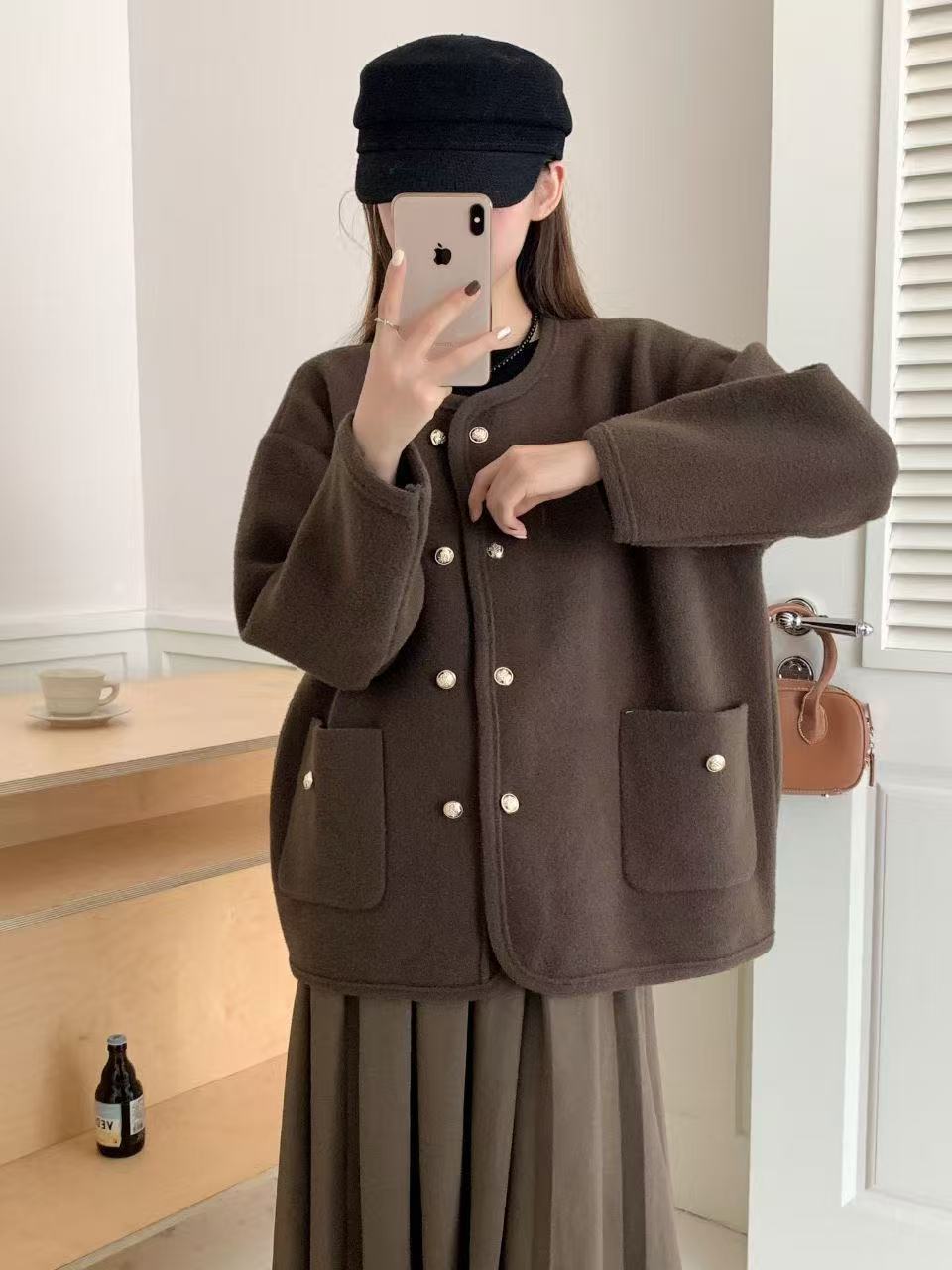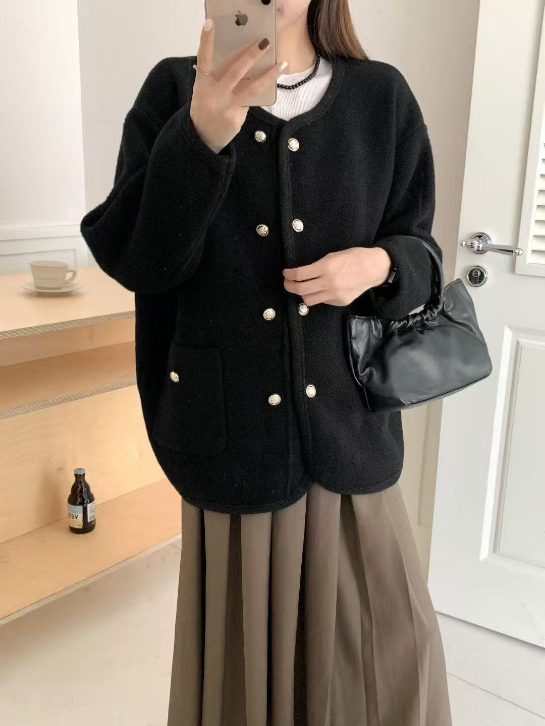 Cárdigan de punto estilo Chanel de temperamento suave coreano para mujer, nuevo otoño e invierno, holgado, perezoso, imitación de doble cara, abrigo de lana, top