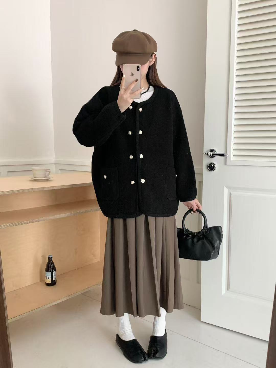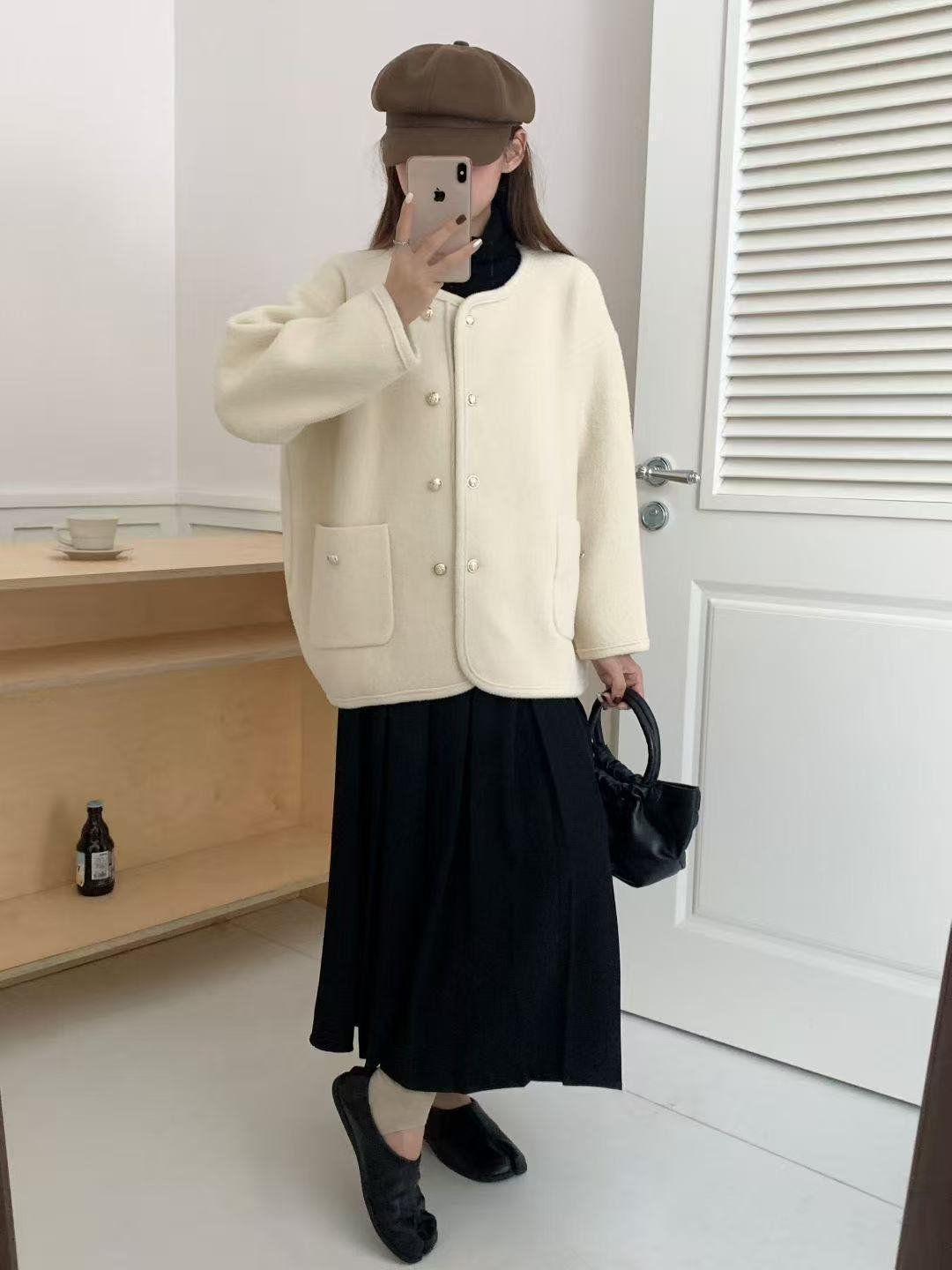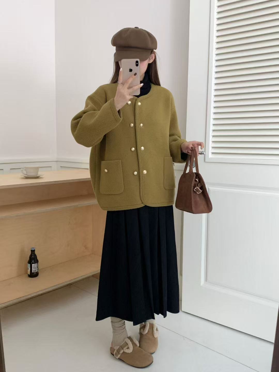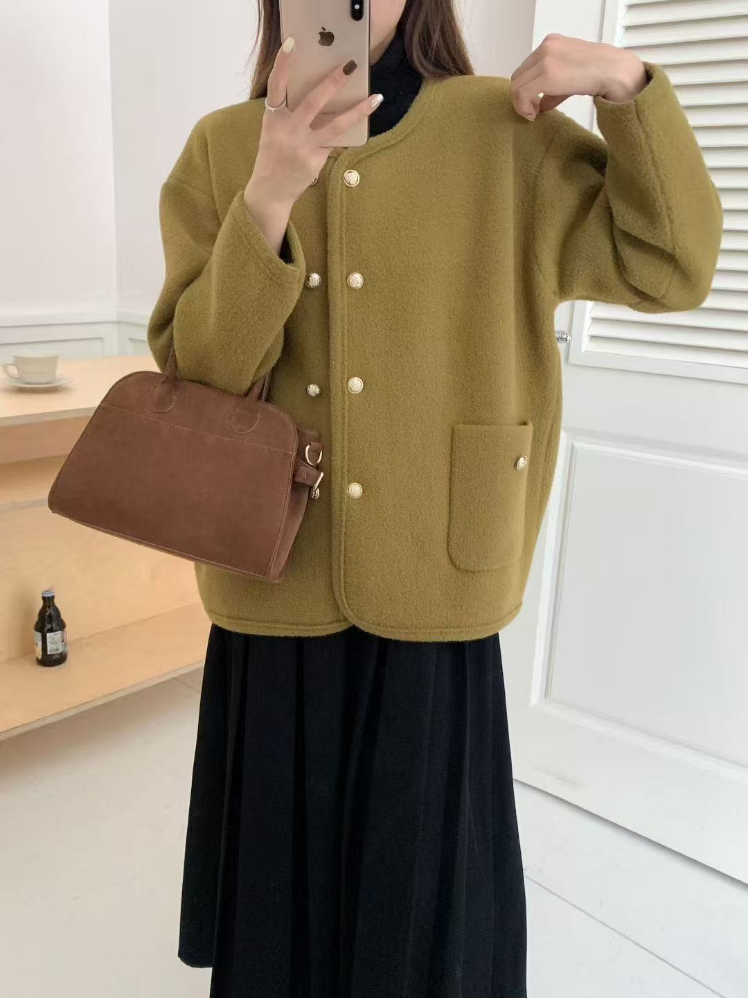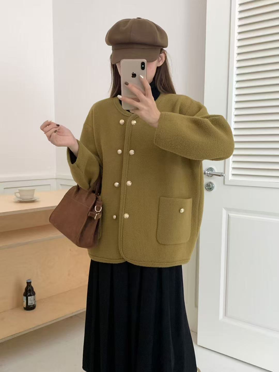 Cárdigan de punto estilo Chanel de temperamento suave coreano para mujer, nuevo otoño e invierno, holgado, perezoso, imitación de doble cara, abrigo de lana, top