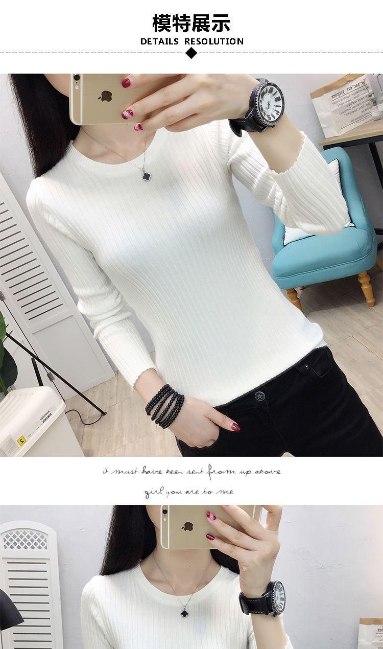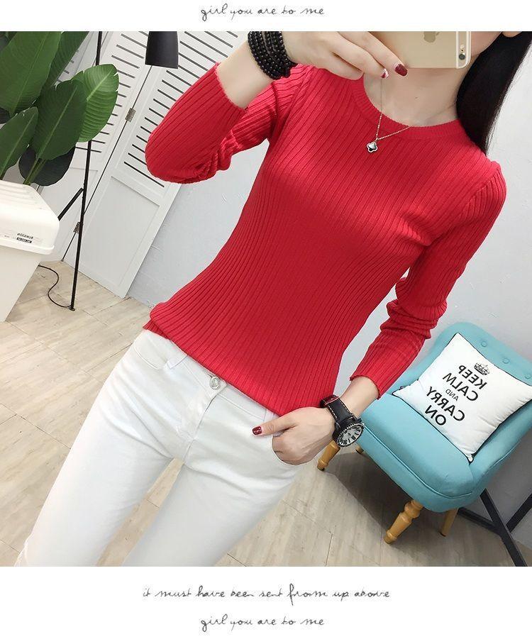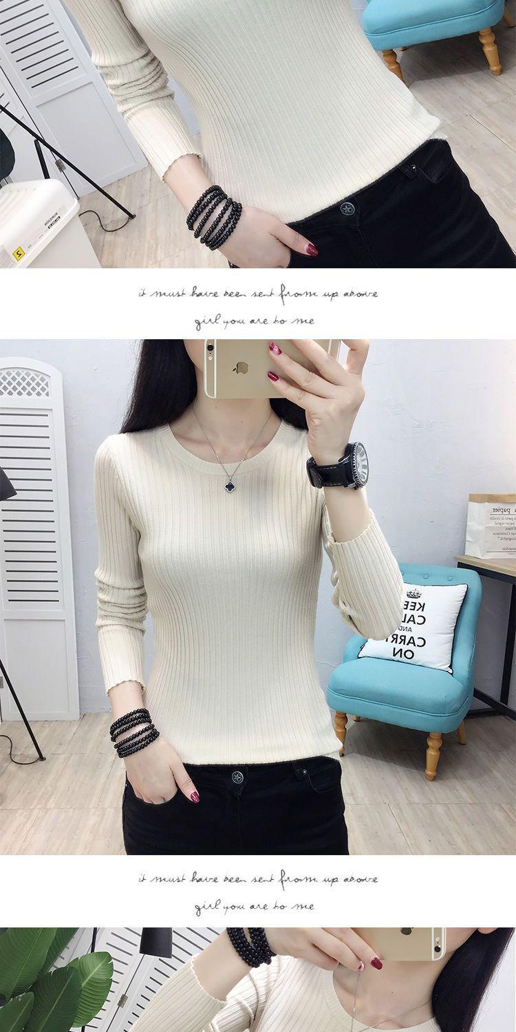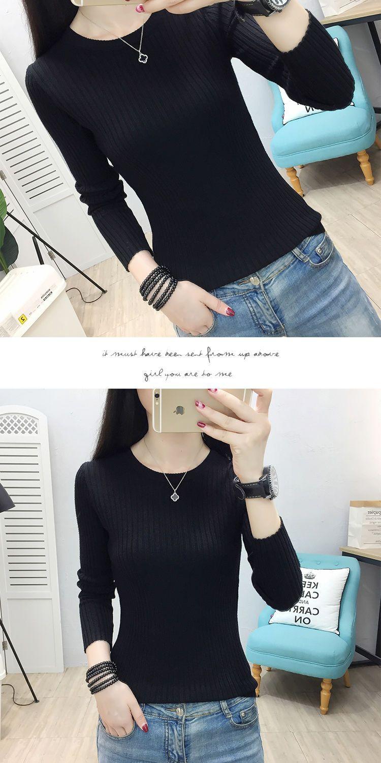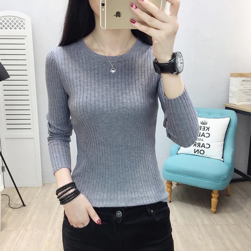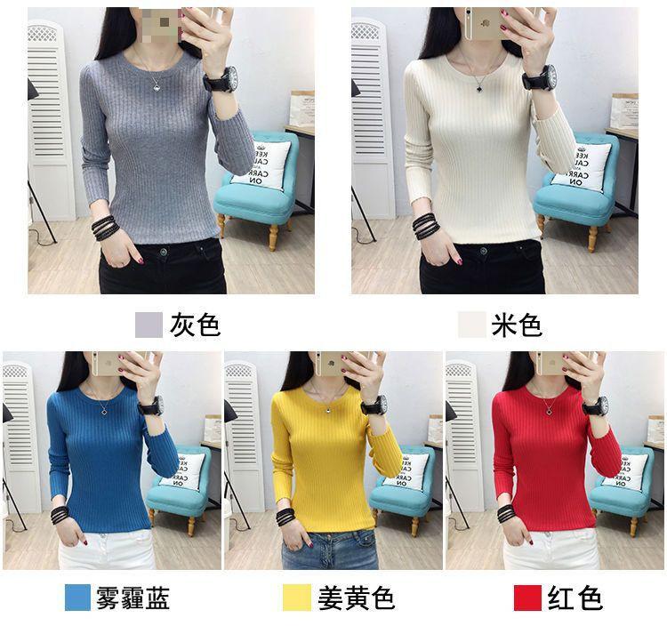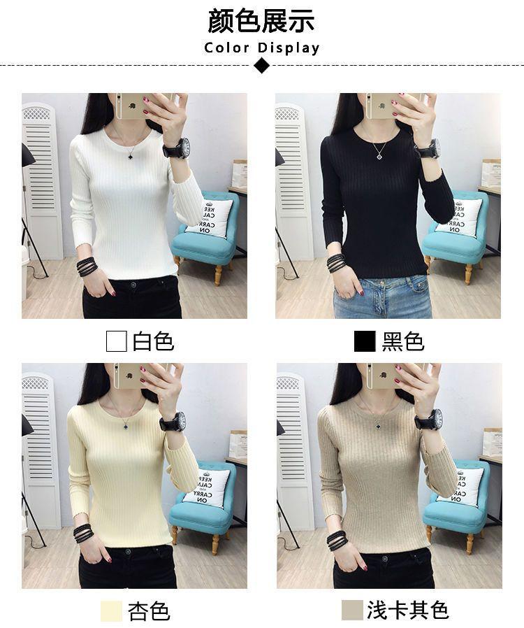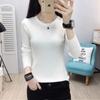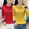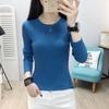 Nuevo Otoño/Invierno Ajustado Manga Larga Capa Interior Top Moderno Suéter Base Tejido Suéter de Cuello Redondo Estilo Chino para Mujer Otoño/Invierno