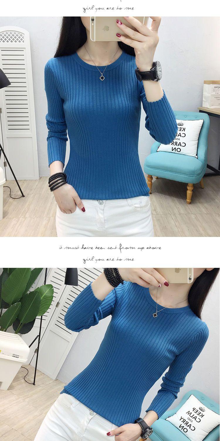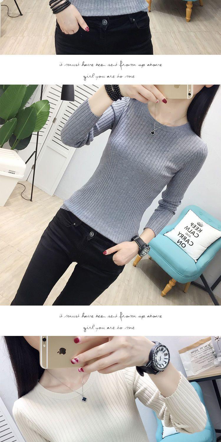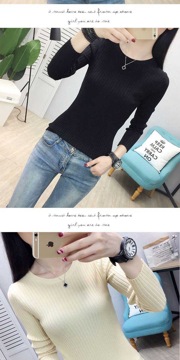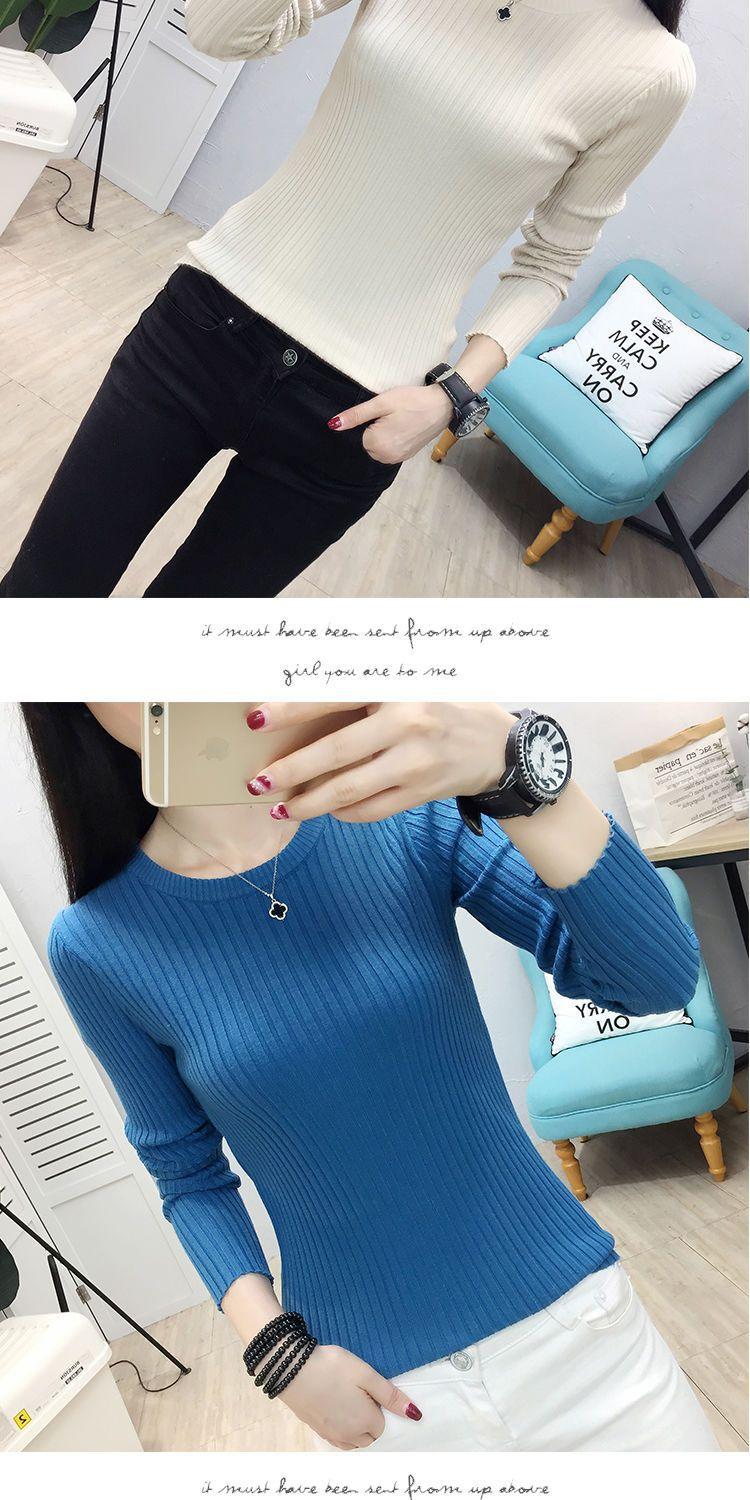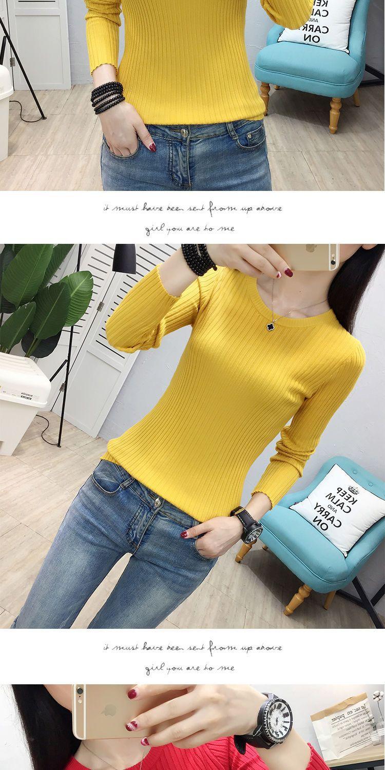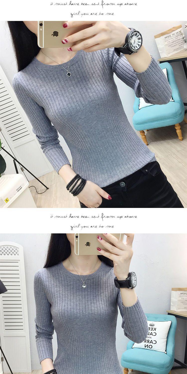 Nuevo Otoño/Invierno Ajustado Manga Larga Capa Interior Top Moderno Suéter Base Tejido Suéter de Cuello Redondo Estilo Chino para Mujer Otoño/Invierno
