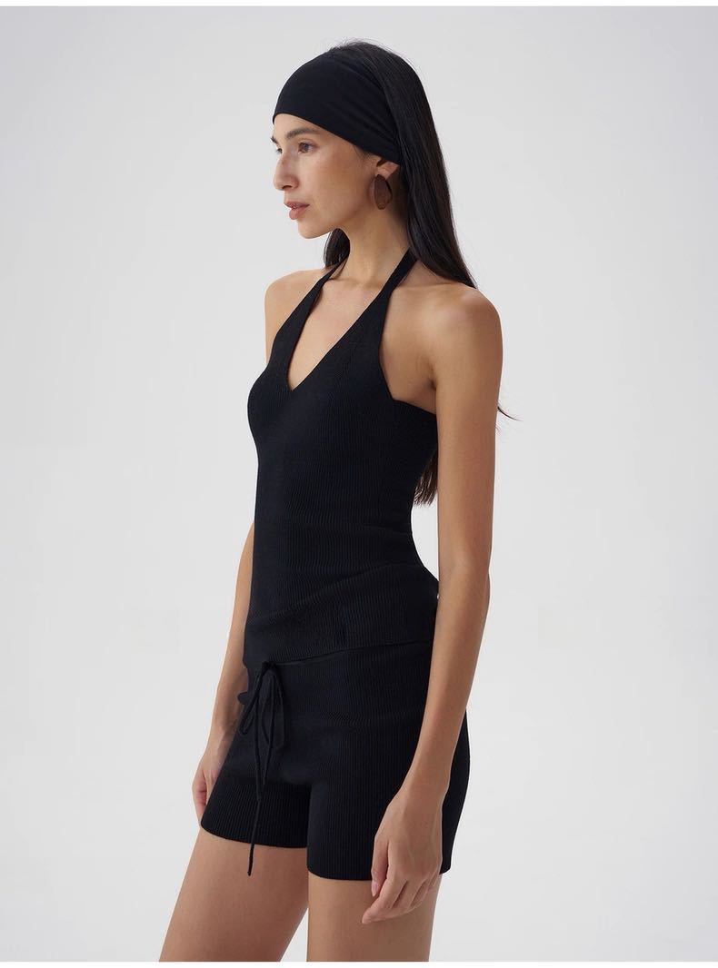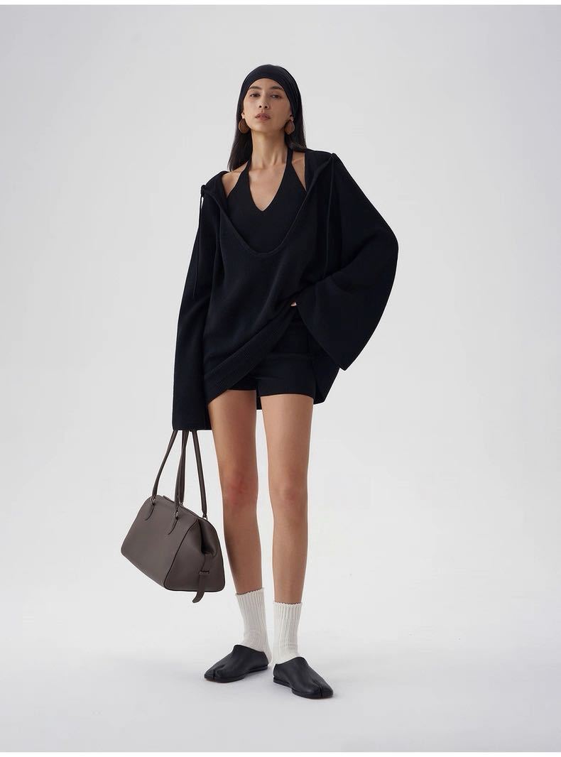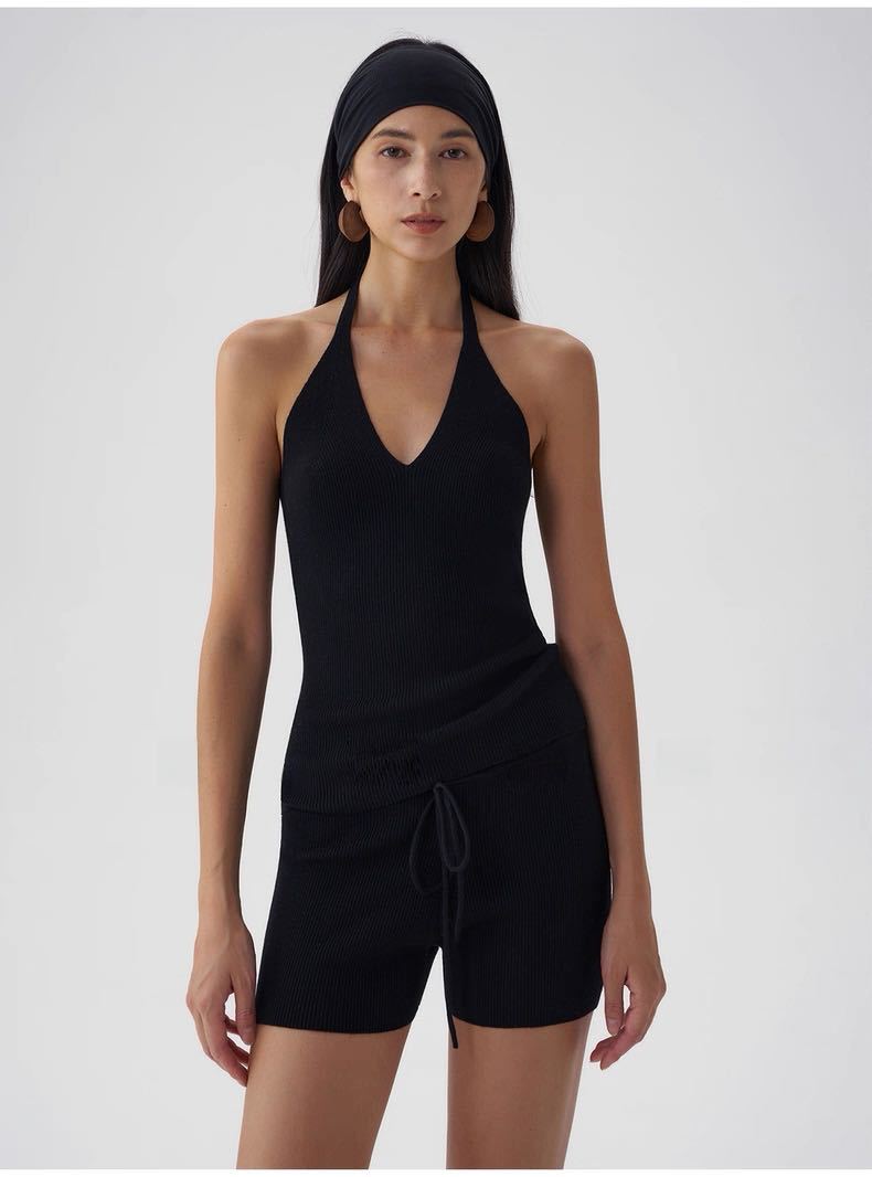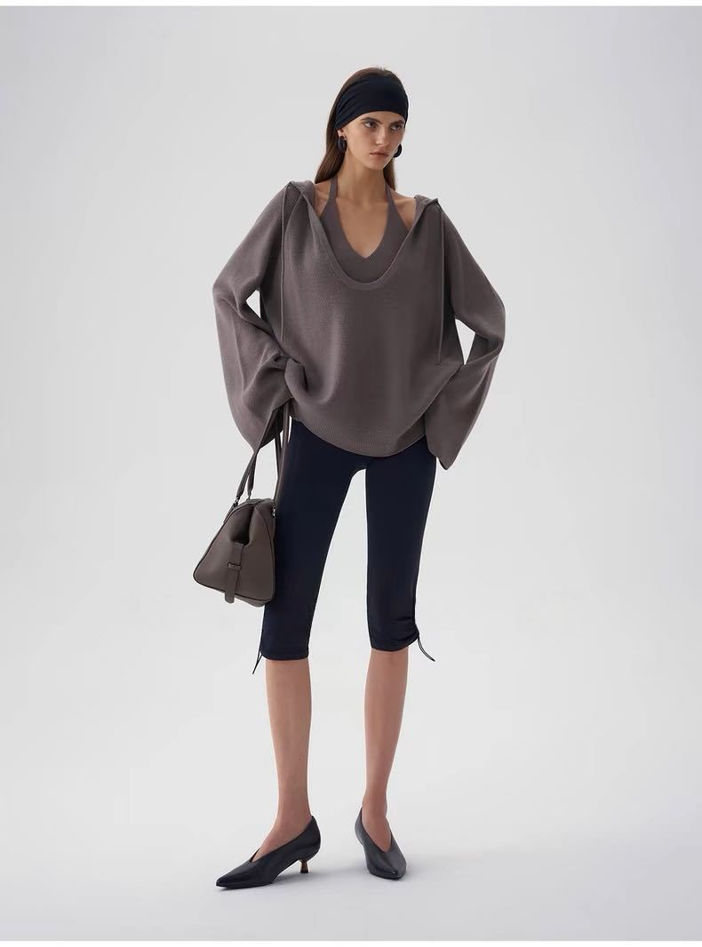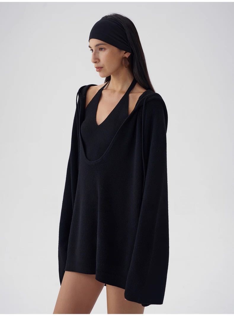 Black halter neck, Oatmeal color halter, Black hooded sweater, Oatmeal-colored hooded sweater