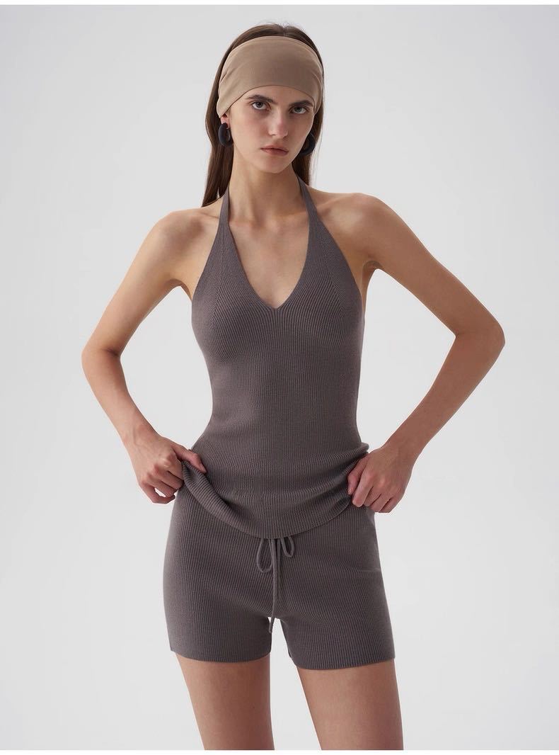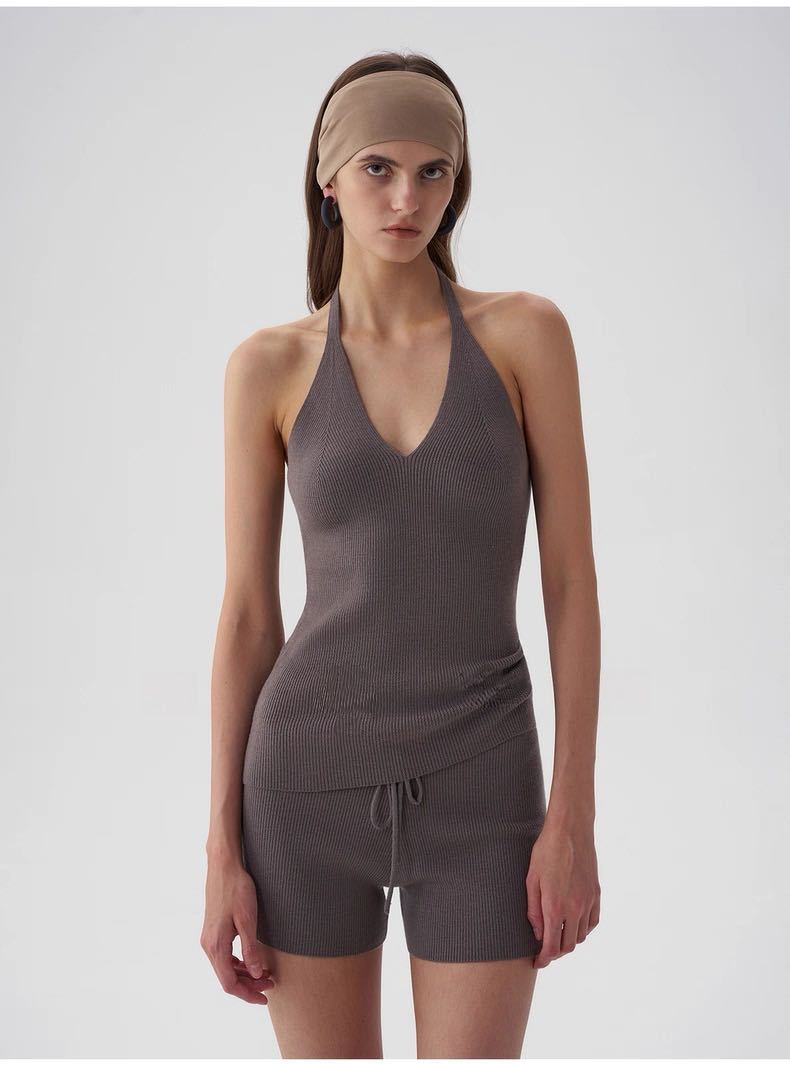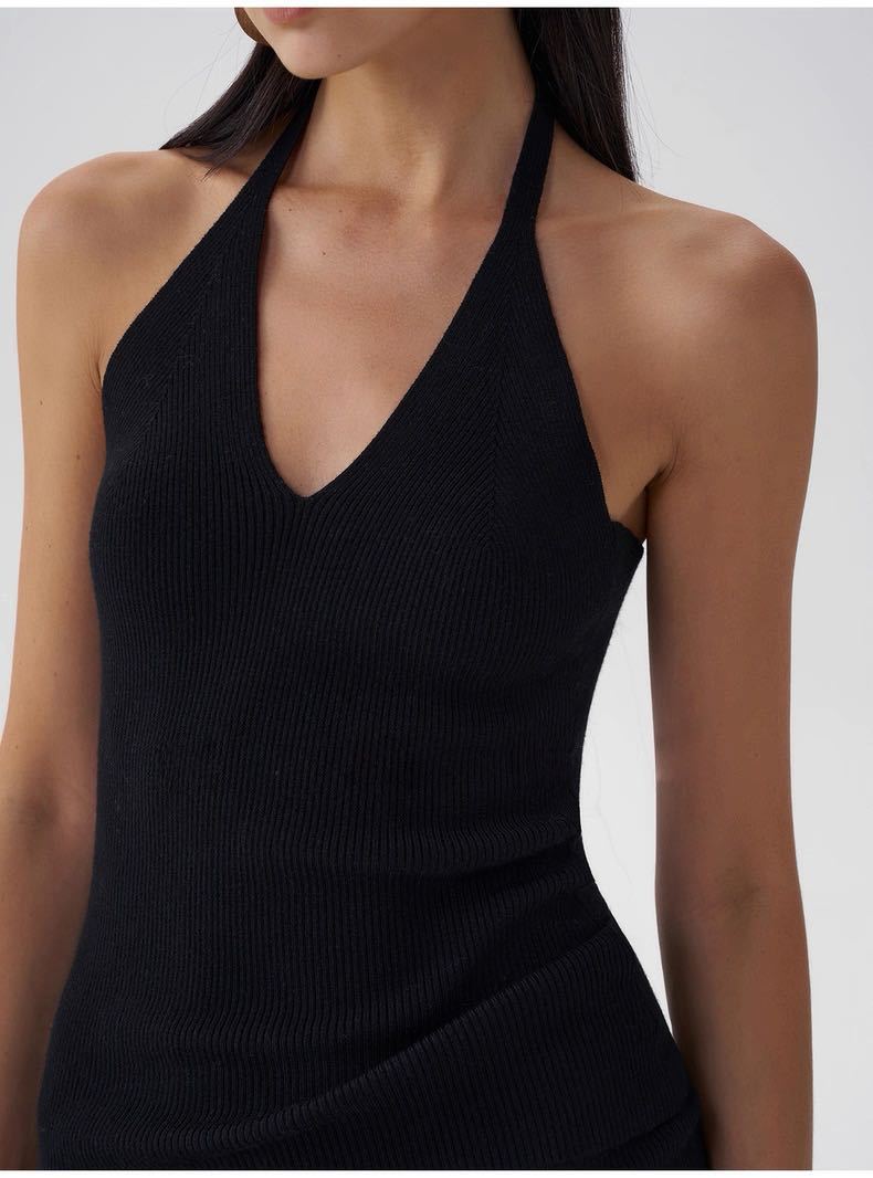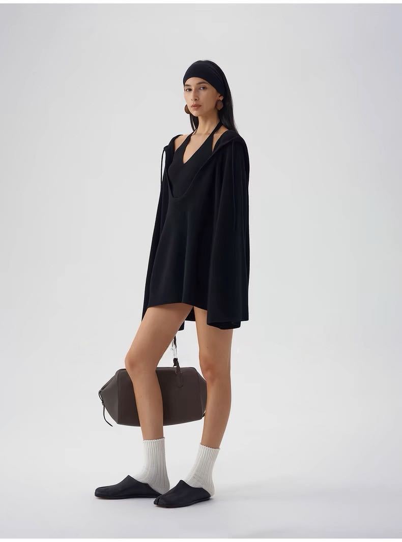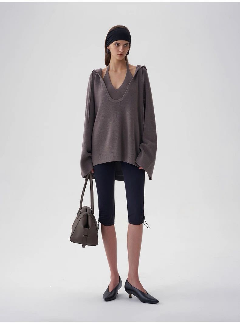 Black halter neck, Oatmeal color halter, Black hooded sweater, Oatmeal-colored hooded sweater