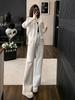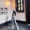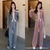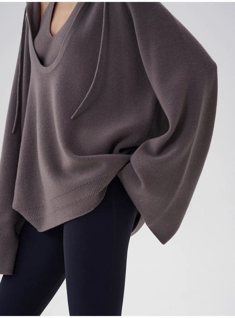Sudadera de Punto con Capucha y Cordón Ajustable, Cuello U Grande, Halter, Conjunto de Dos Piezas para Mujer, Estilo Simple y Relajado, Holgado, Adelgazante, Jersey Holgado