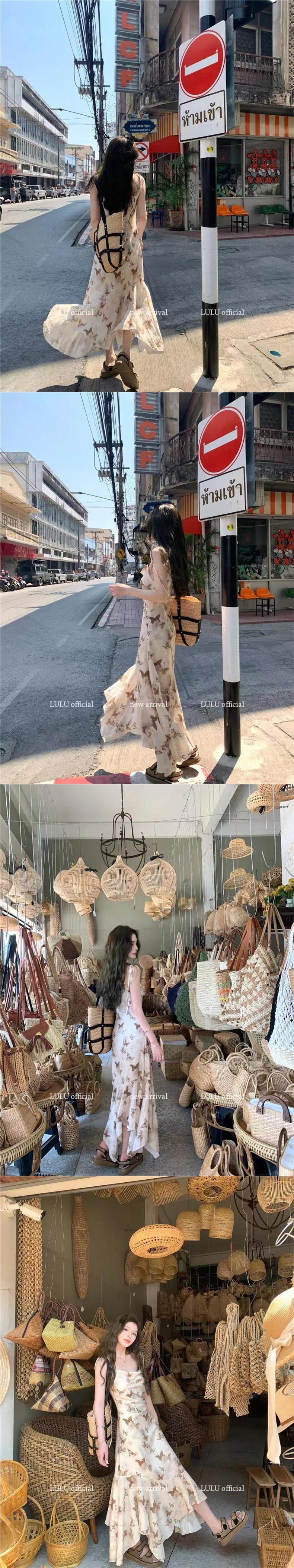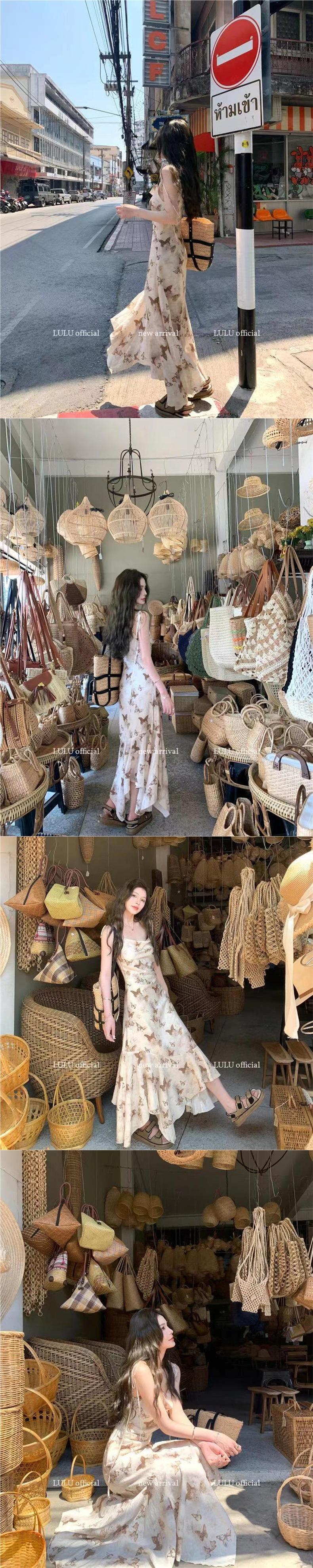 HC Nuevo Vestido Retro Chino con Estampado de Mariposas, Tirantes Espagueti, Verano para Mujer, Cintura Adelgazante, Irregular, Princesa, Vacaciones