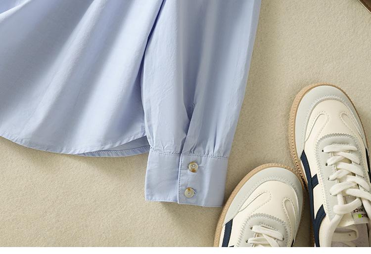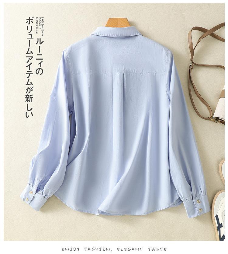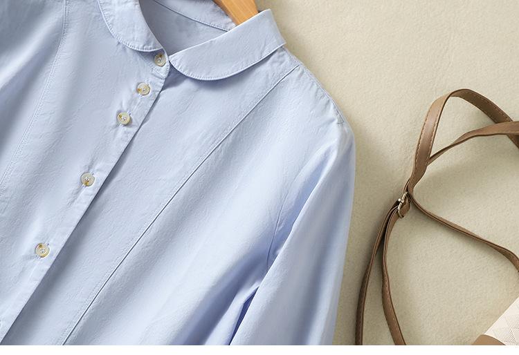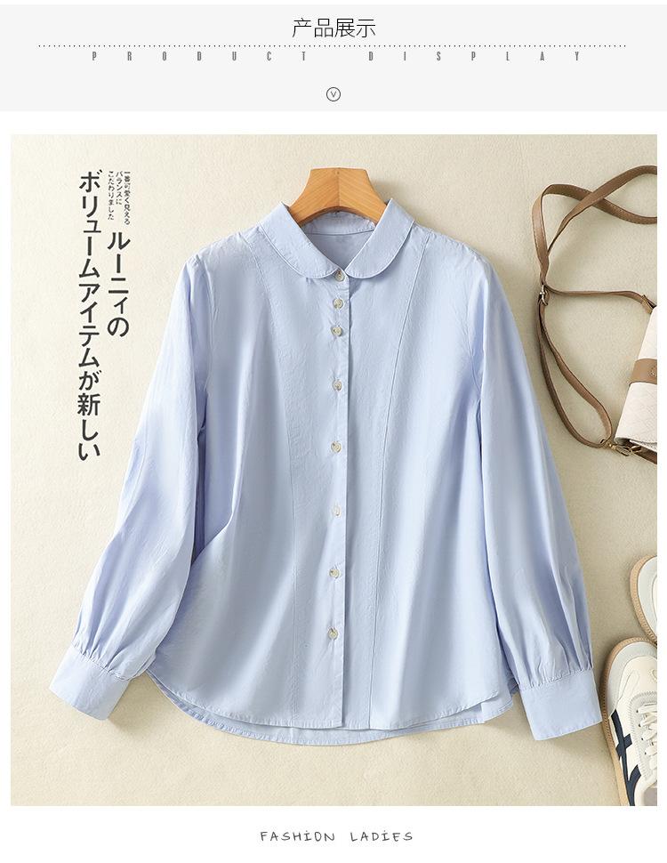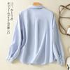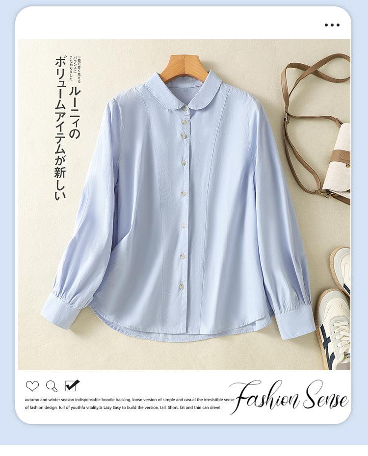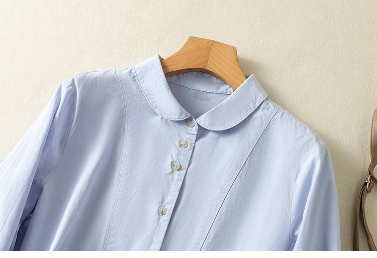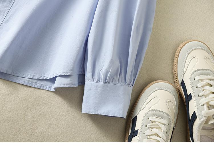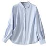 Foto Real Primavera y Otoño 2025 Nueva Camisa Literaria Azul Bebé Simple Algodón Original Versátil Suelta Color Sólido Top de Mujer