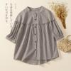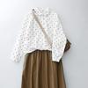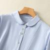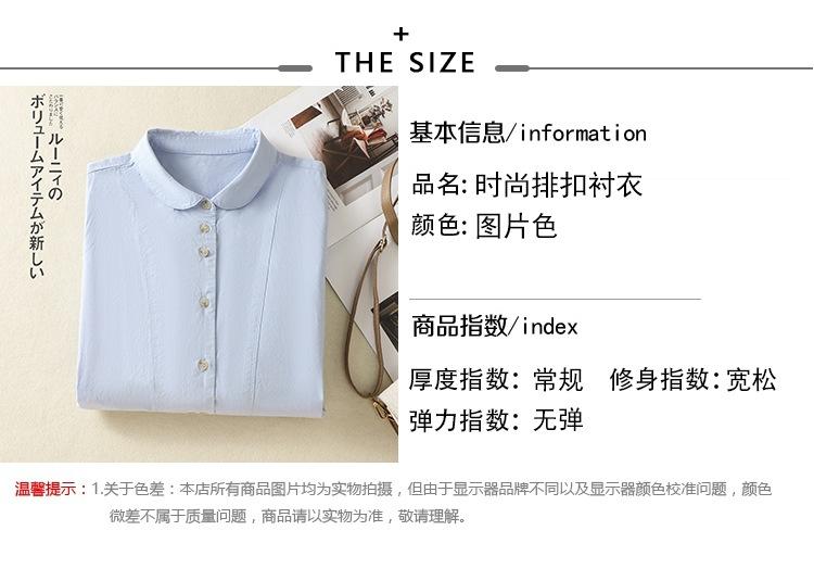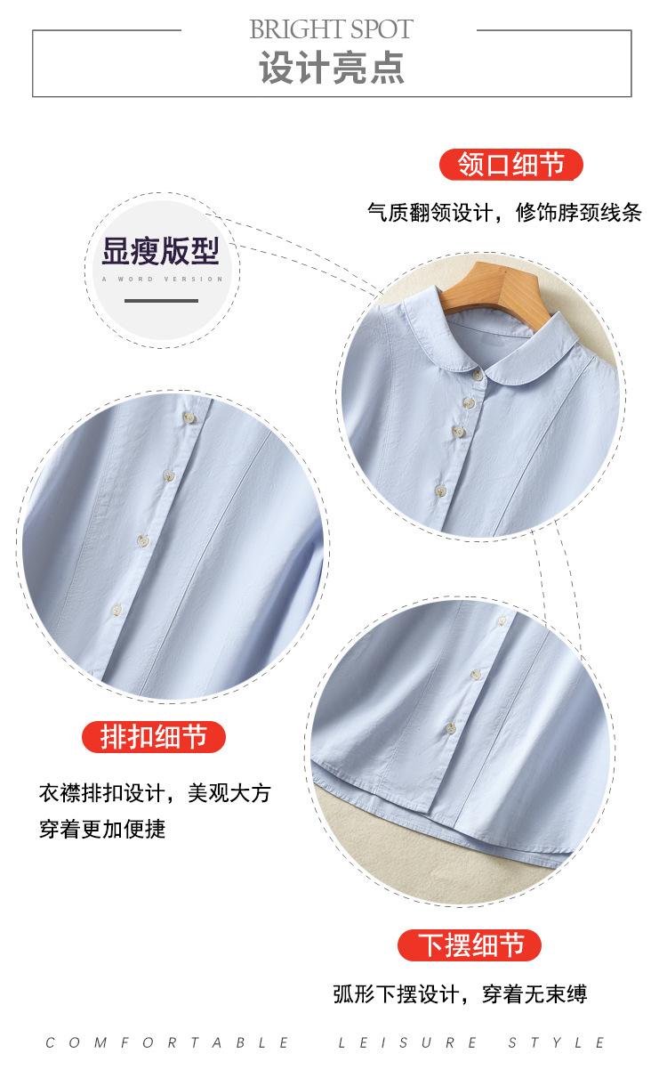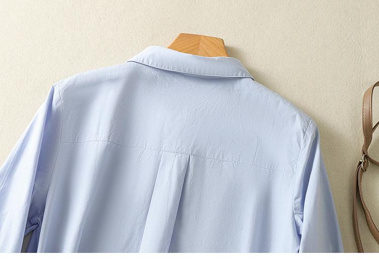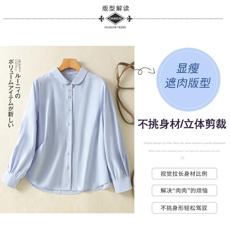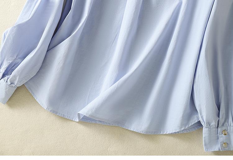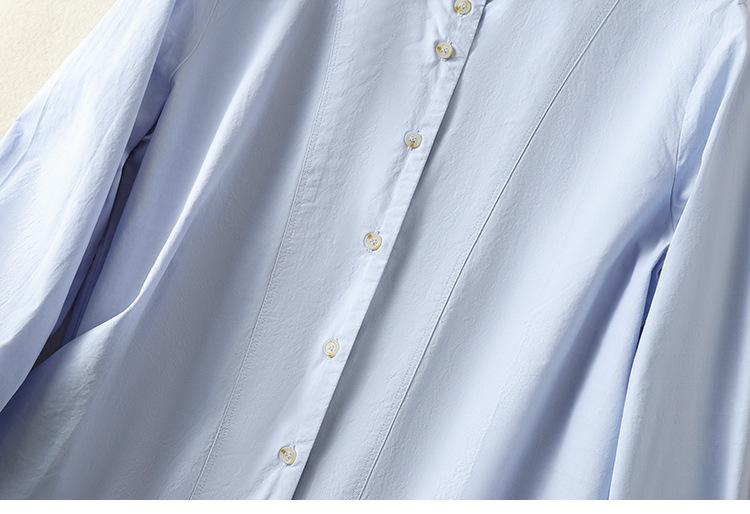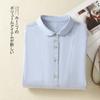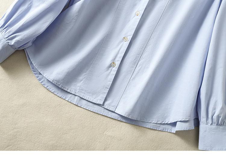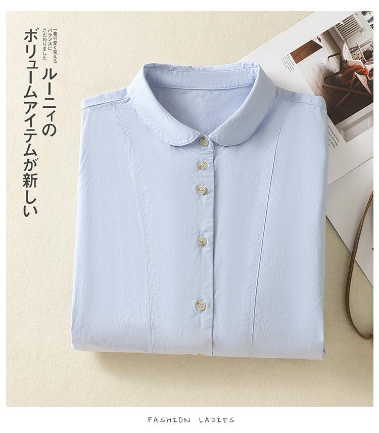 Foto Real Primavera y Otoño 2025 Nueva Camisa Literaria Azul Bebé Simple Algodón Original Versátil Suelta Color Sólido Top de Mujer