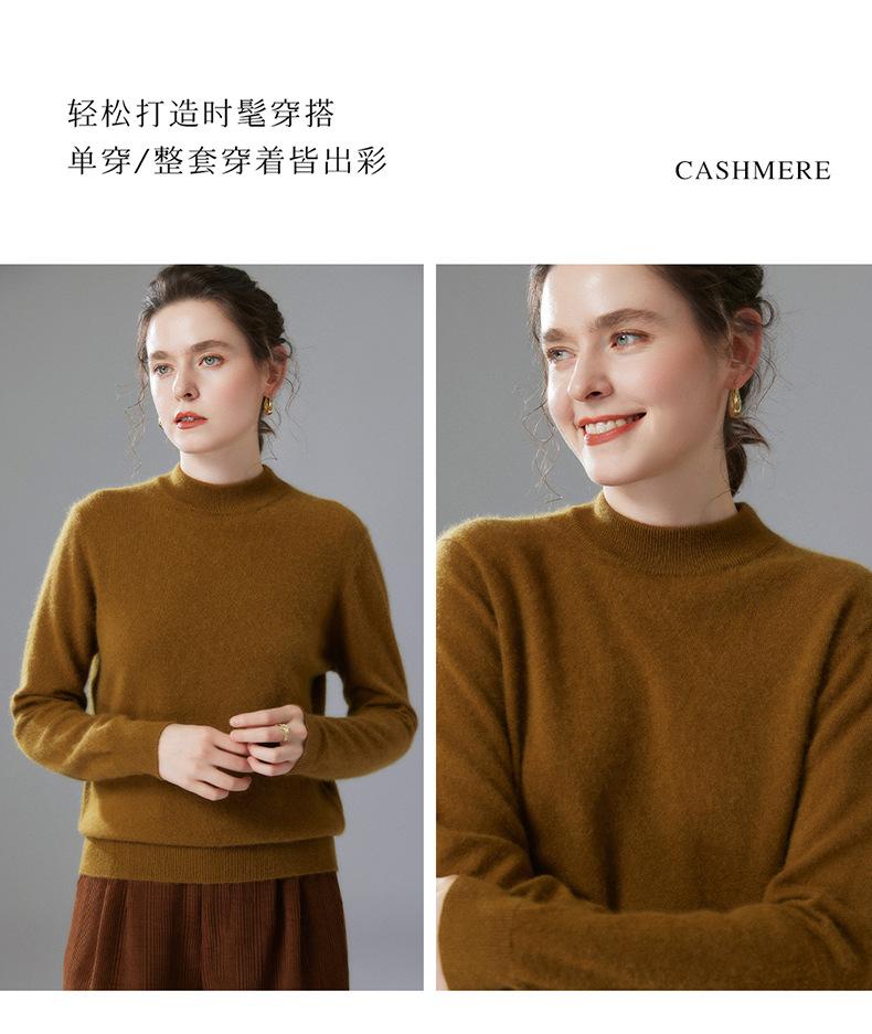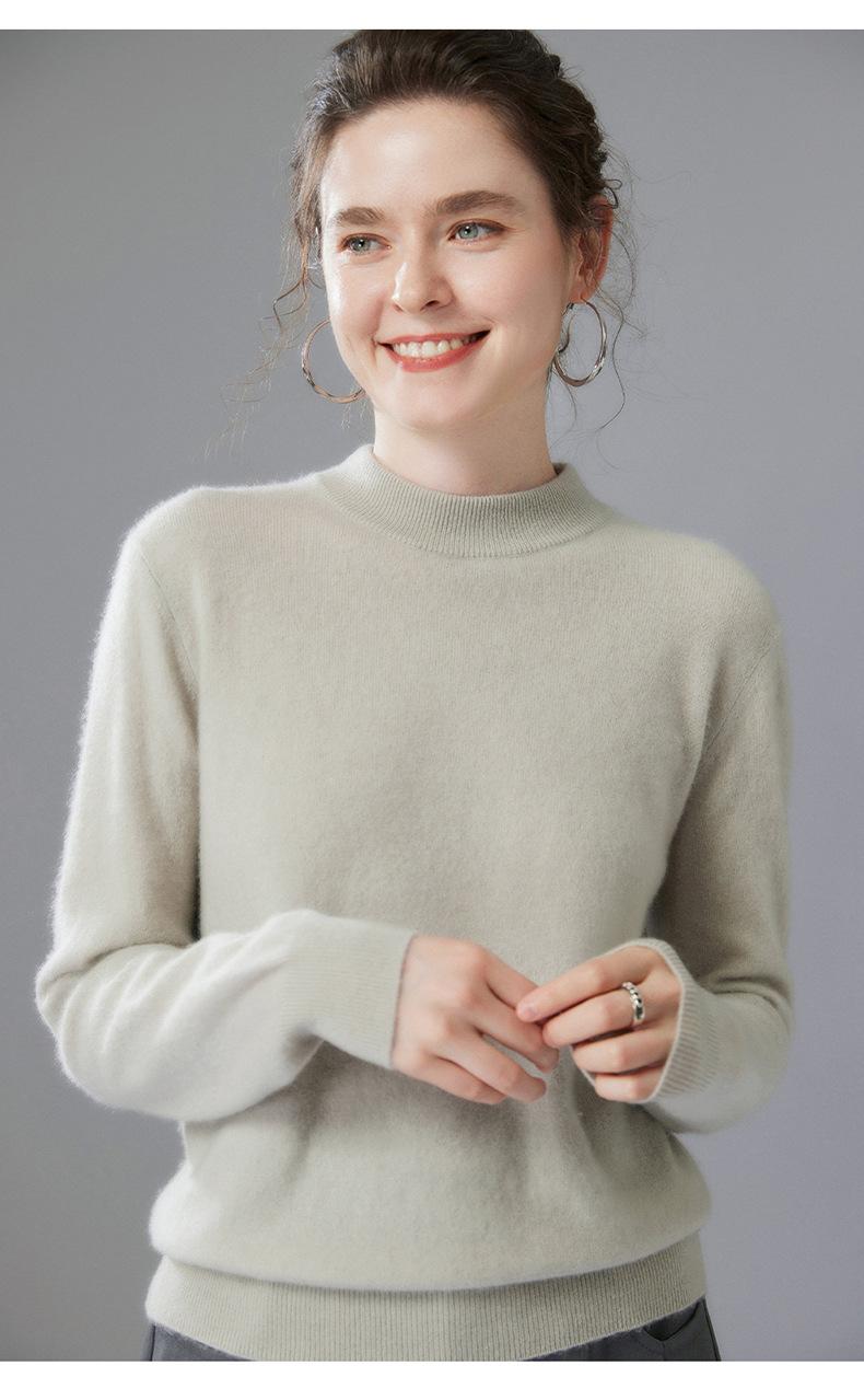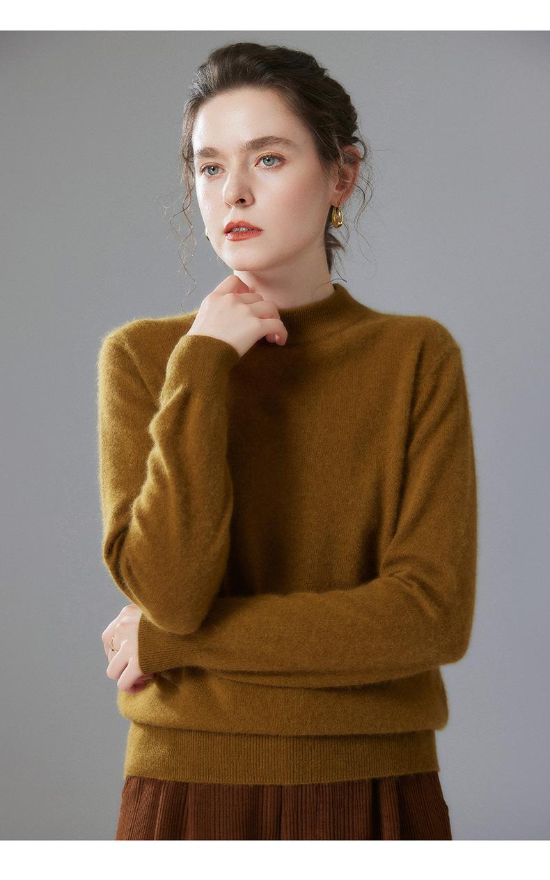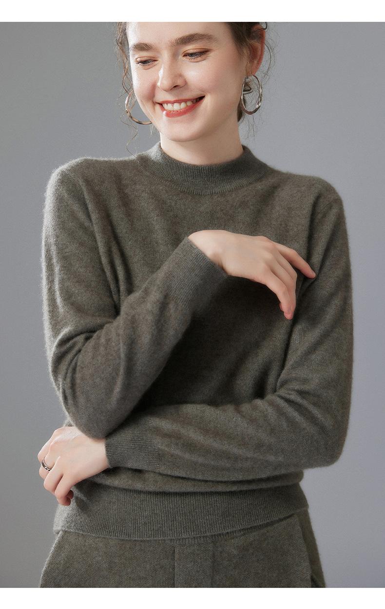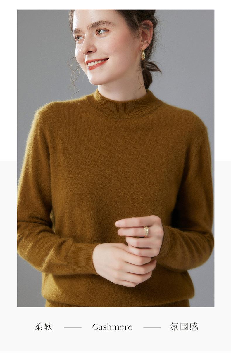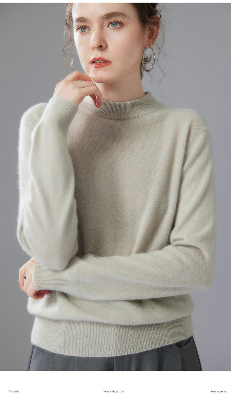 Nuevo Suéter de Cachemira de Otoño e Invierno para Mujer Top Básico de Punto Suéter de Cuello Medio Alto Color Sólido Cálido Suave y Cómodo