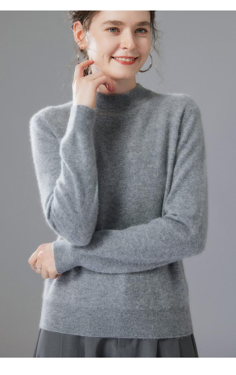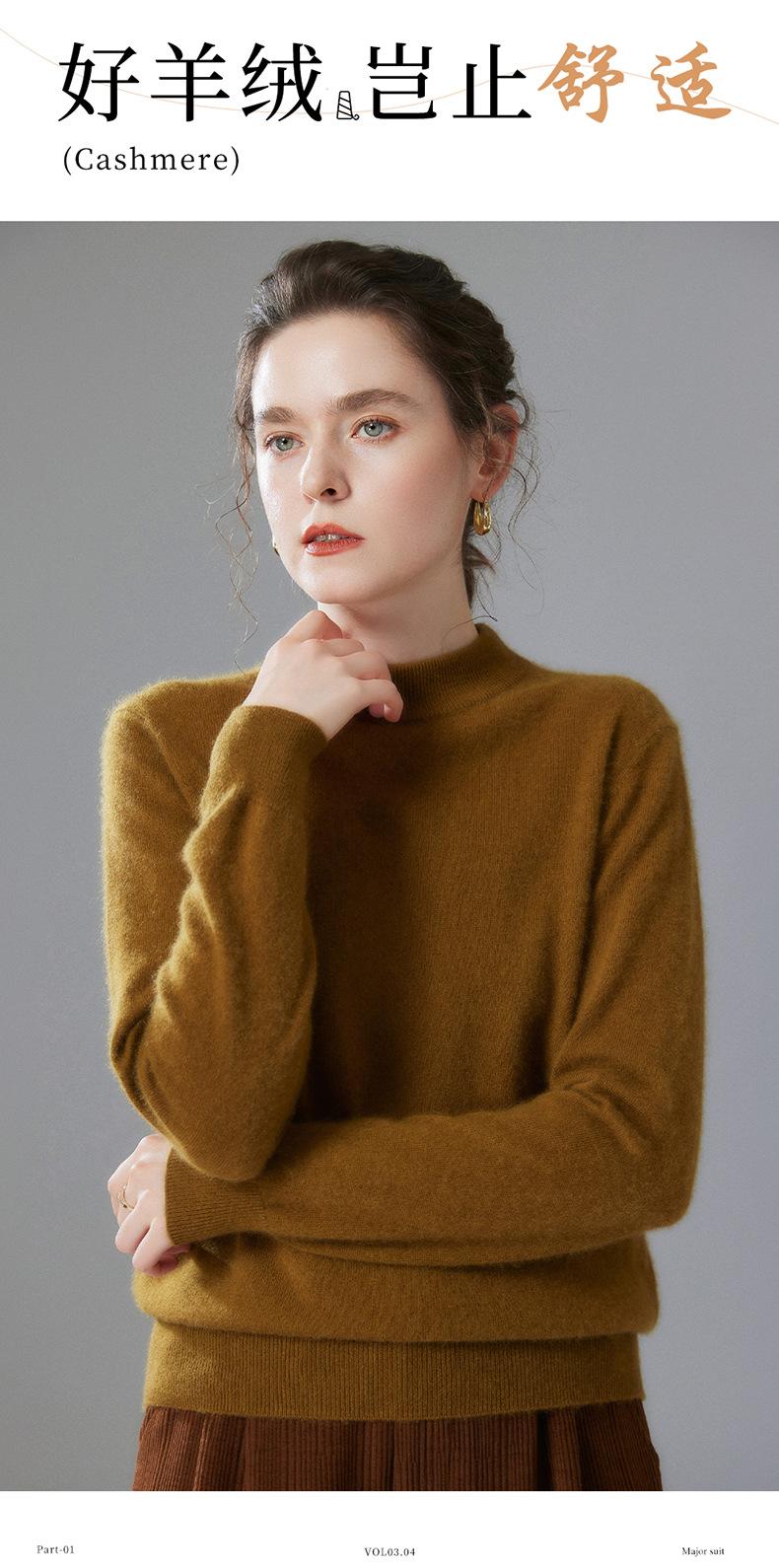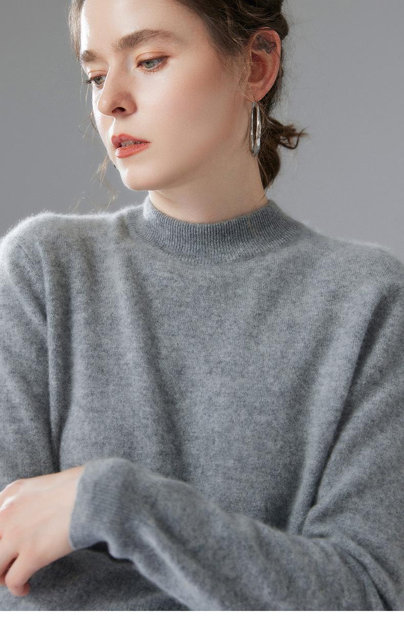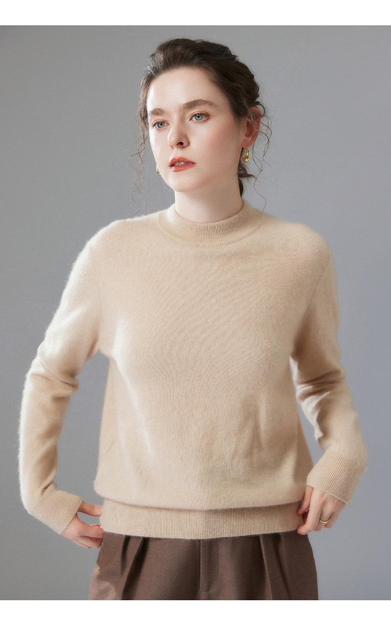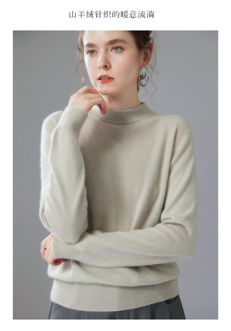 Nuevo Suéter de Cachemira de Otoño e Invierno para Mujer Top Básico de Punto Suéter de Cuello Medio Alto Color Sólido Cálido Suave y Cómodo