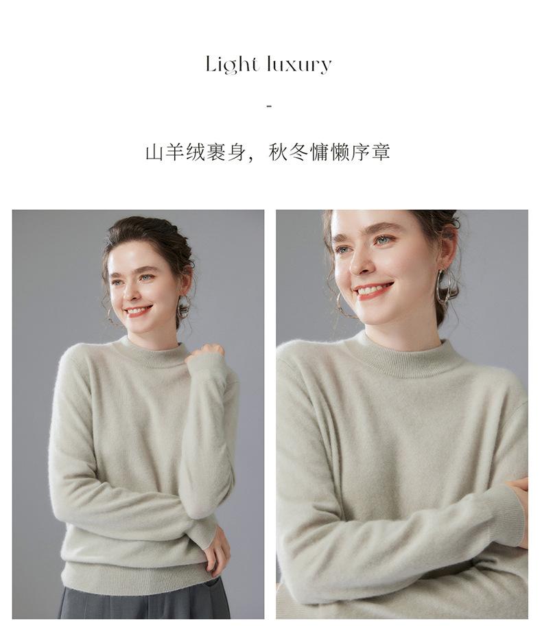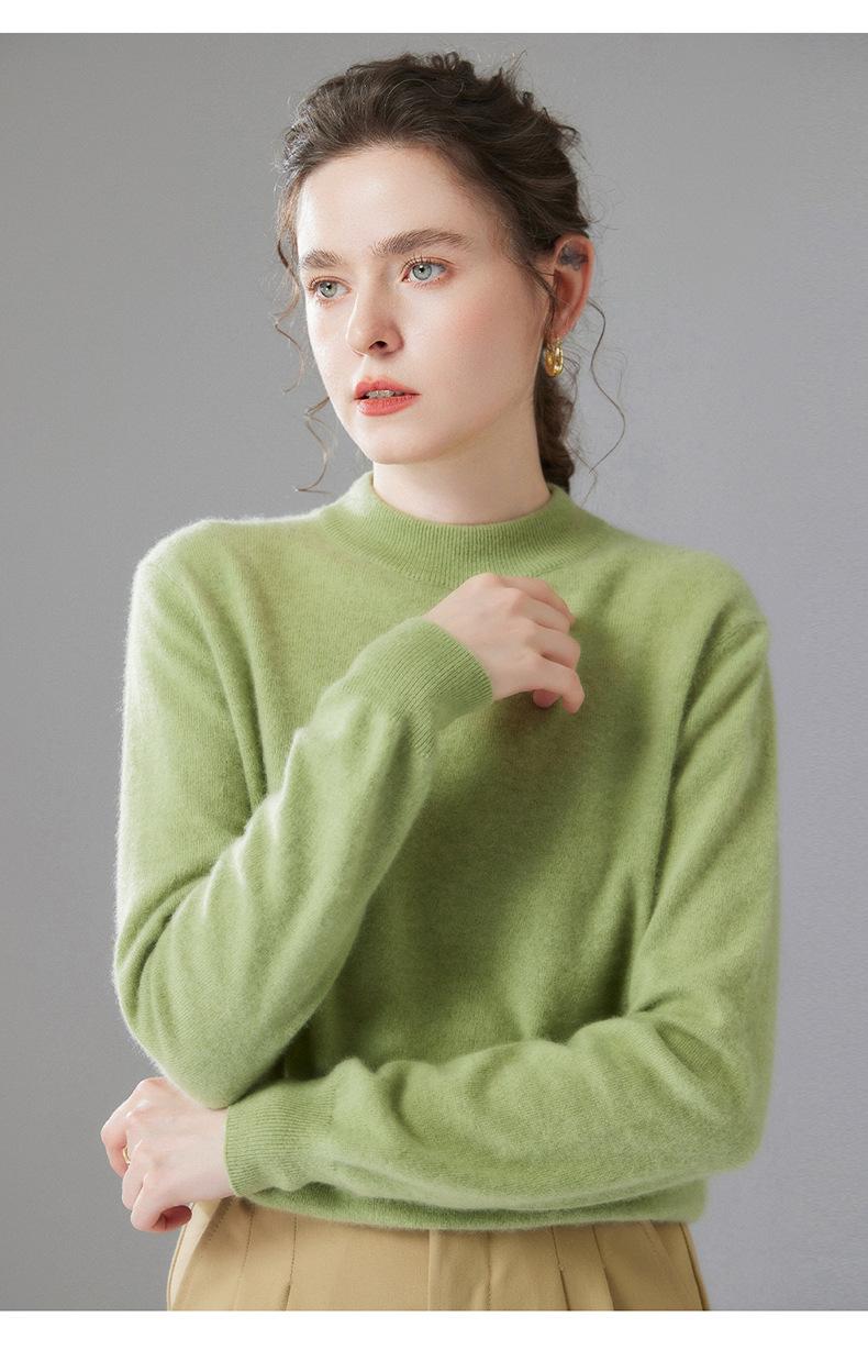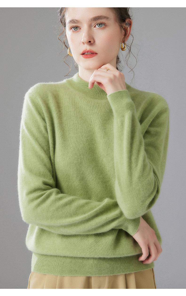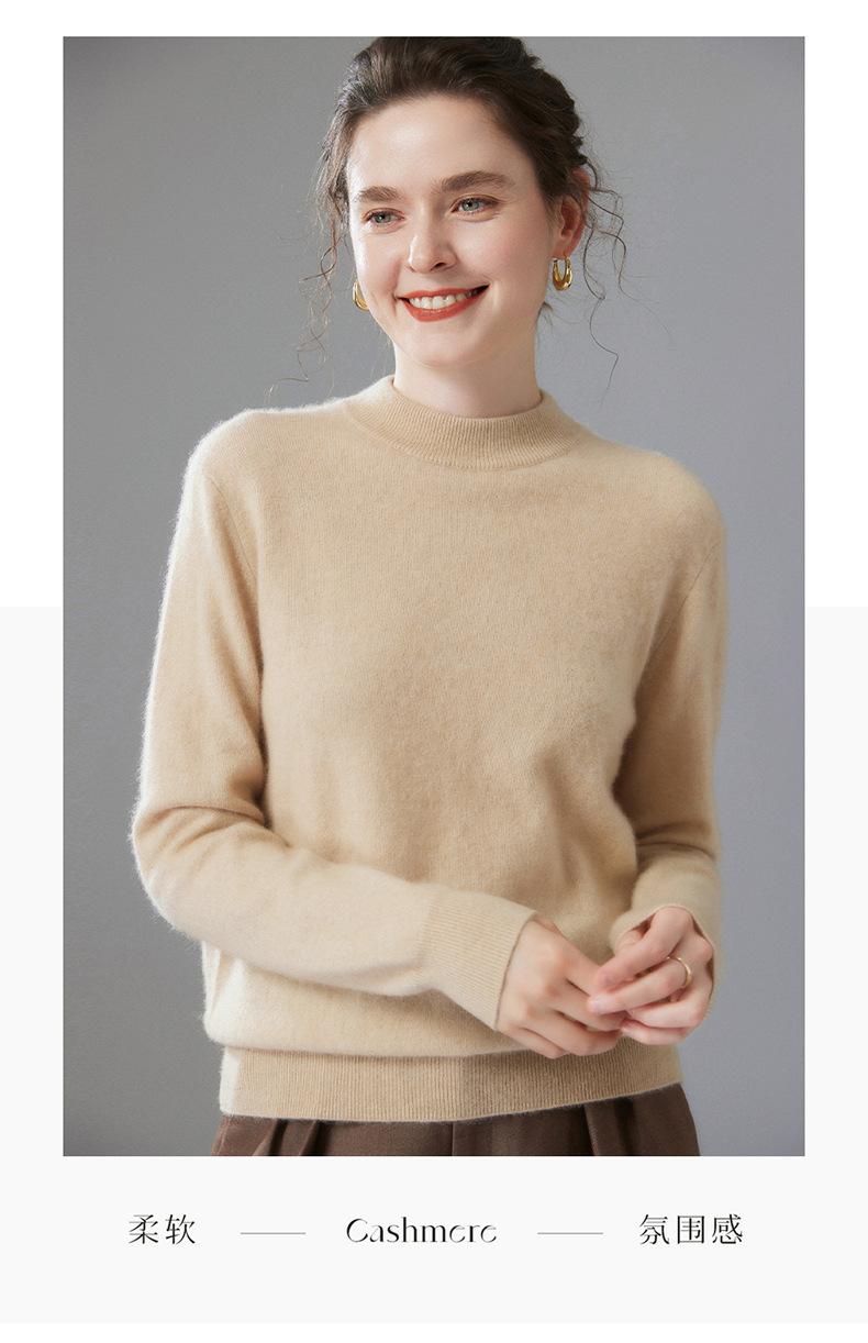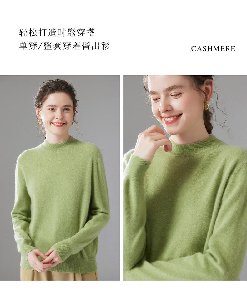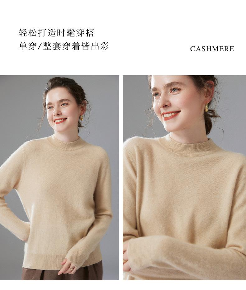 Nuevo Suéter de Cachemira de Otoño e Invierno para Mujer Top Básico de Punto Suéter de Cuello Medio Alto Color Sólido Cálido Suave y Cómodo