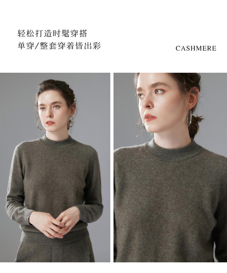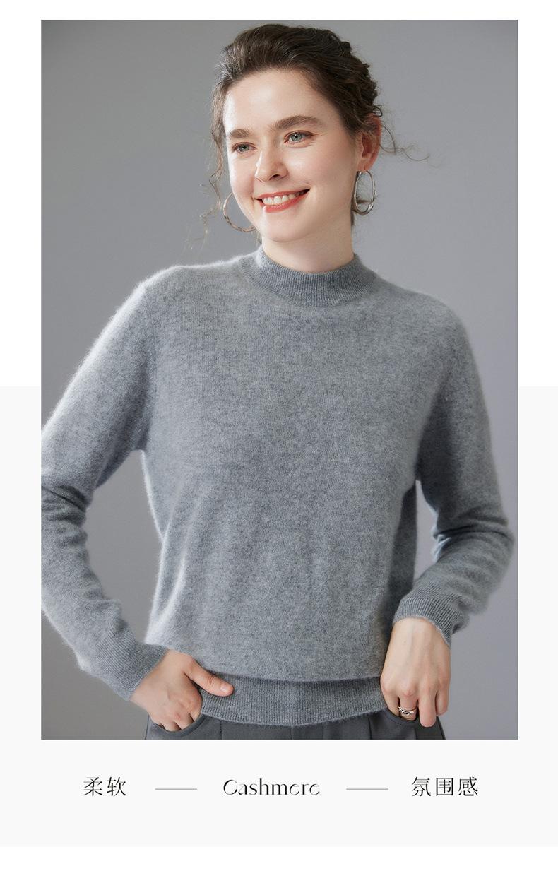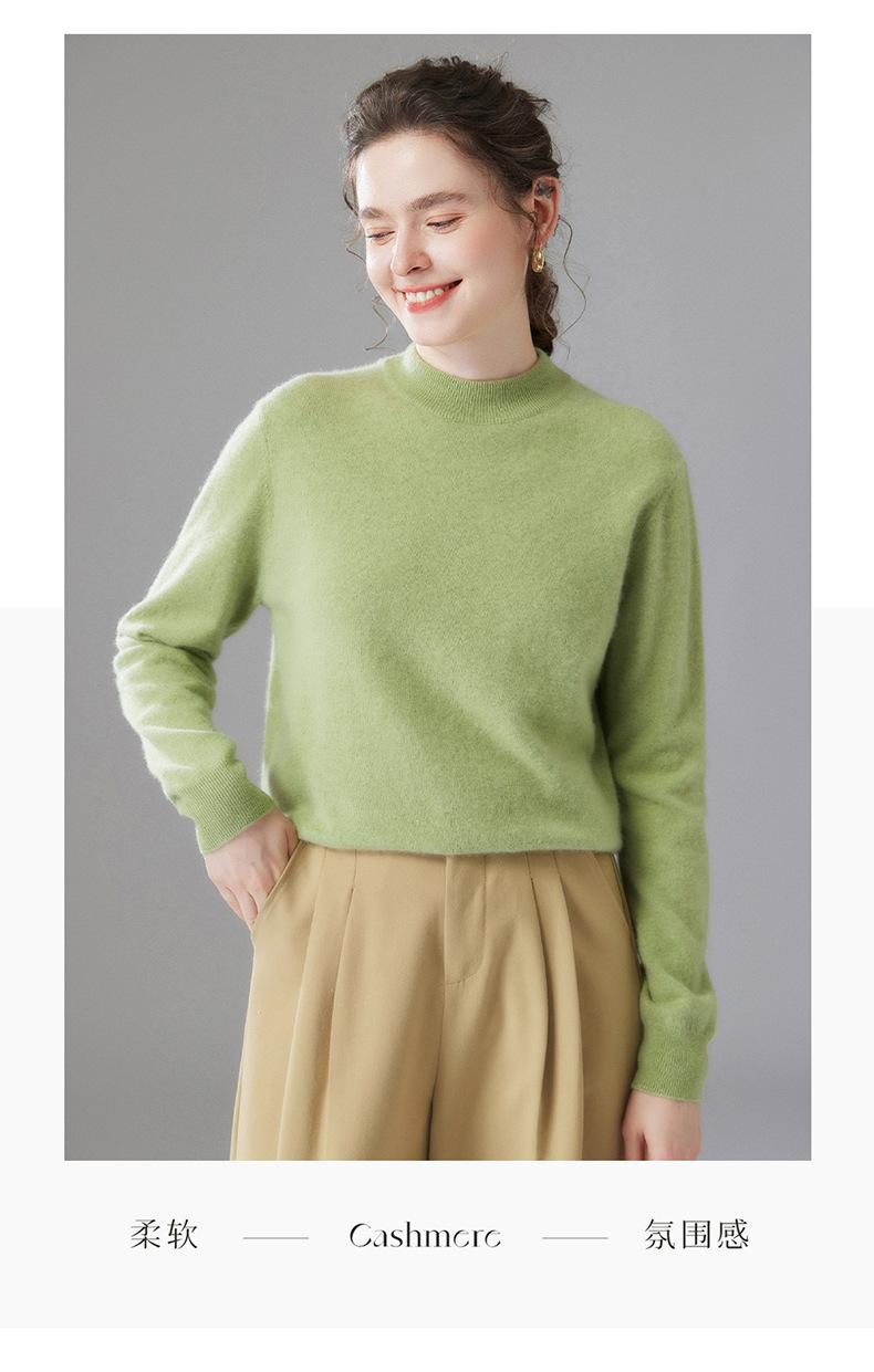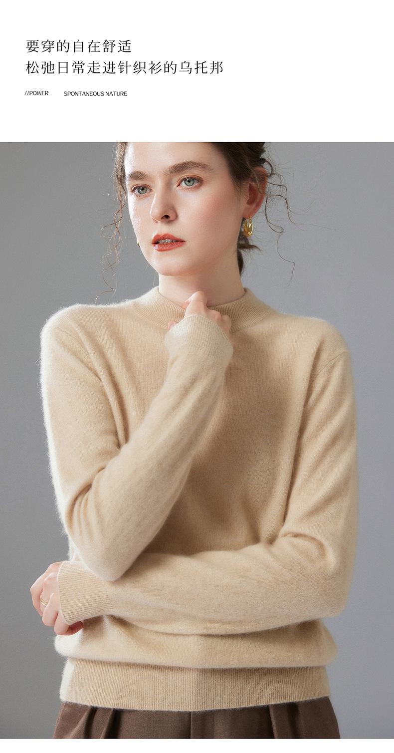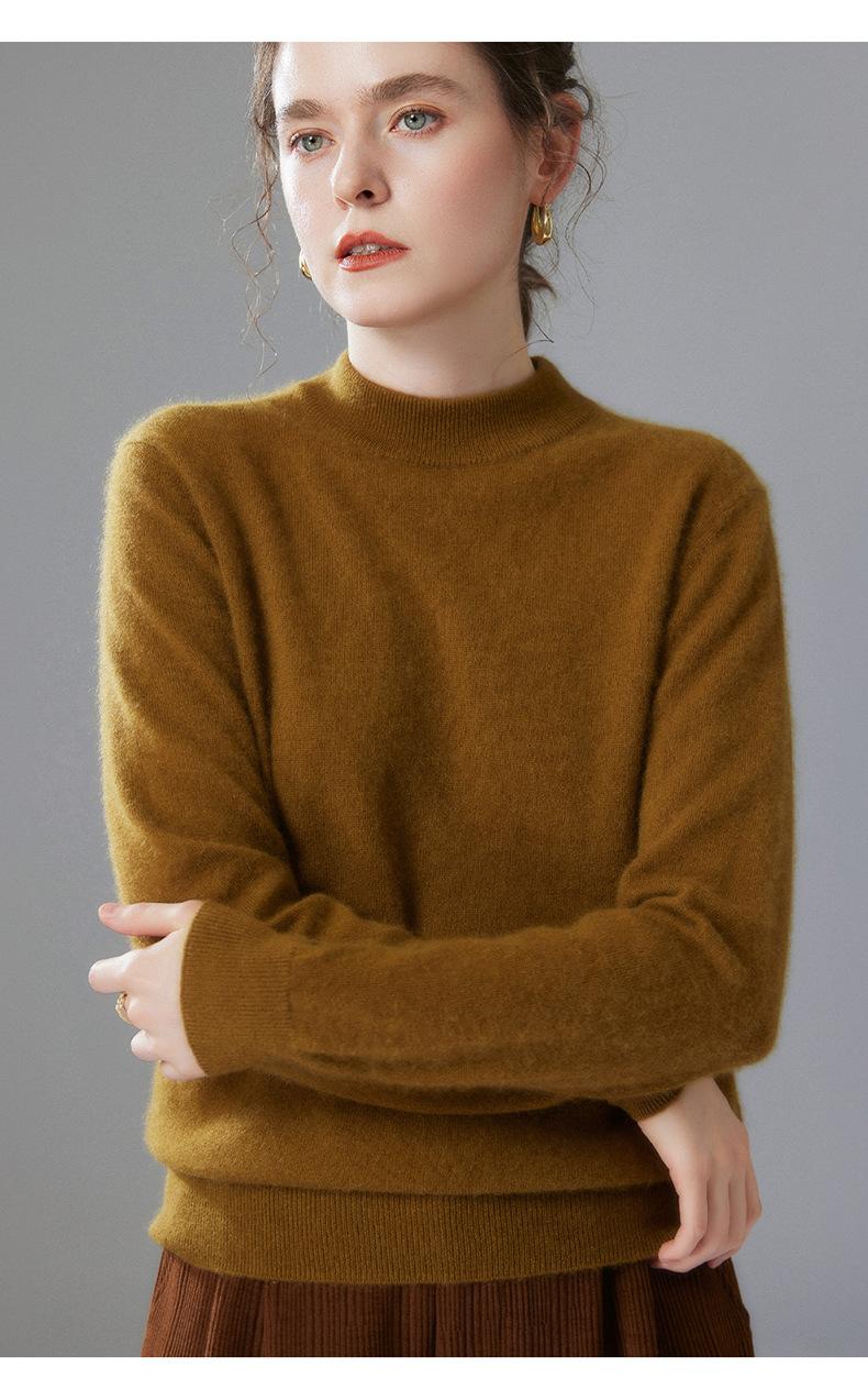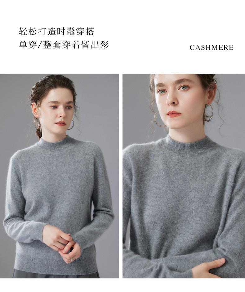 Nuevo Suéter de Cachemira de Otoño e Invierno para Mujer Top Básico de Punto Suéter de Cuello Medio Alto Color Sólido Cálido Suave y Cómodo