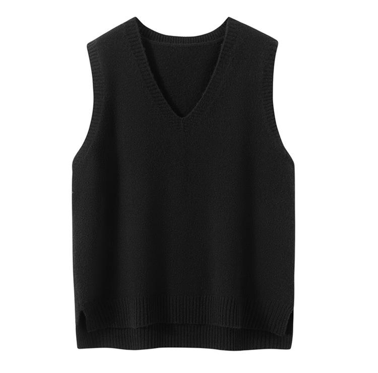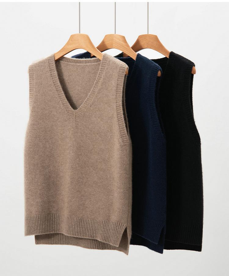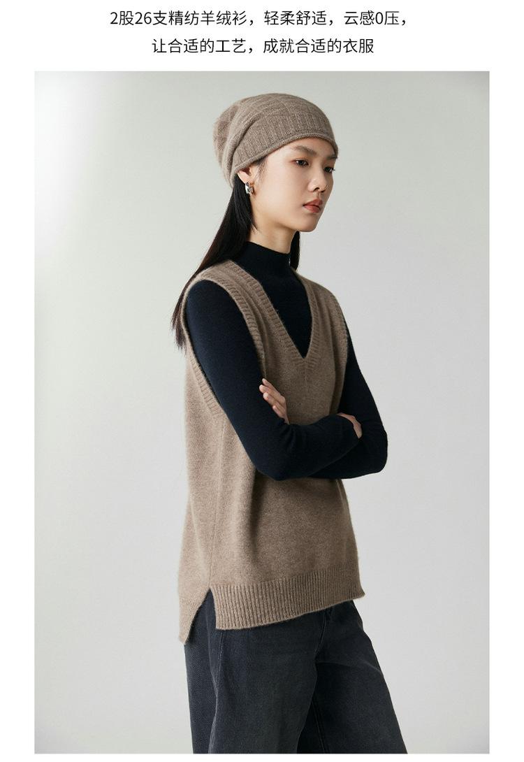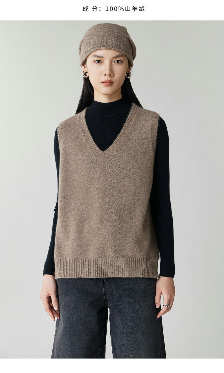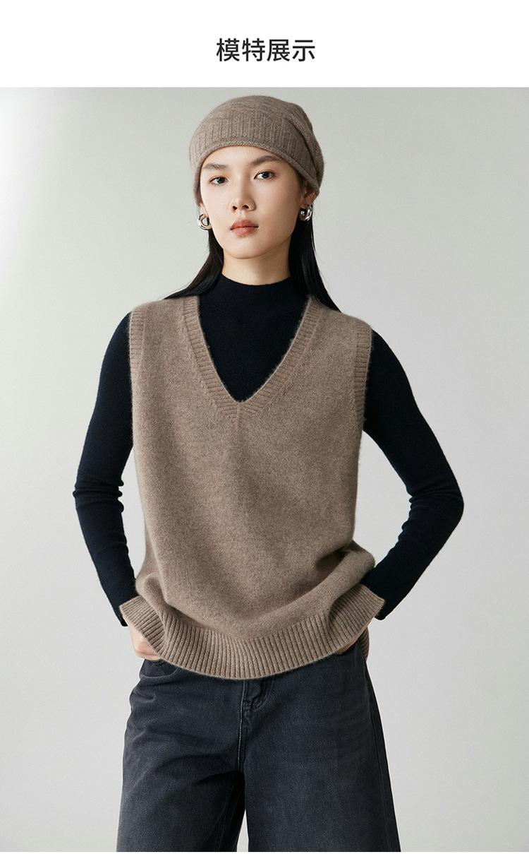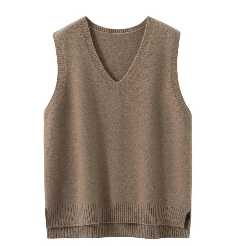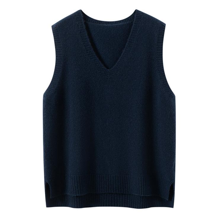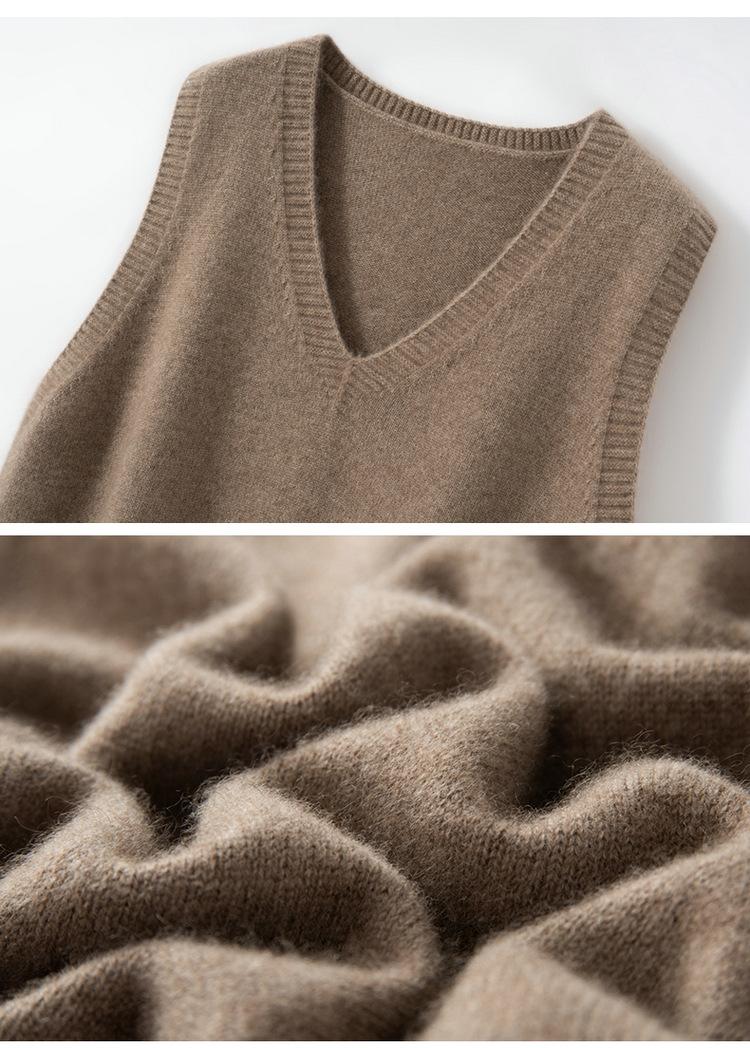 Chaleco Suéter de Mujer Nuevo Otoño Invierno Chaleco 100% Cachemira Ropa Exterior Cuello en V Chaleco Tejido Ropa Exterior Sin Mangas
