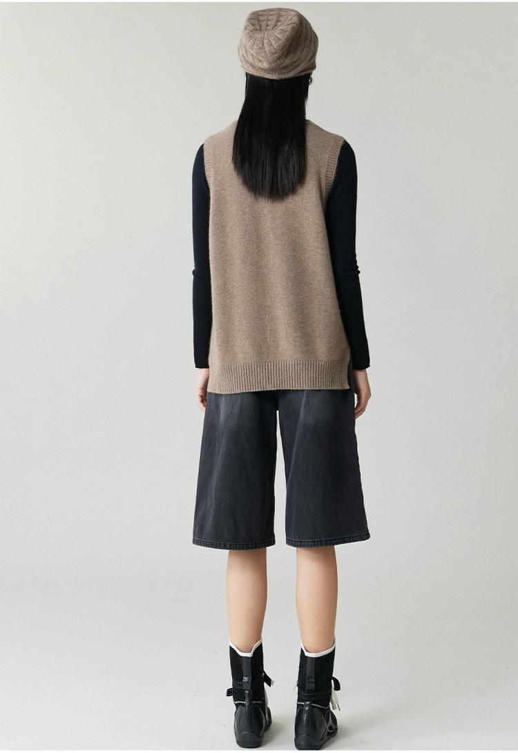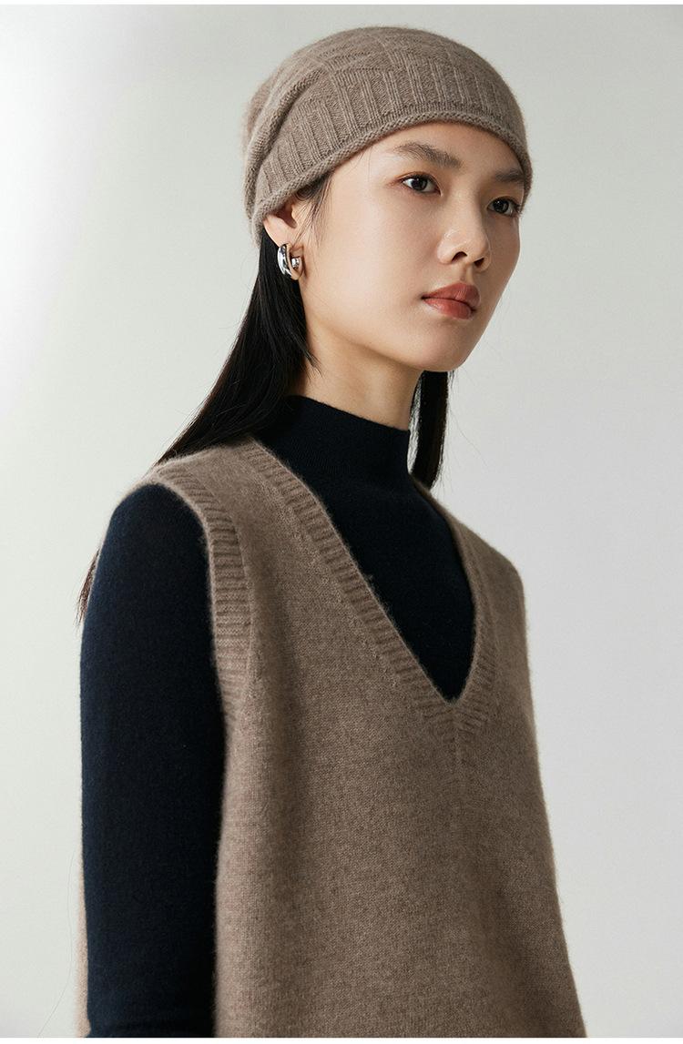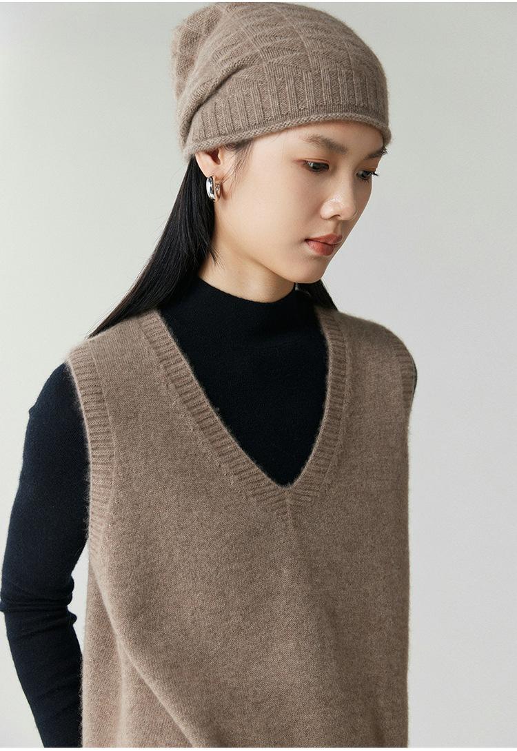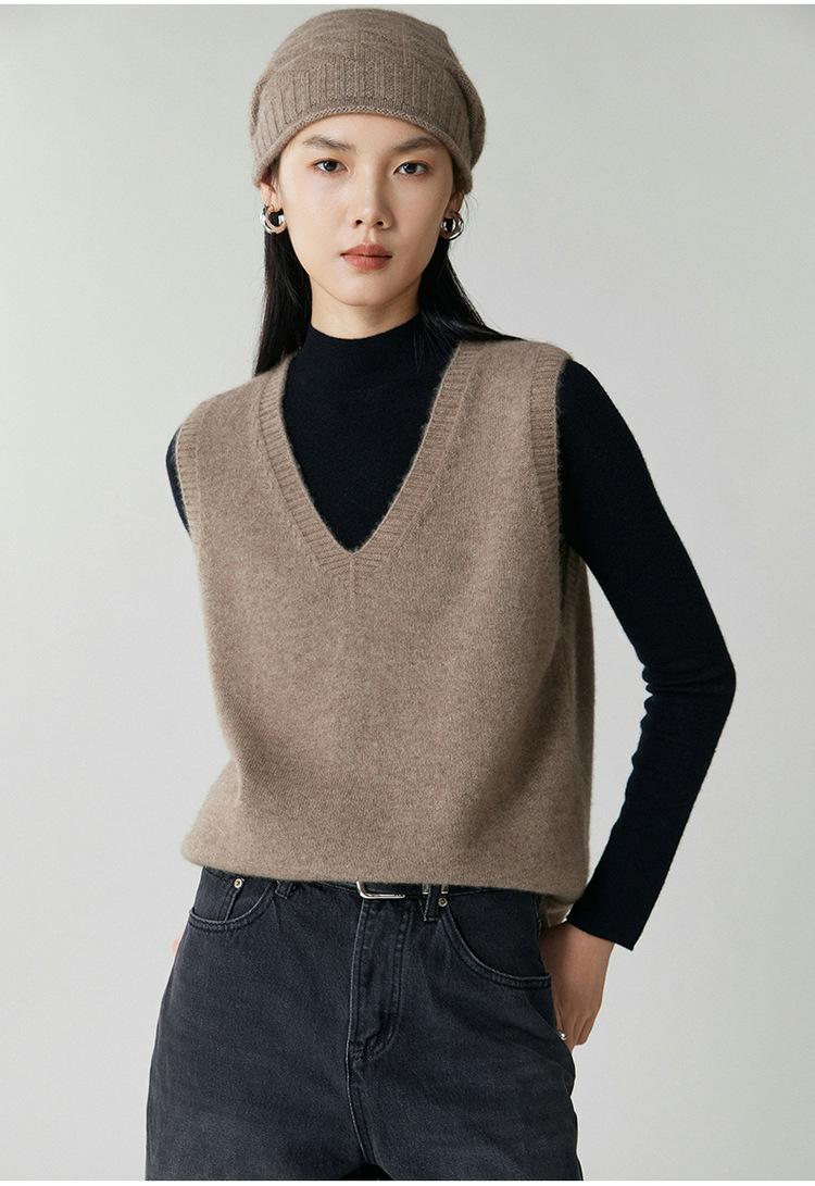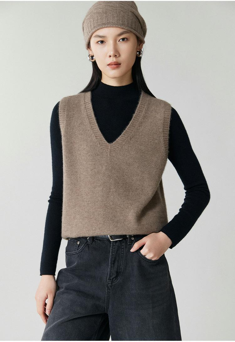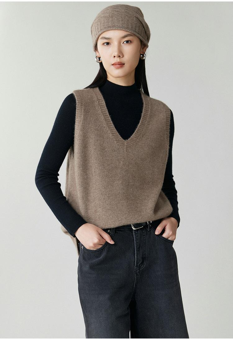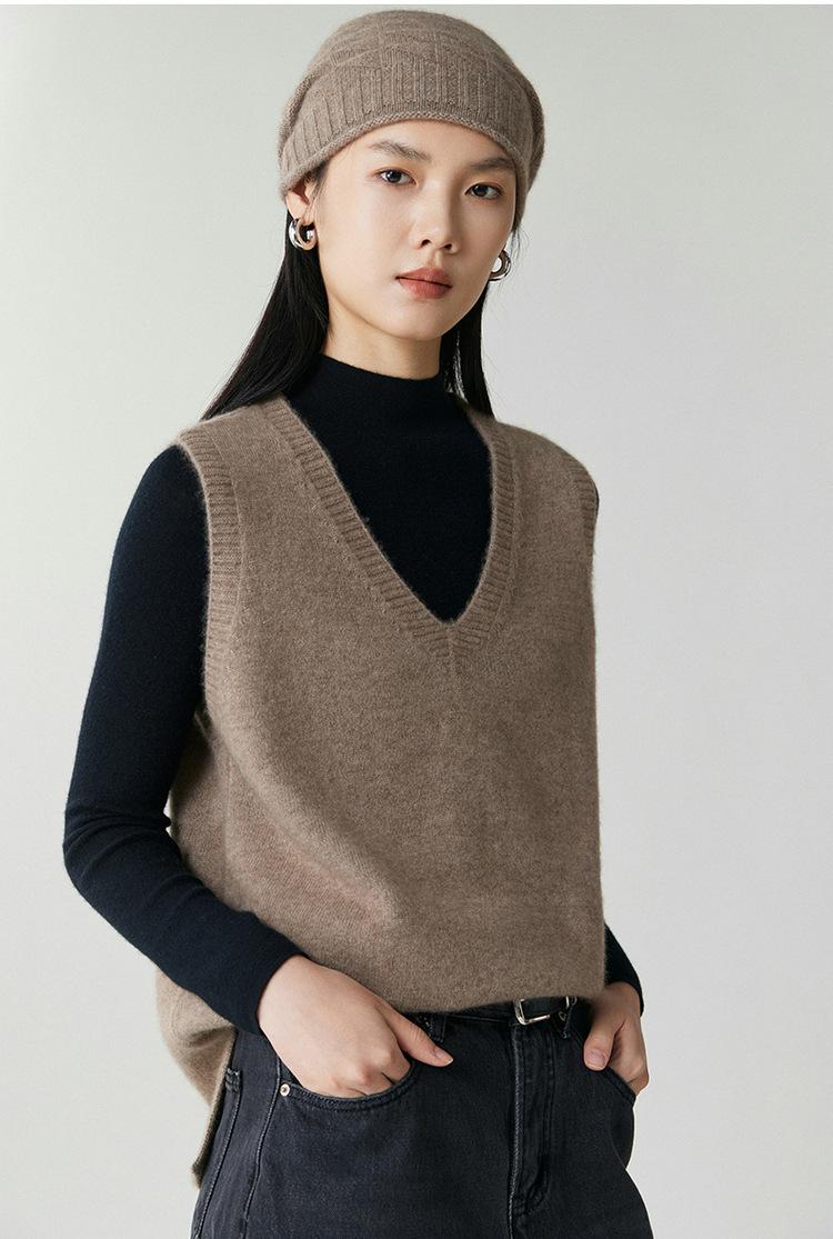 Chaleco Suéter de Mujer Nuevo Otoño Invierno Chaleco 100% Cachemira Ropa Exterior Cuello en V Chaleco Tejido Ropa Exterior Sin Mangas