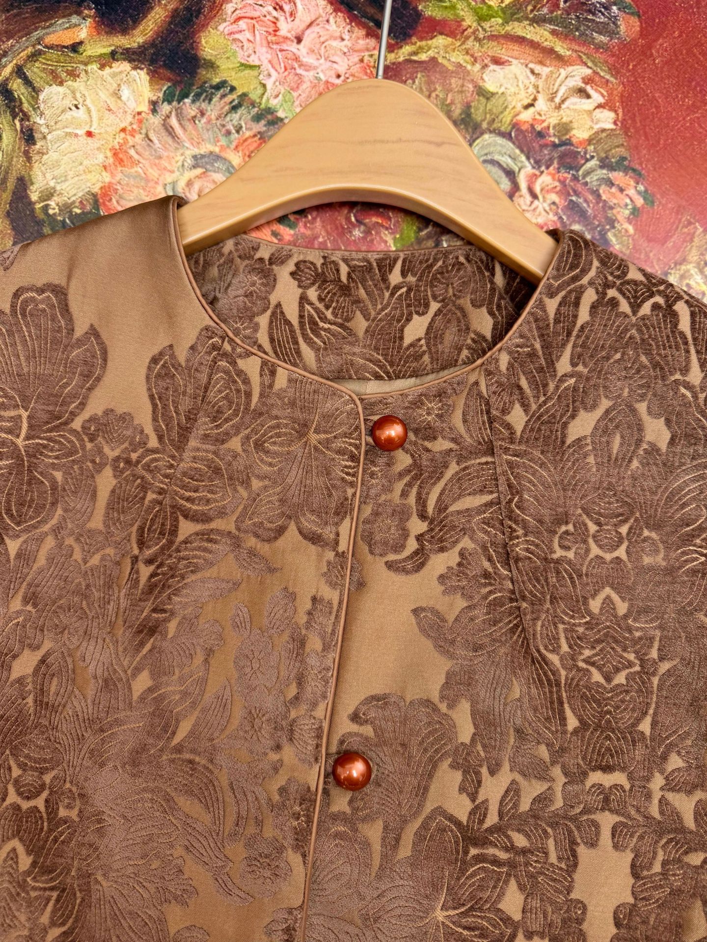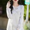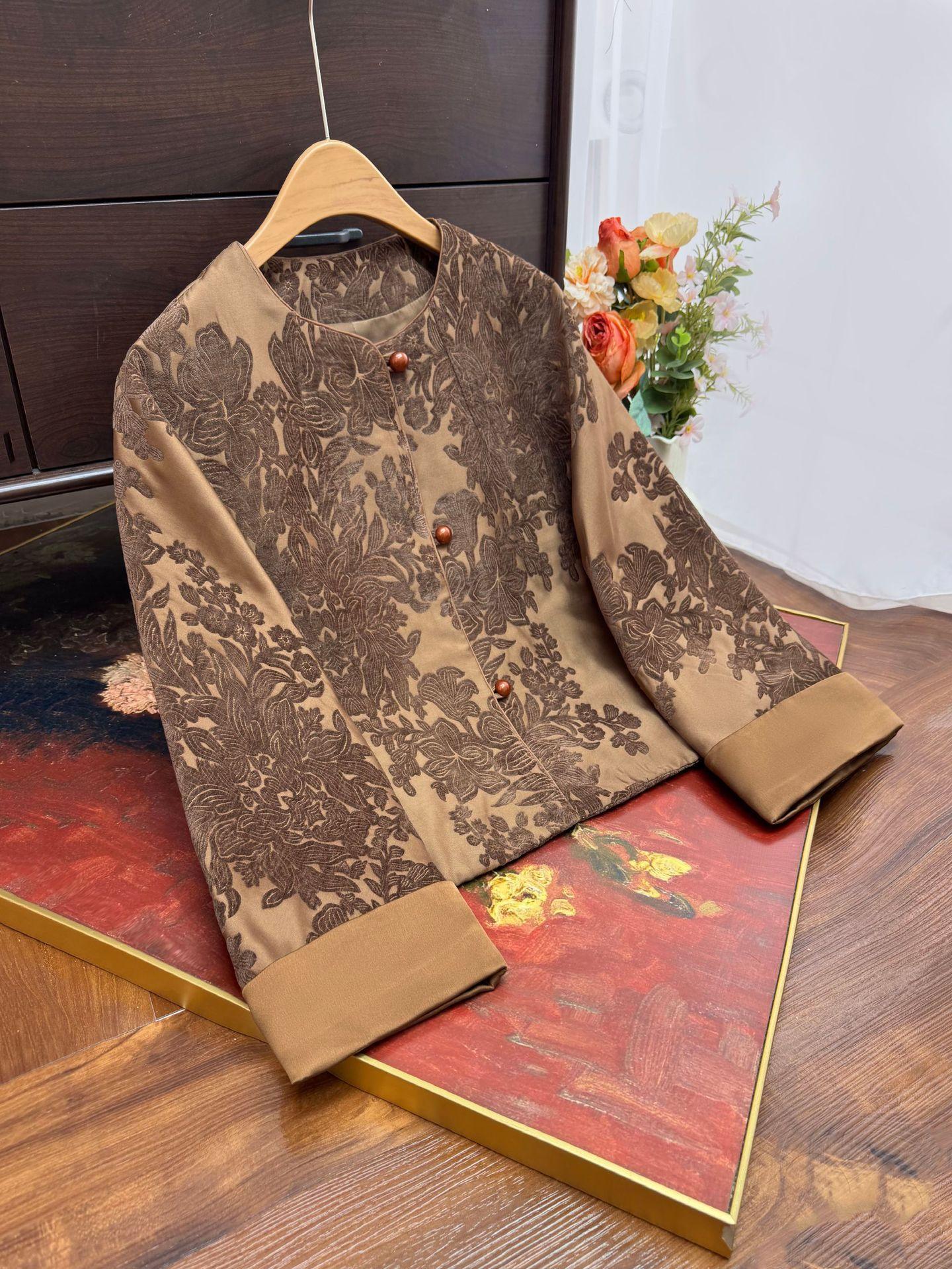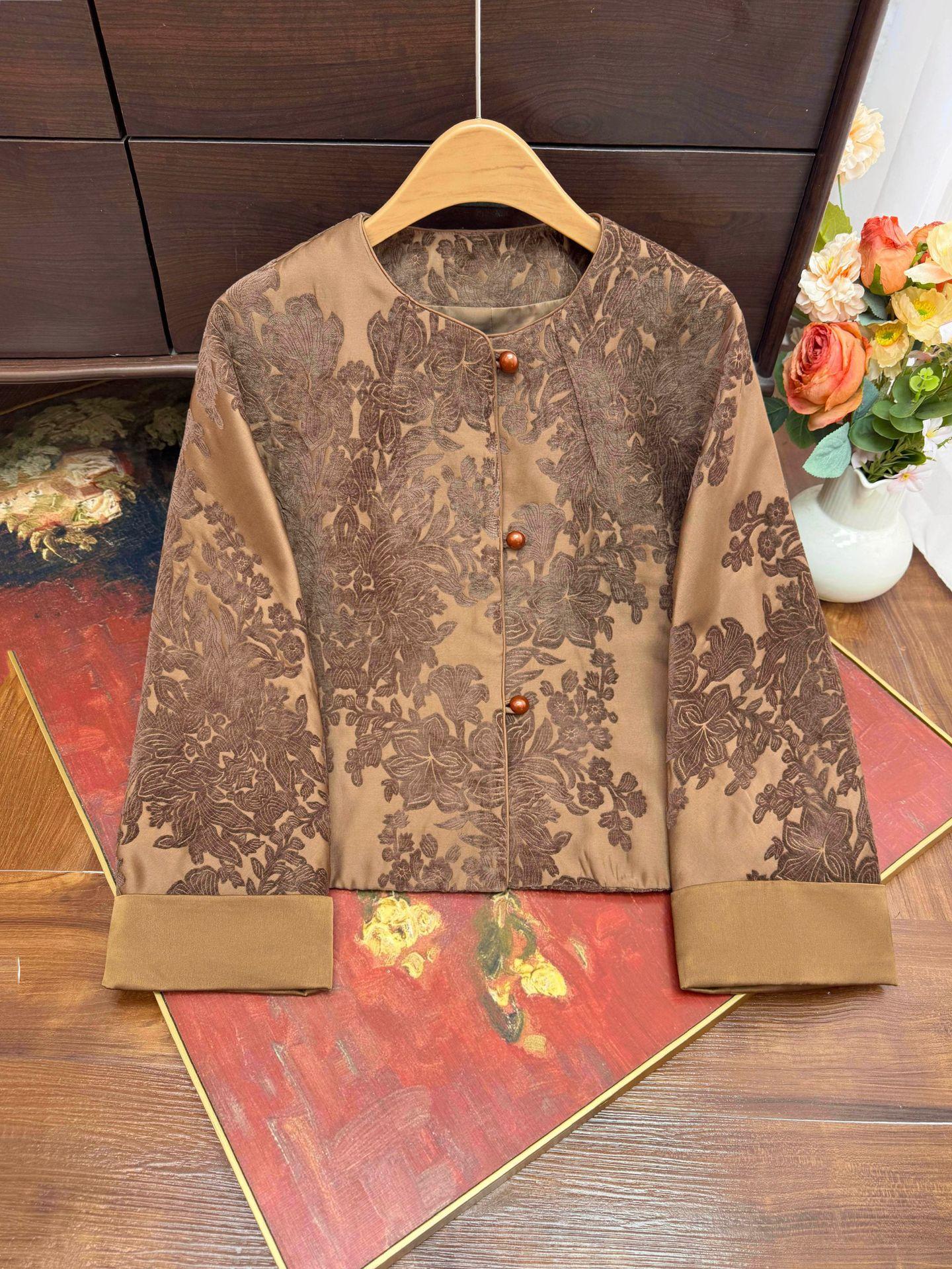 Nueva Chaqueta Exterior Jacquard Estilo Nacional Estilo Chino 2025 Otoño Nueva Exquisita Cuello Redondo Reductora de Edad Camisa Temperamento Top Mujer