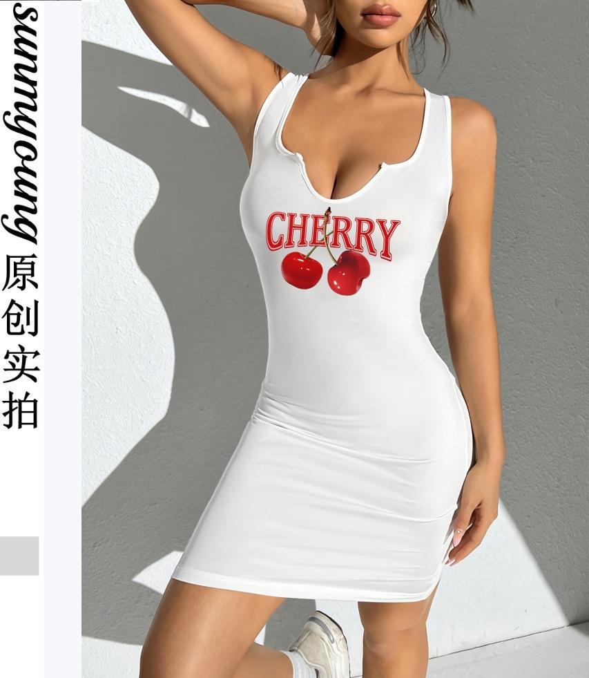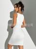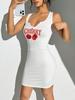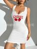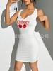 Nueva Moda de Verano Europea y Americana Vestido Simple con Letras Sexy Ajustado Delgado Manga Larga