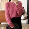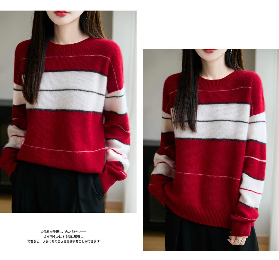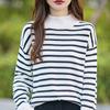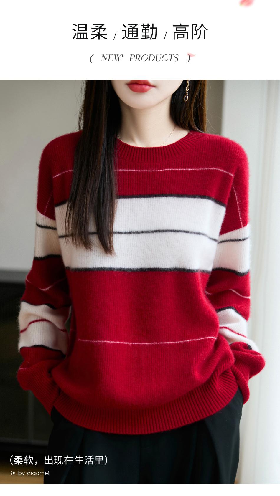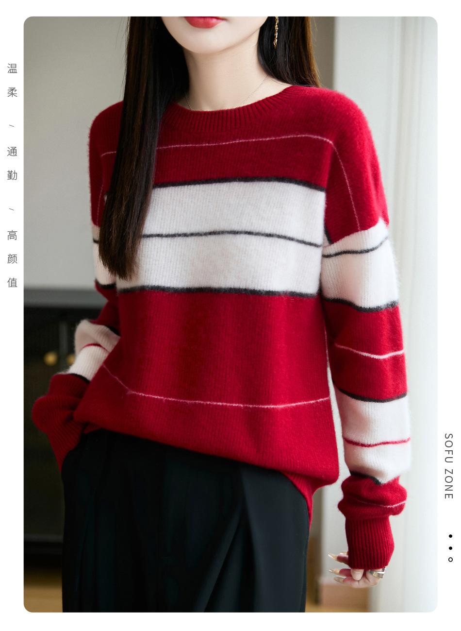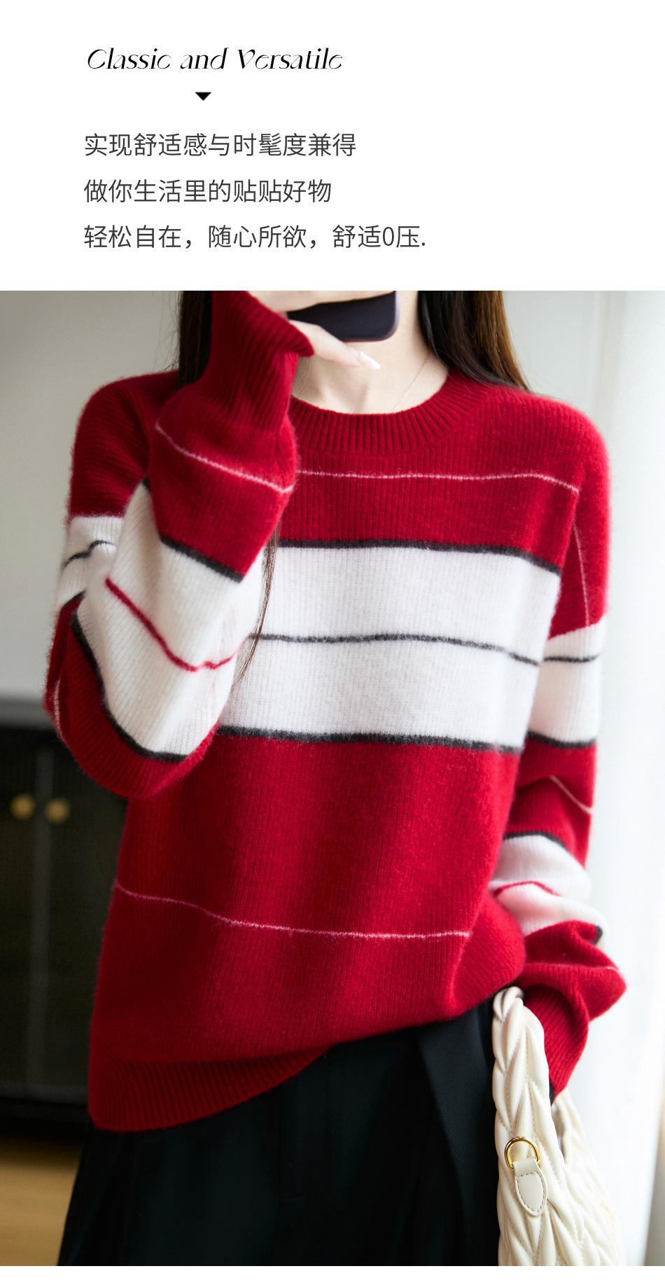 Suéter de punto básico de manga larga con cuello redondo a rayas en bloques de color para mujer, estilo holgado y perezoso, suéter grueso de lana 100% pura