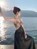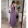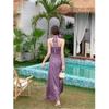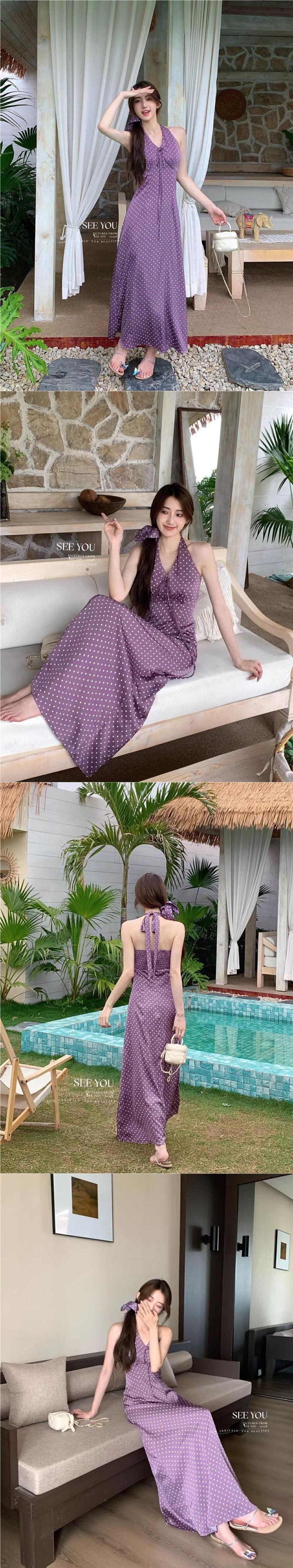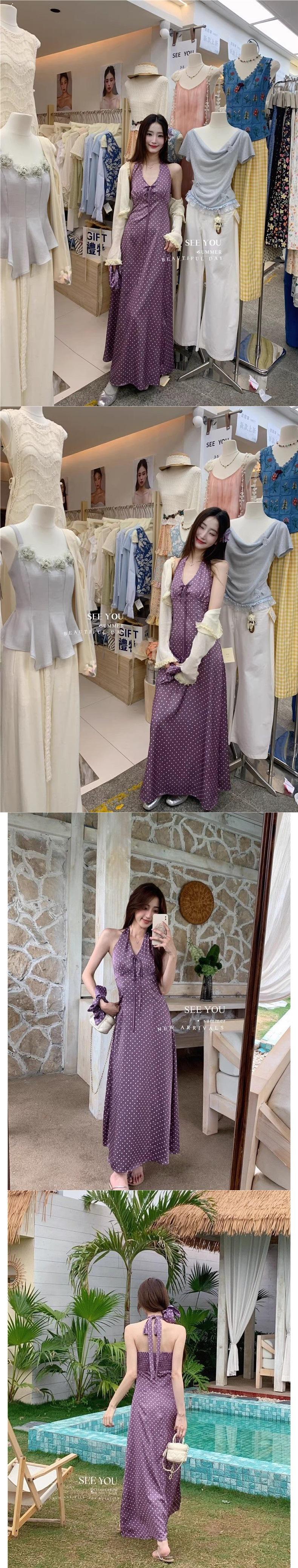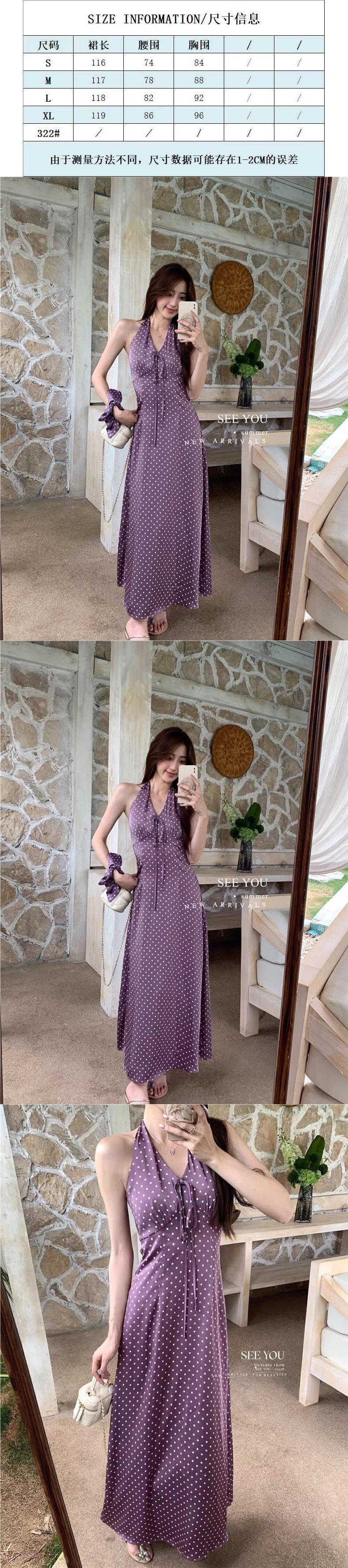 Vestido Halter Francés Retro Corazón Cuello en V Lunares Mujer Verano Espalda Descubierta Atado sin Mangas Chaleco Vestido Largo