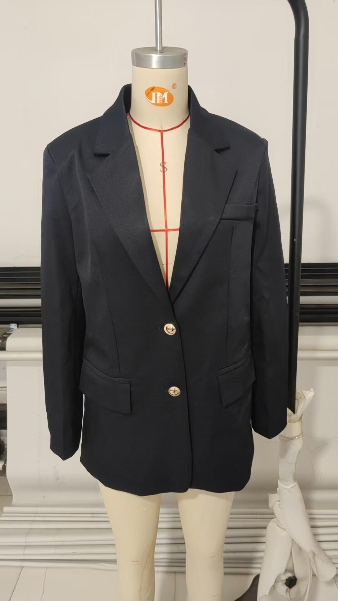 Ropa de Mujer de Comercio Exterior Transfronterizo Otoño 2025 Estilo Europeo y Americano Recto Decoración de Botones Hombreras Chaqueta de Traje de Mujer L52499