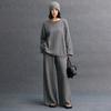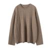 Ropa de Punto de Cachemira Casual Suéter de Cachemira Nuevo Sencillo Versátil Holgado Otoño Invierno Tejido de Cable Estilo Lazy para Mujer Cuello Redondo