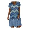 2022 Nuevo Amazon Transfronterizo Vestido de Verano Cómodo de Manga Corta con Cuello en V Estampado a Rayas para Mujer Europeo y Americano
