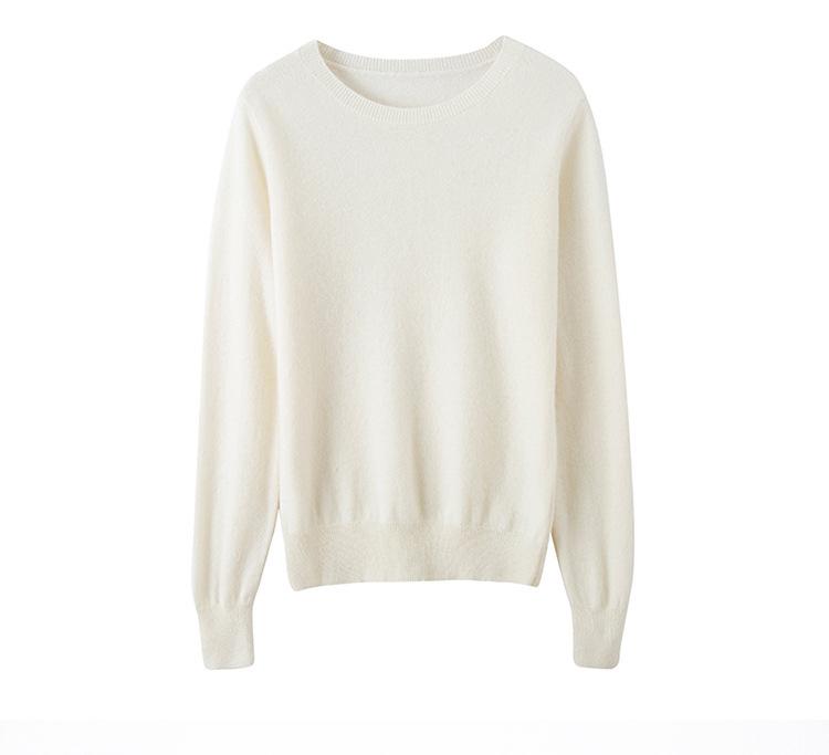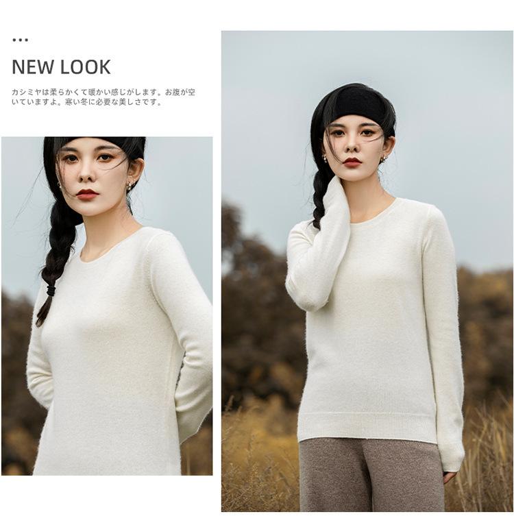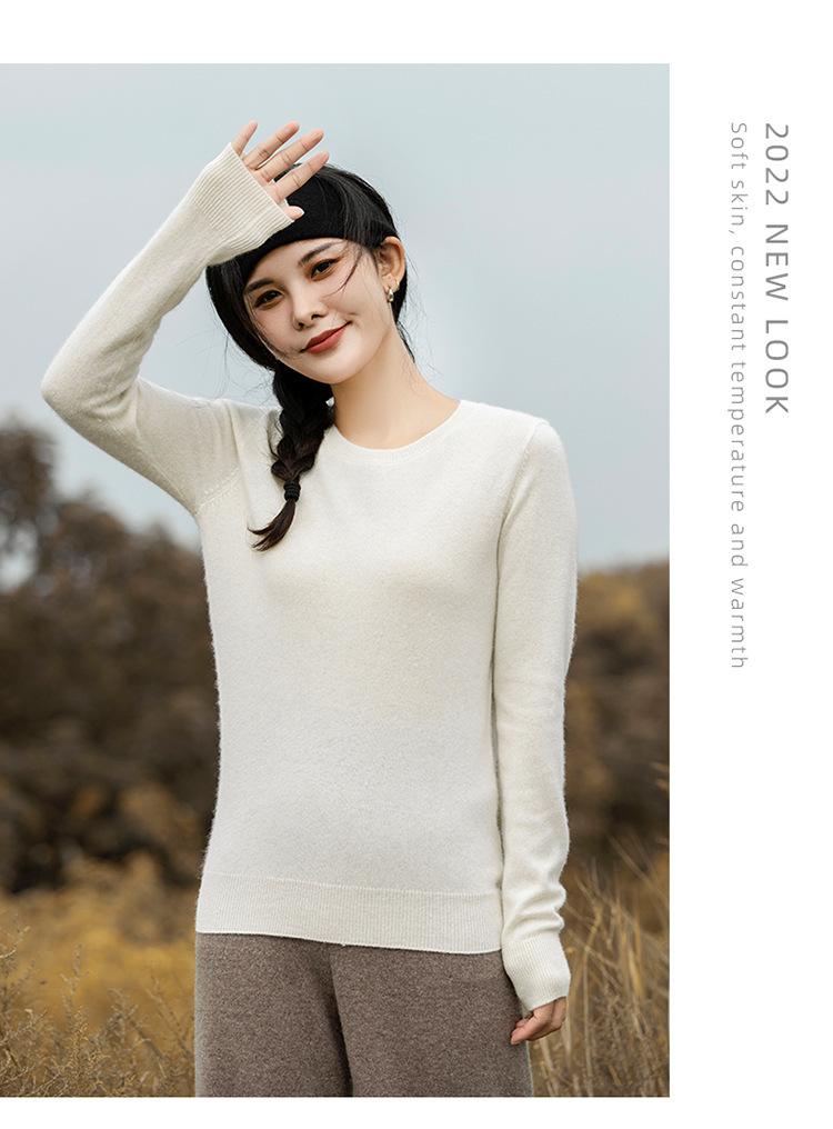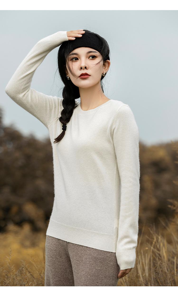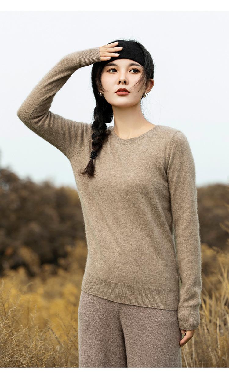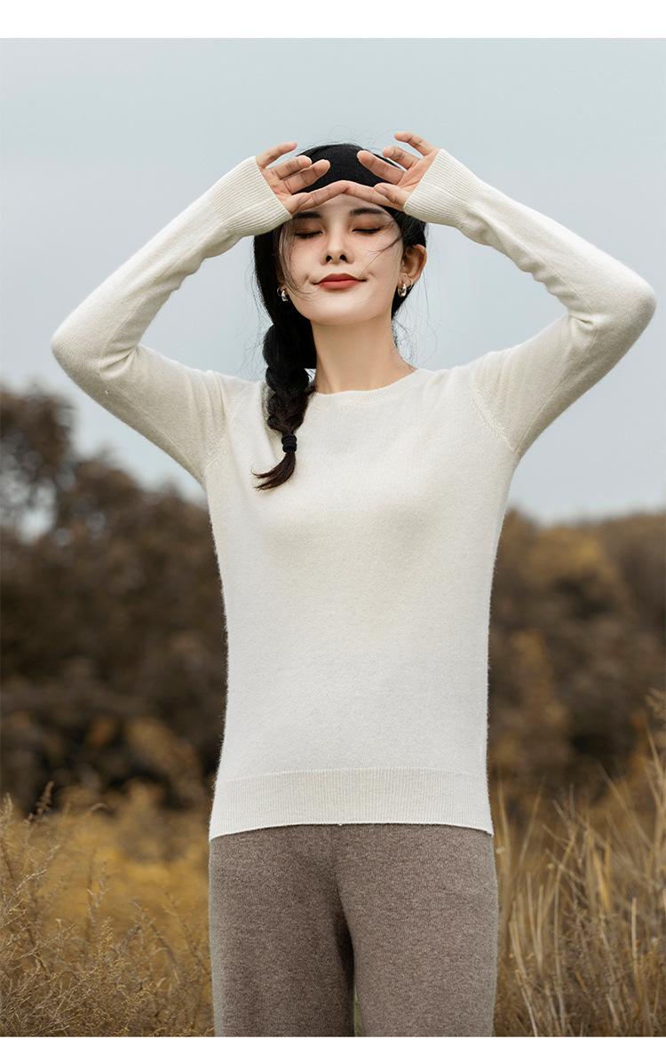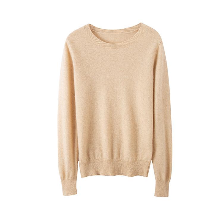 Suéter de Cachemira de Cuello Redondo para Mujer Otoño e Invierno Nuevo Clásico Color Sólido Cómodo Suave Manga Larga Capa Base
