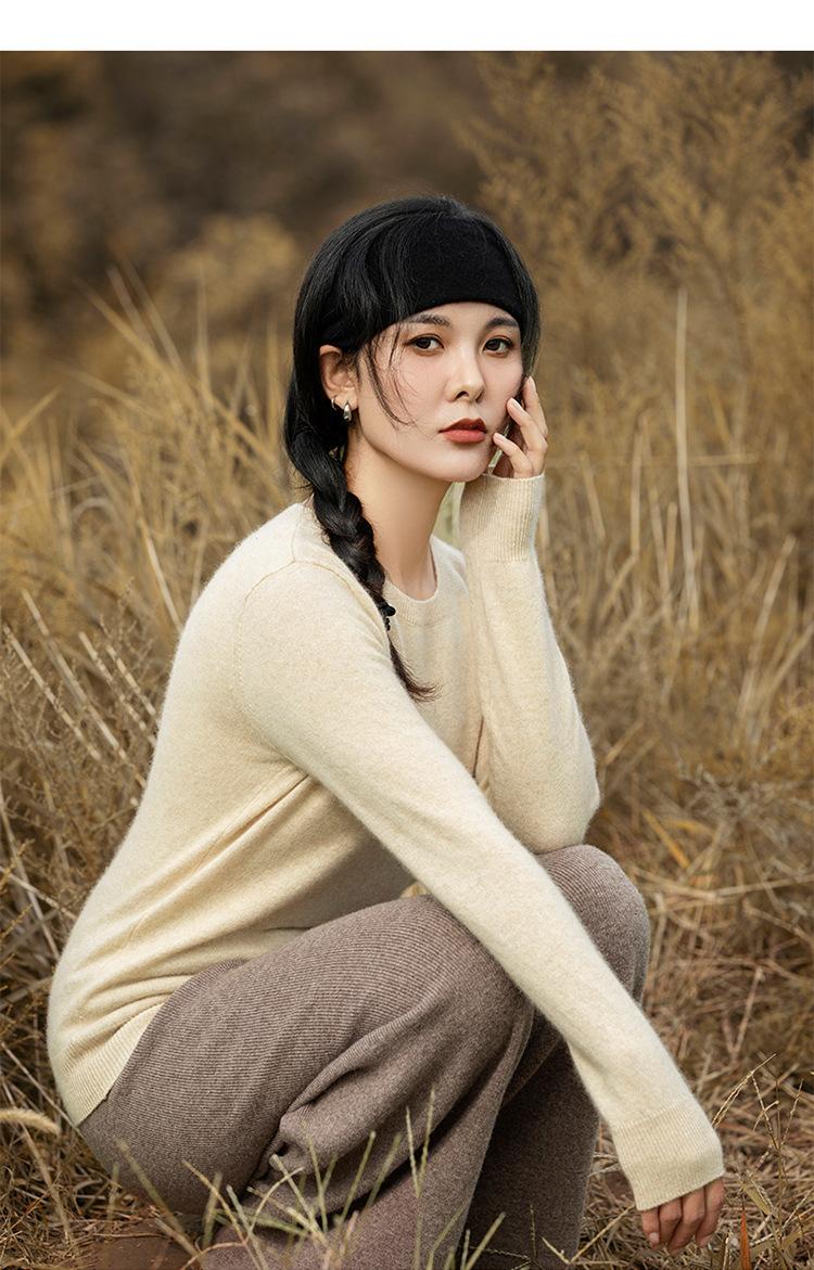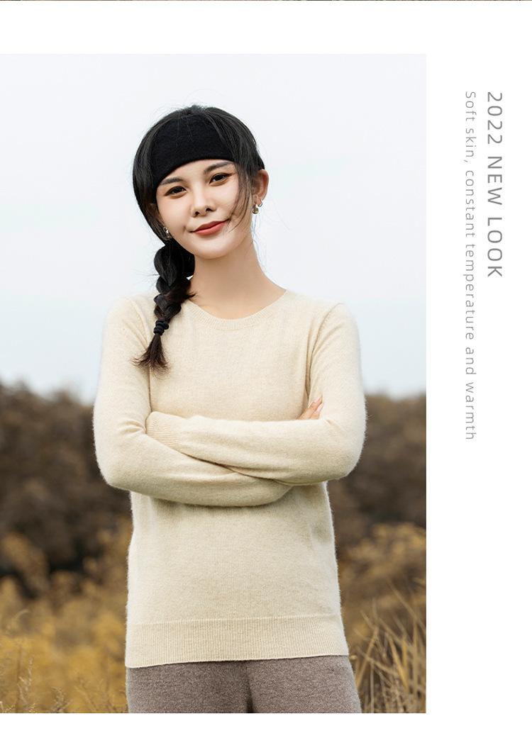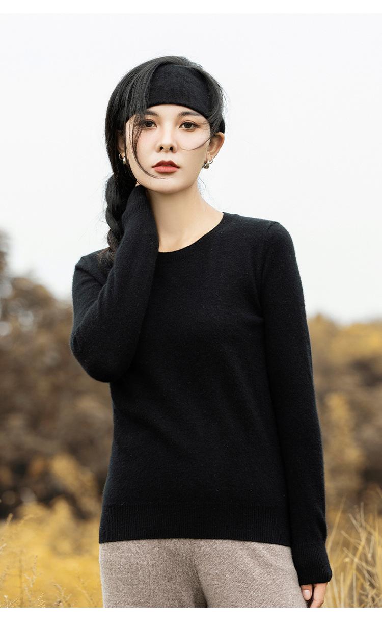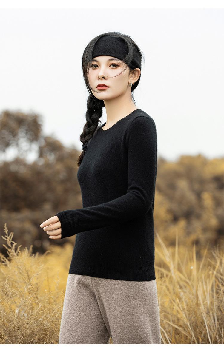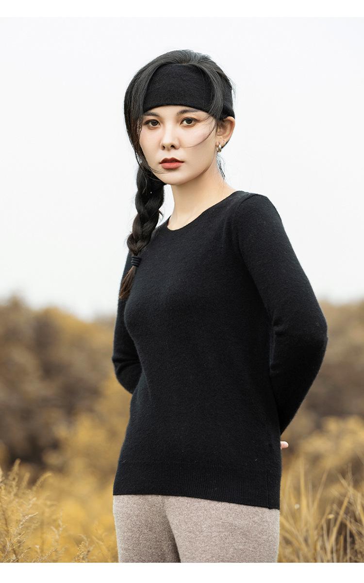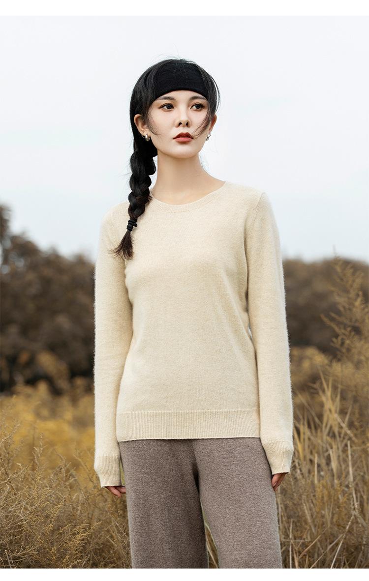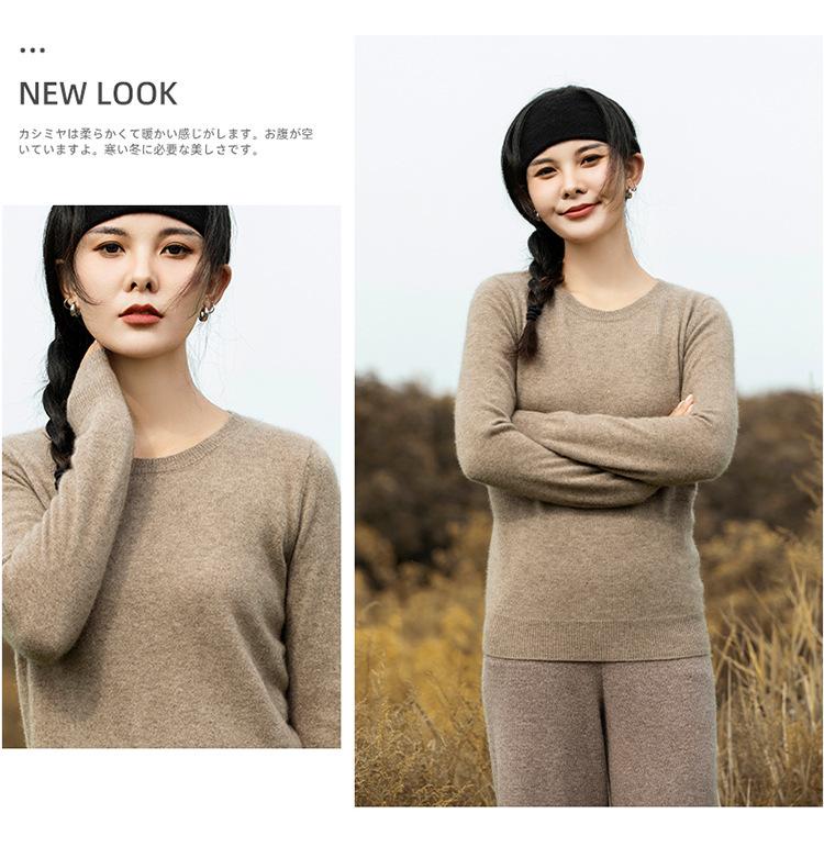 Suéter de Cachemira de Cuello Redondo para Mujer Otoño e Invierno Nuevo Clásico Color Sólido Cómodo Suave Manga Larga Capa Base