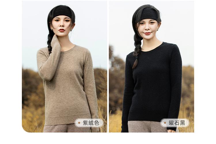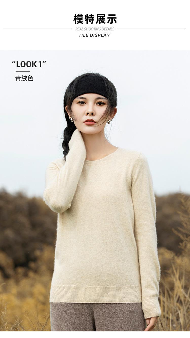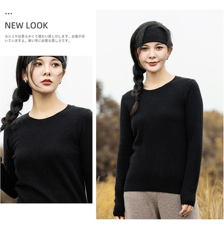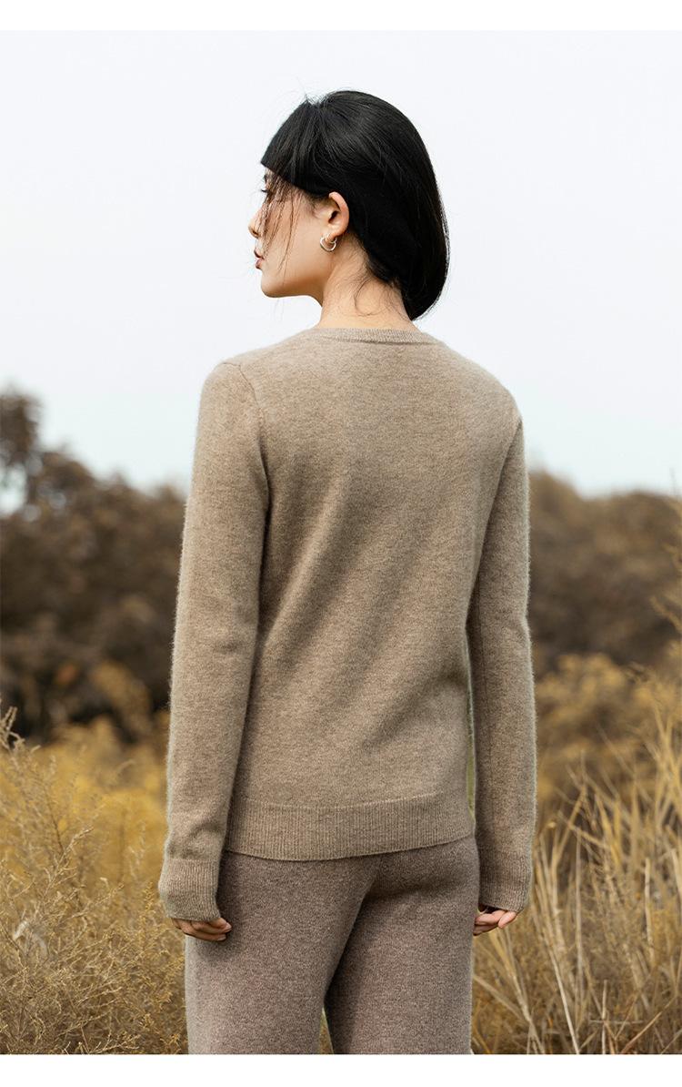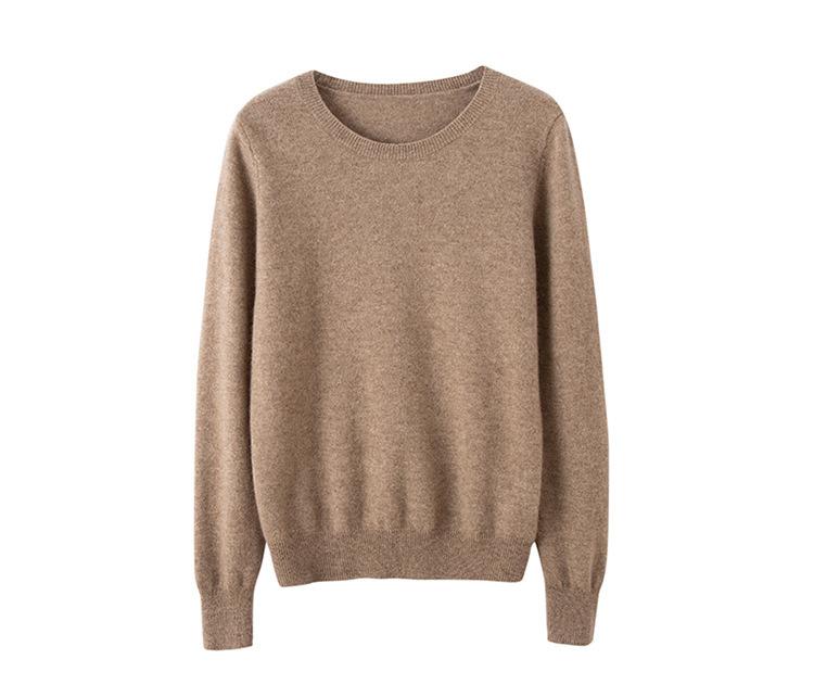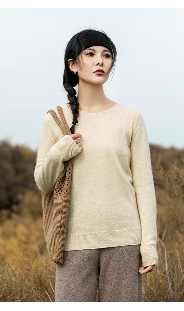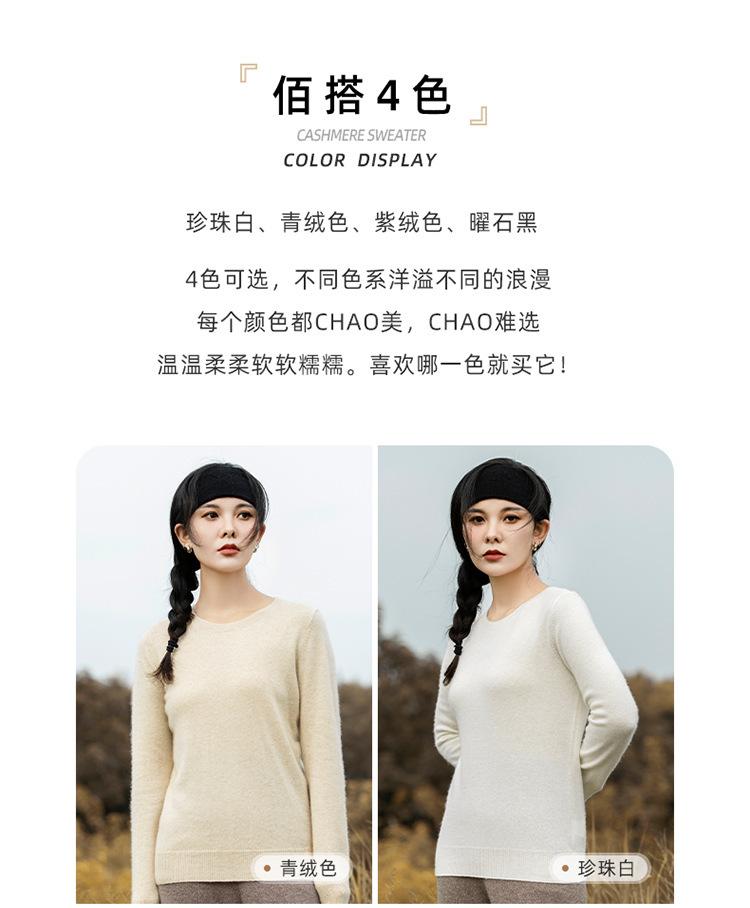 Suéter de Cachemira de Cuello Redondo para Mujer Otoño e Invierno Nuevo Clásico Color Sólido Cómodo Suave Manga Larga Capa Base