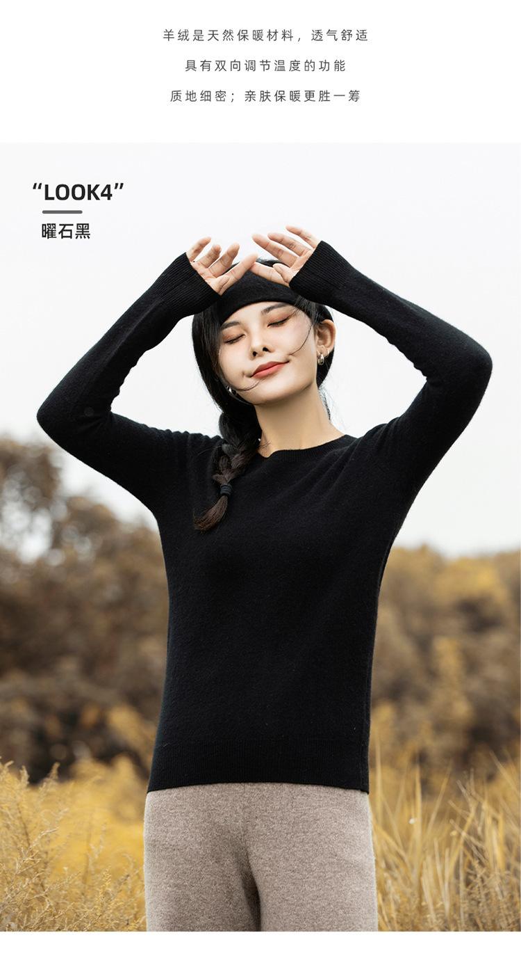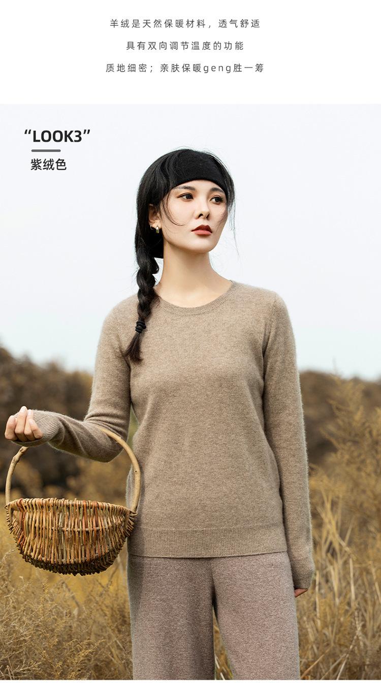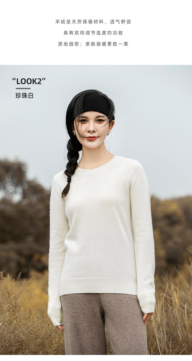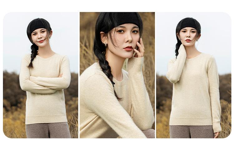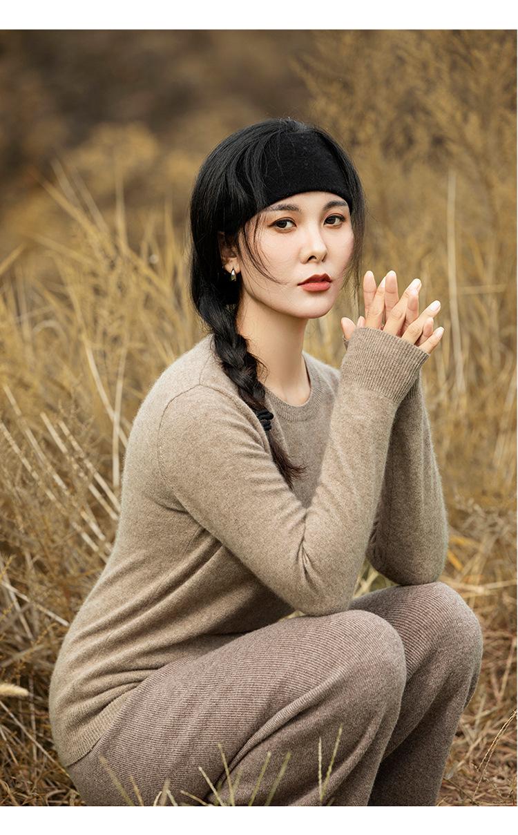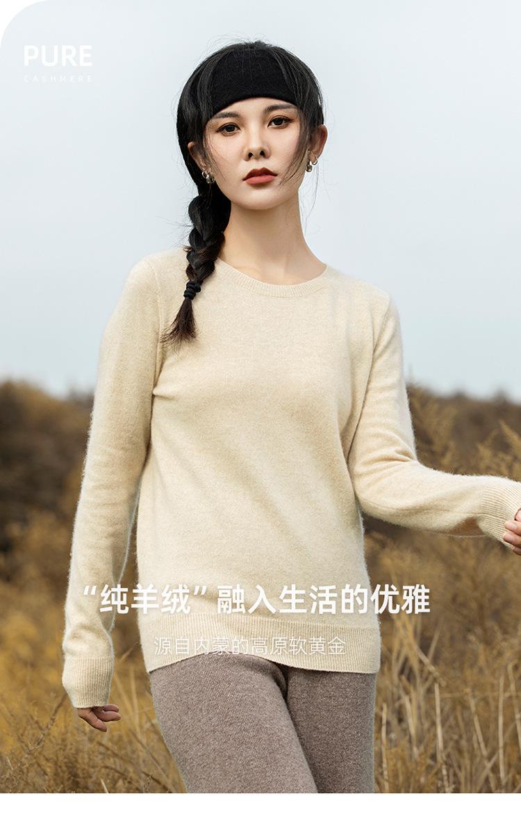 Suéter de Cachemira de Cuello Redondo para Mujer Otoño e Invierno Nuevo Clásico Color Sólido Cómodo Suave Manga Larga Capa Base