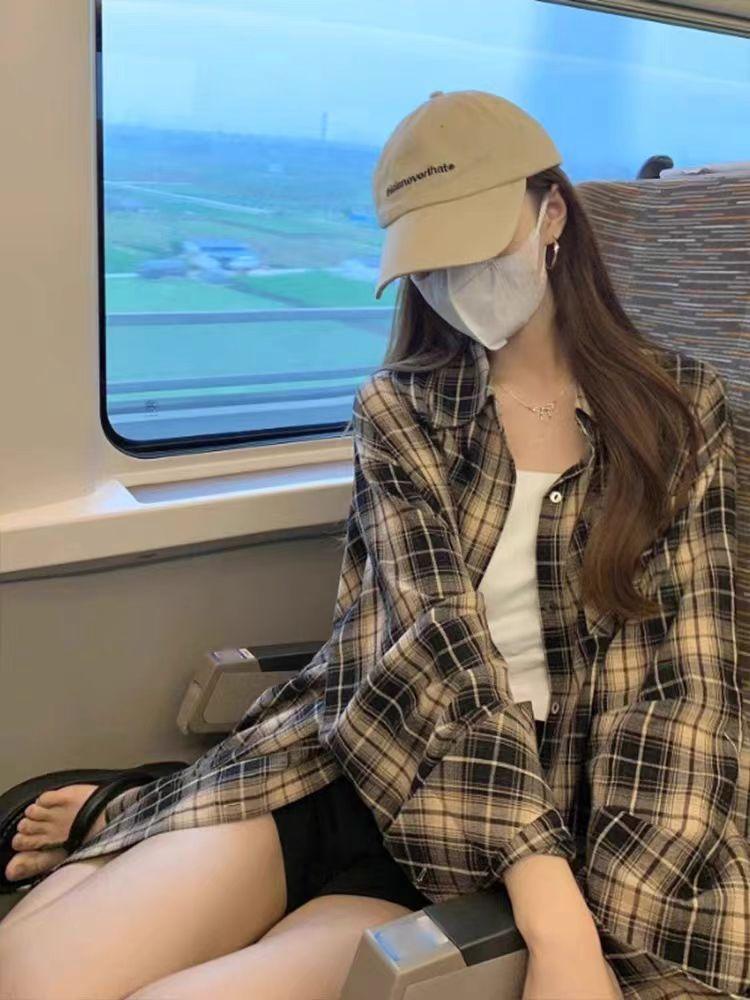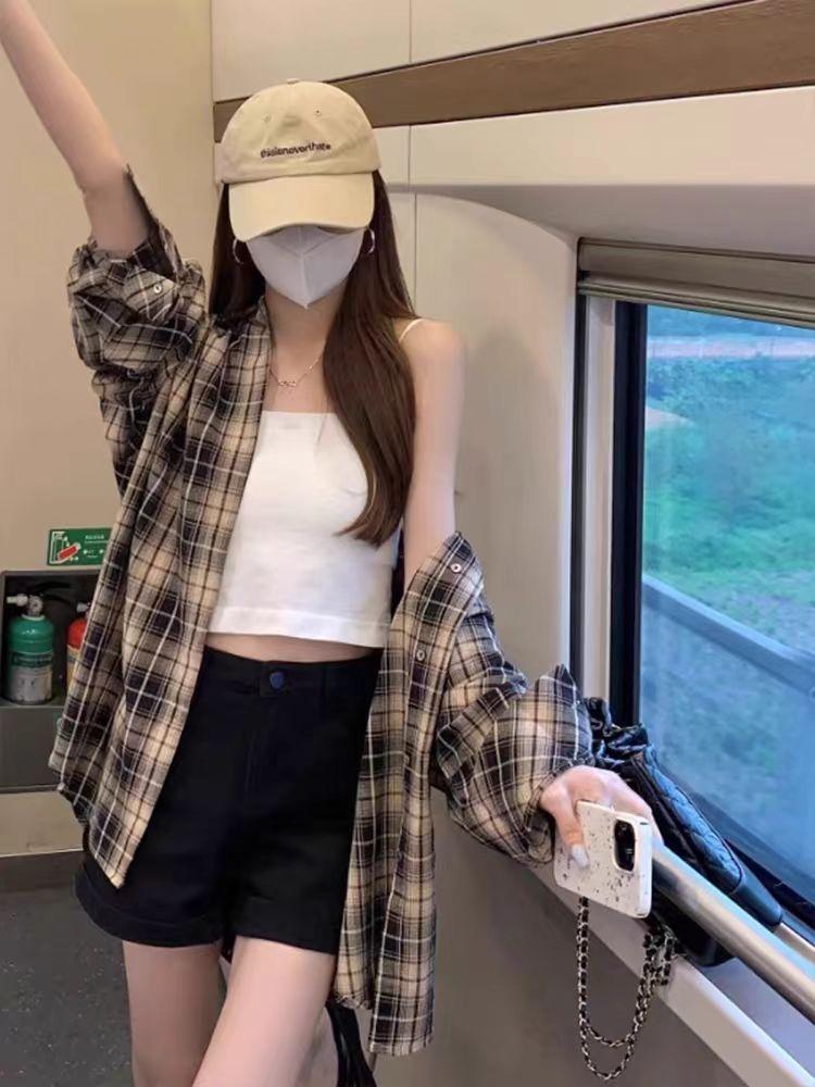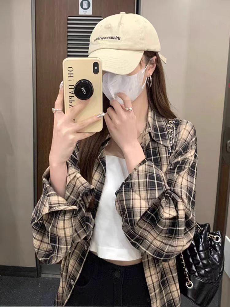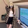 Camisa de cuadros americana mujer otoño 2025 nueva camisa holgada estilo perezoso chaqueta top protección solar verano