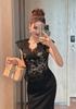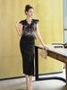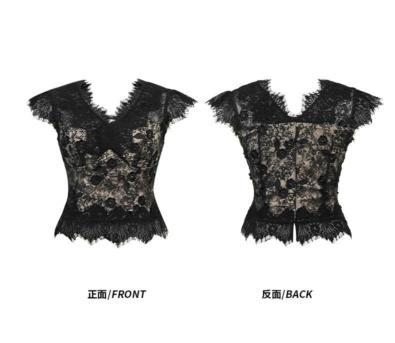 2025 Verano Nueva Ropa de Mujer Temperamento Socialité Blusa de Encaje con Cuello en V Mujer Francesa Exquisita Manga Corta Top Adelgazante 82051