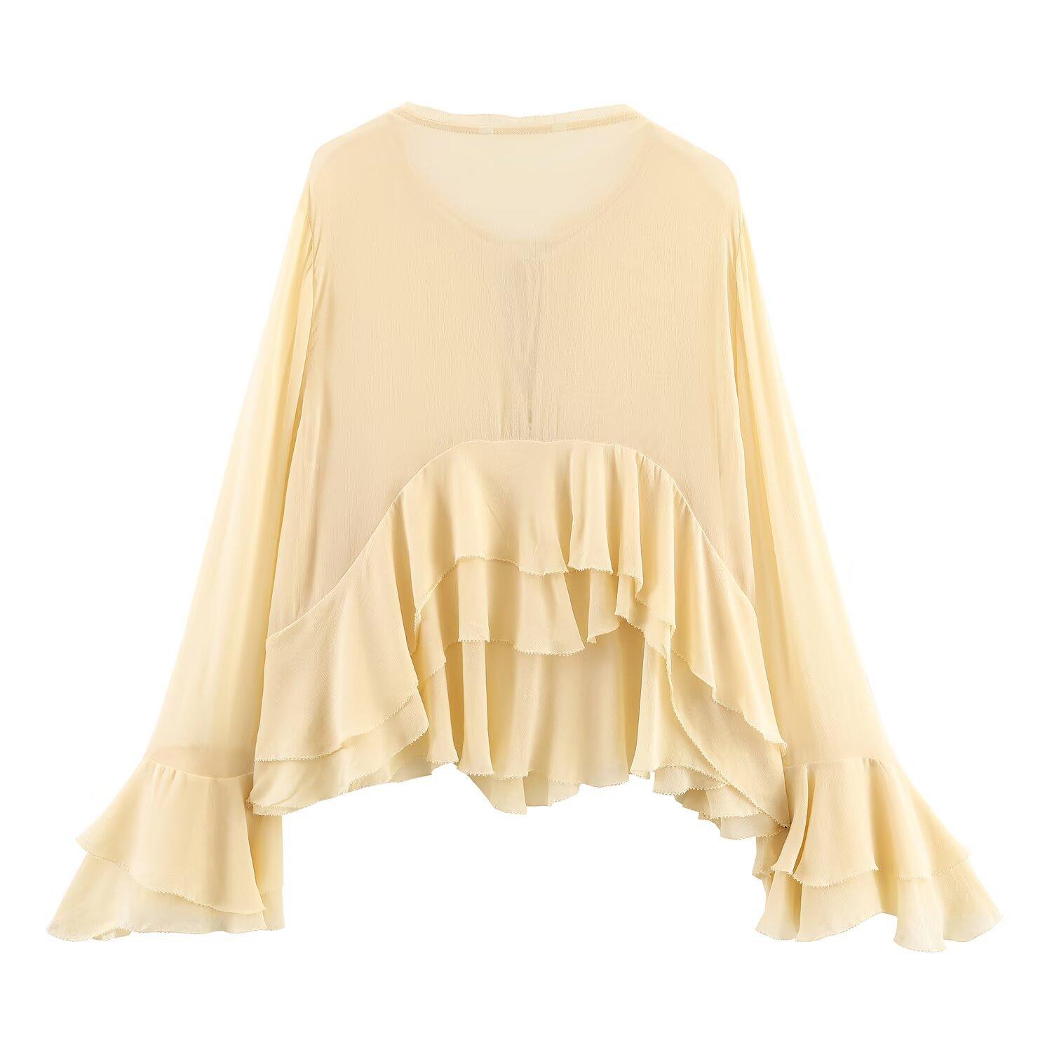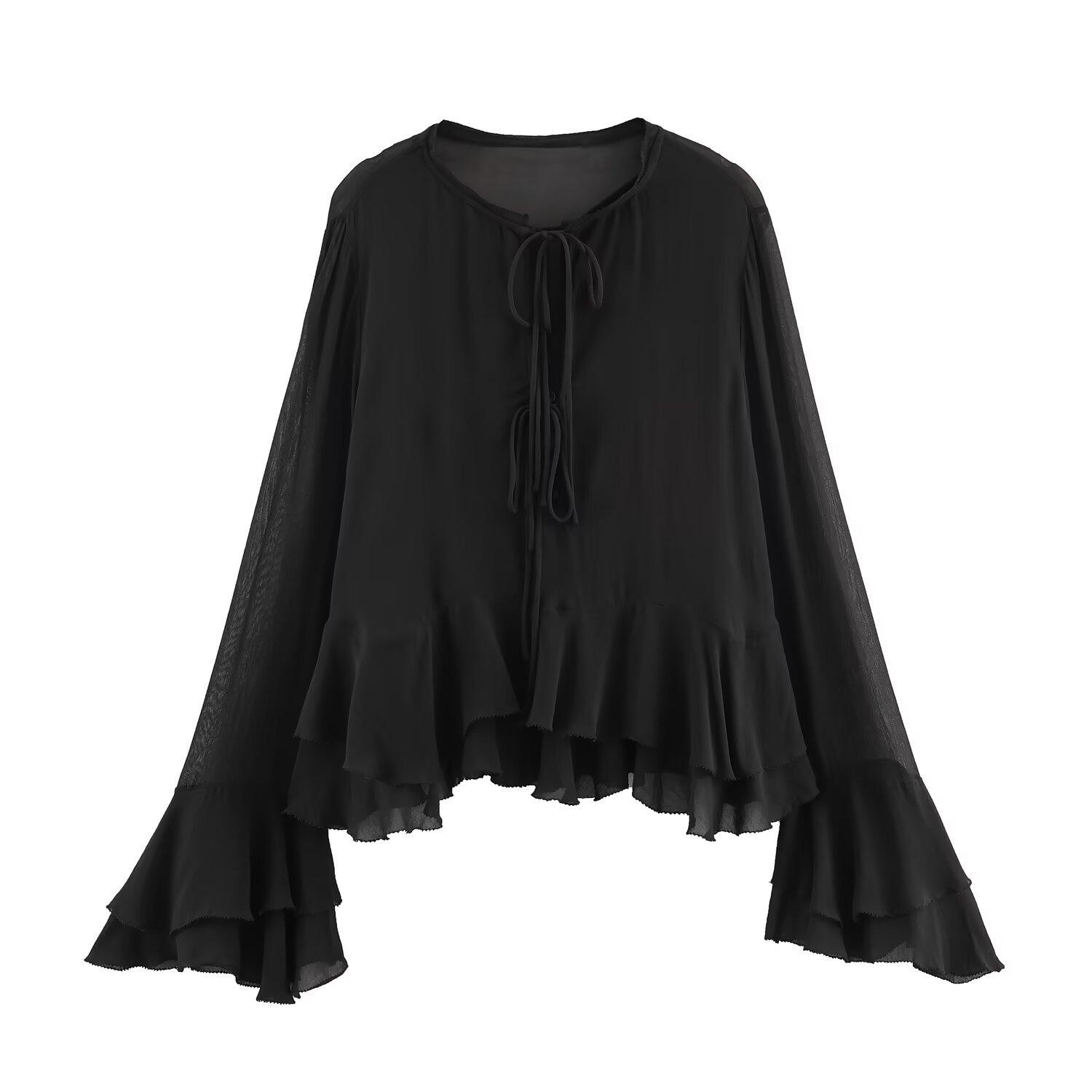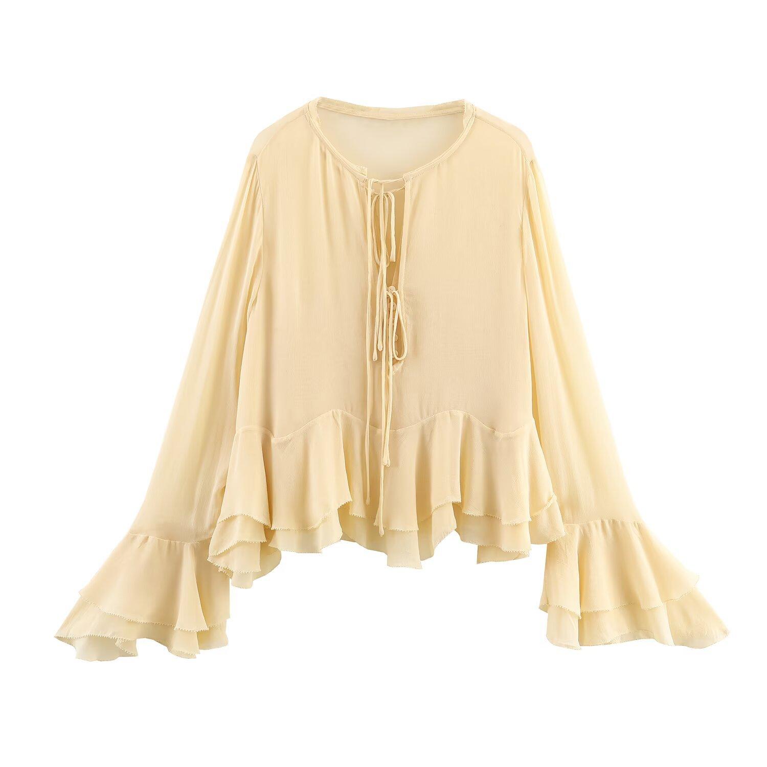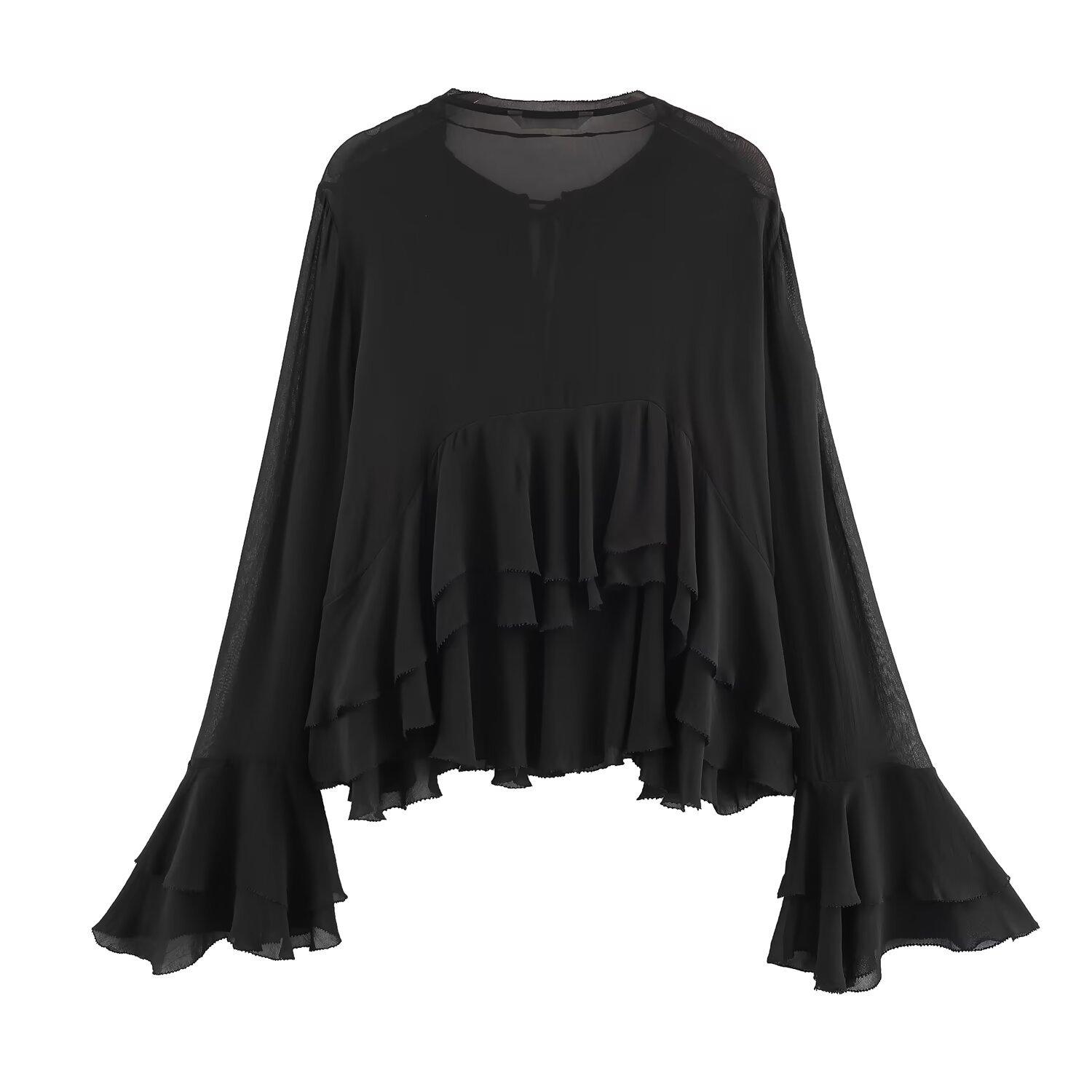 Ropa de Mujer Transfronteriza de Comercio Exterior 2025 Otoño Nuevo Estilo Europeo y Americano Decoración en Capas Camisa de Manga Larga Top 6895288