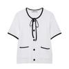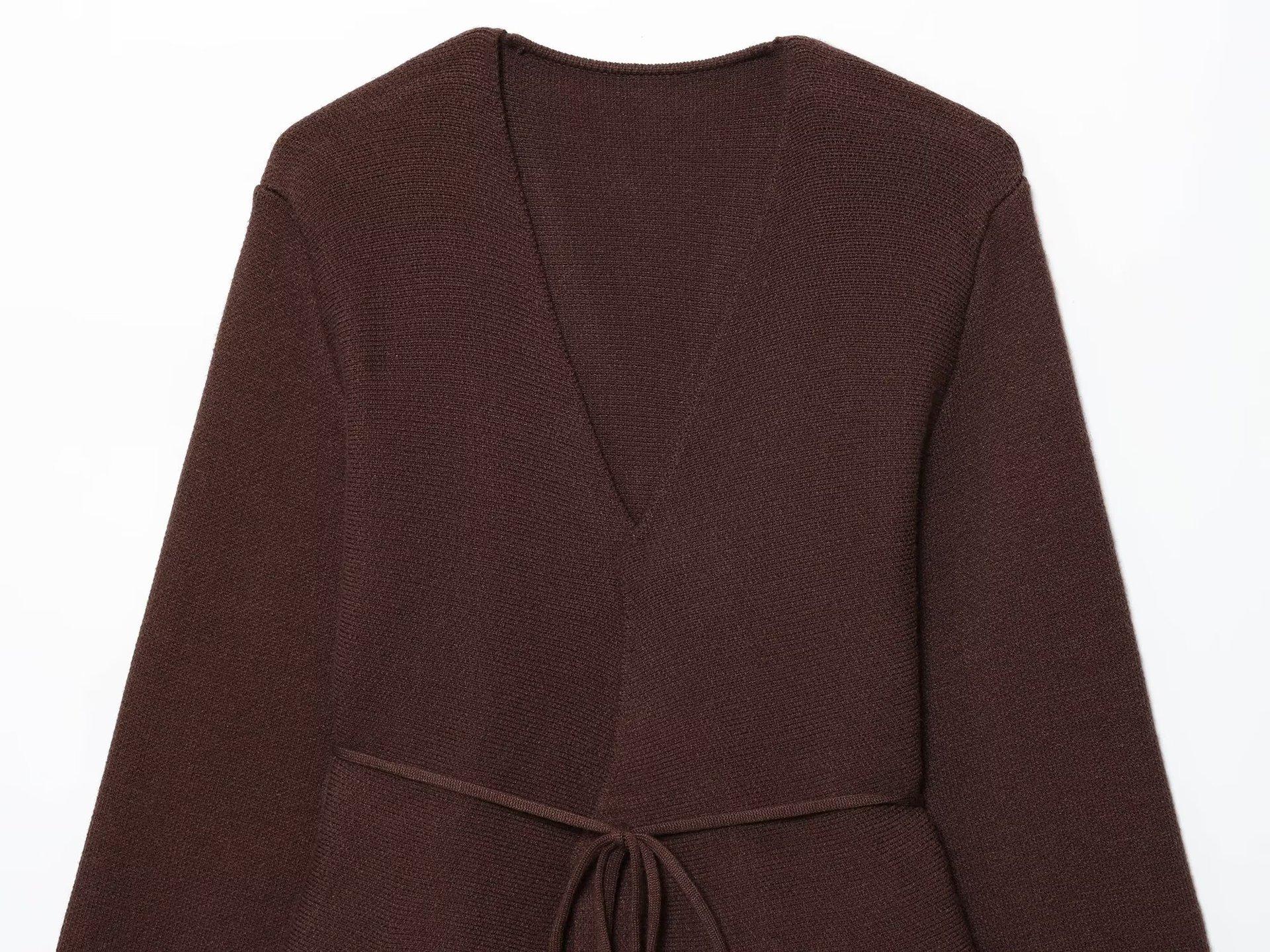 Cárdigan de punto para mujer de estilo europeo y americano, nuevo para el verano 2025, venta al por mayor transfronteriza, con bajo de falda corta y cinturón