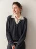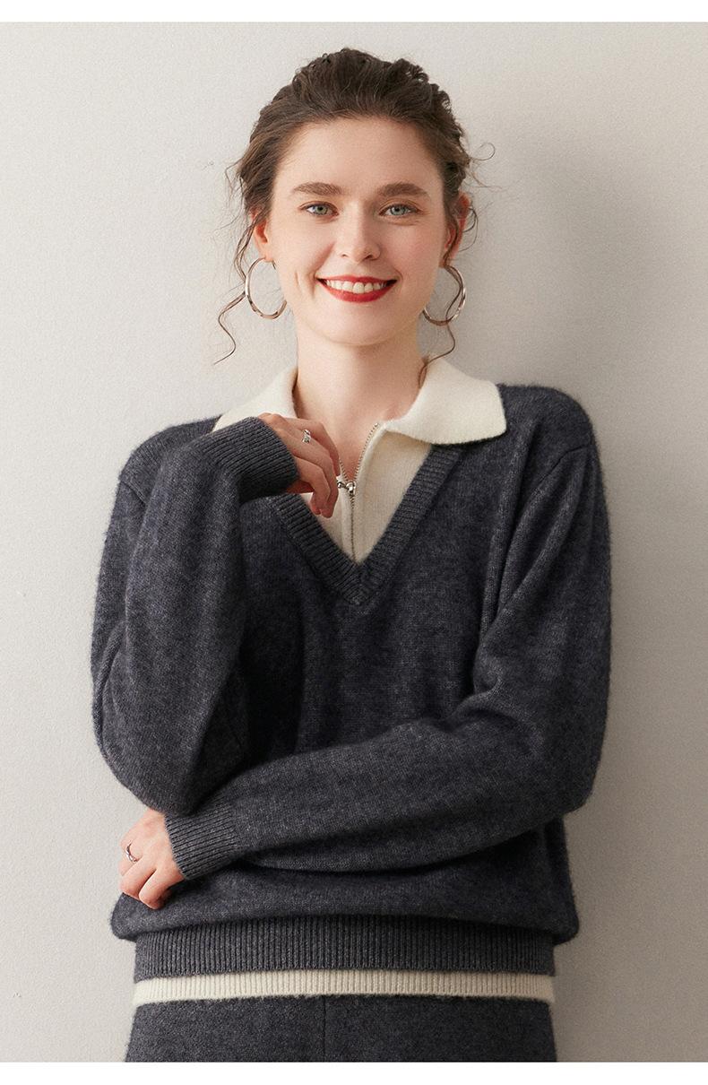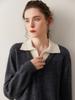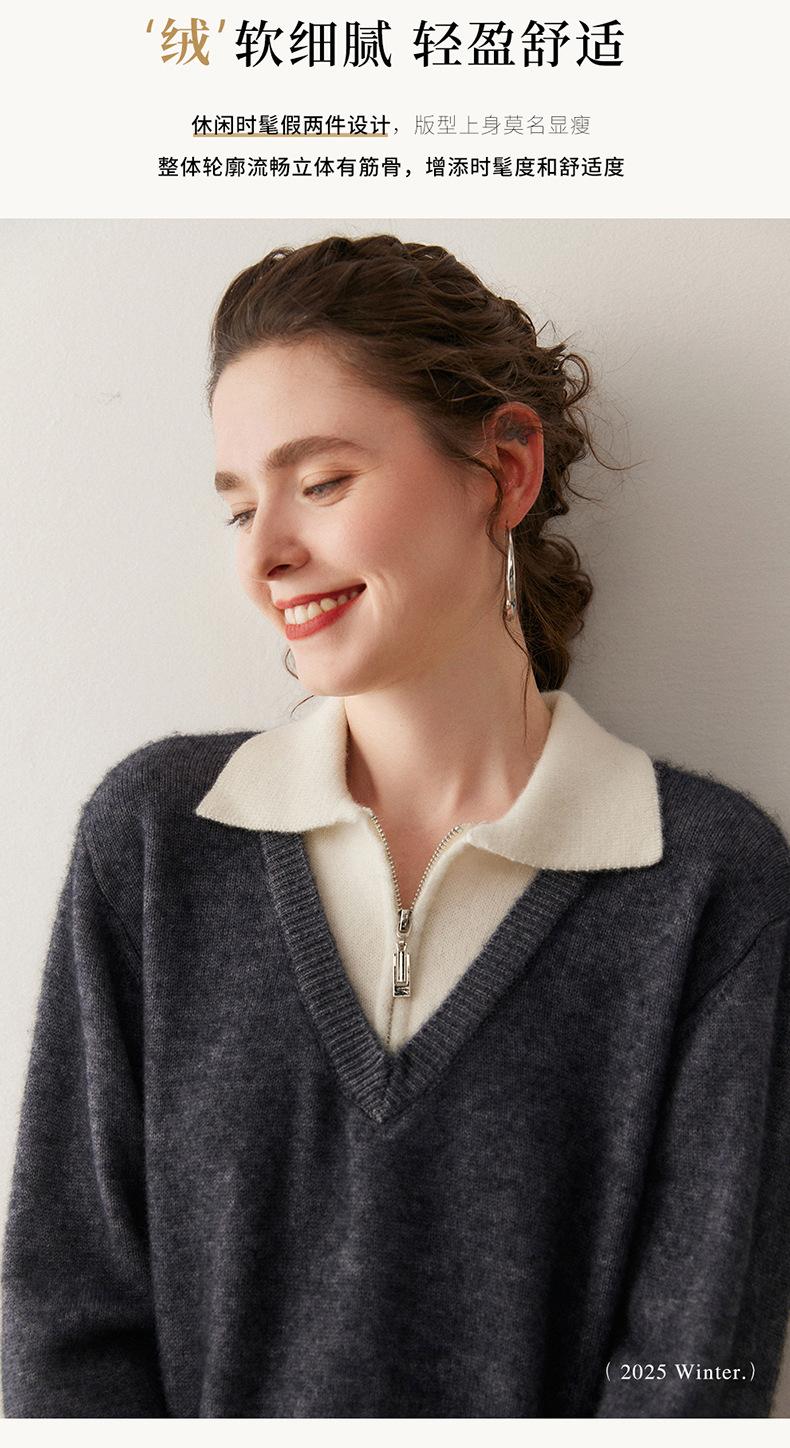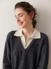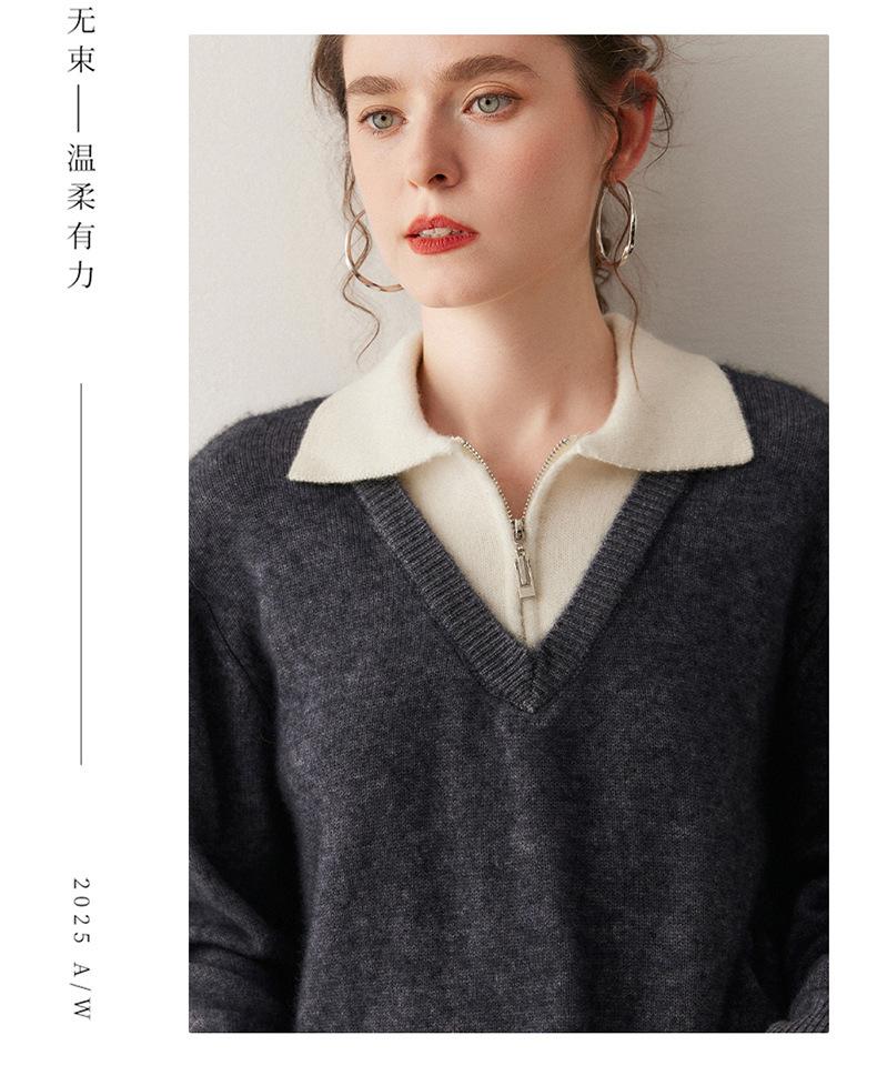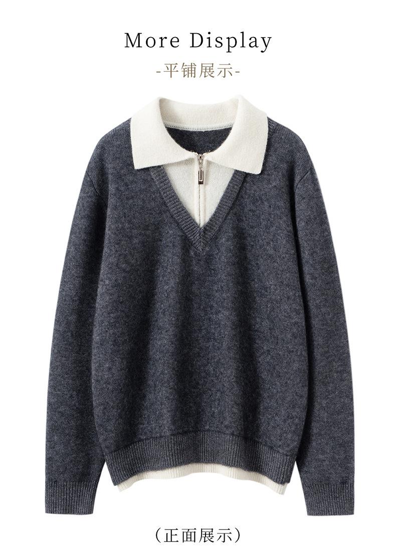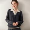 Suéter de Cachemira de Dos Piezas Falso con Bloque de Color para Mujer Nueva Moda Manga Larga Top Estilo Extranjero Suelto Tejido Interior Camisa Base