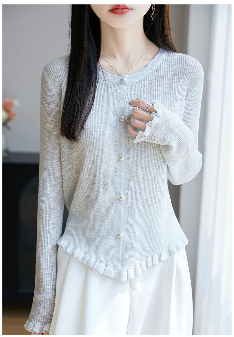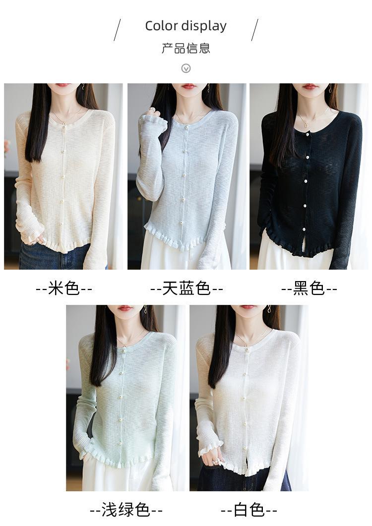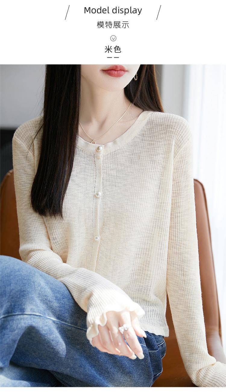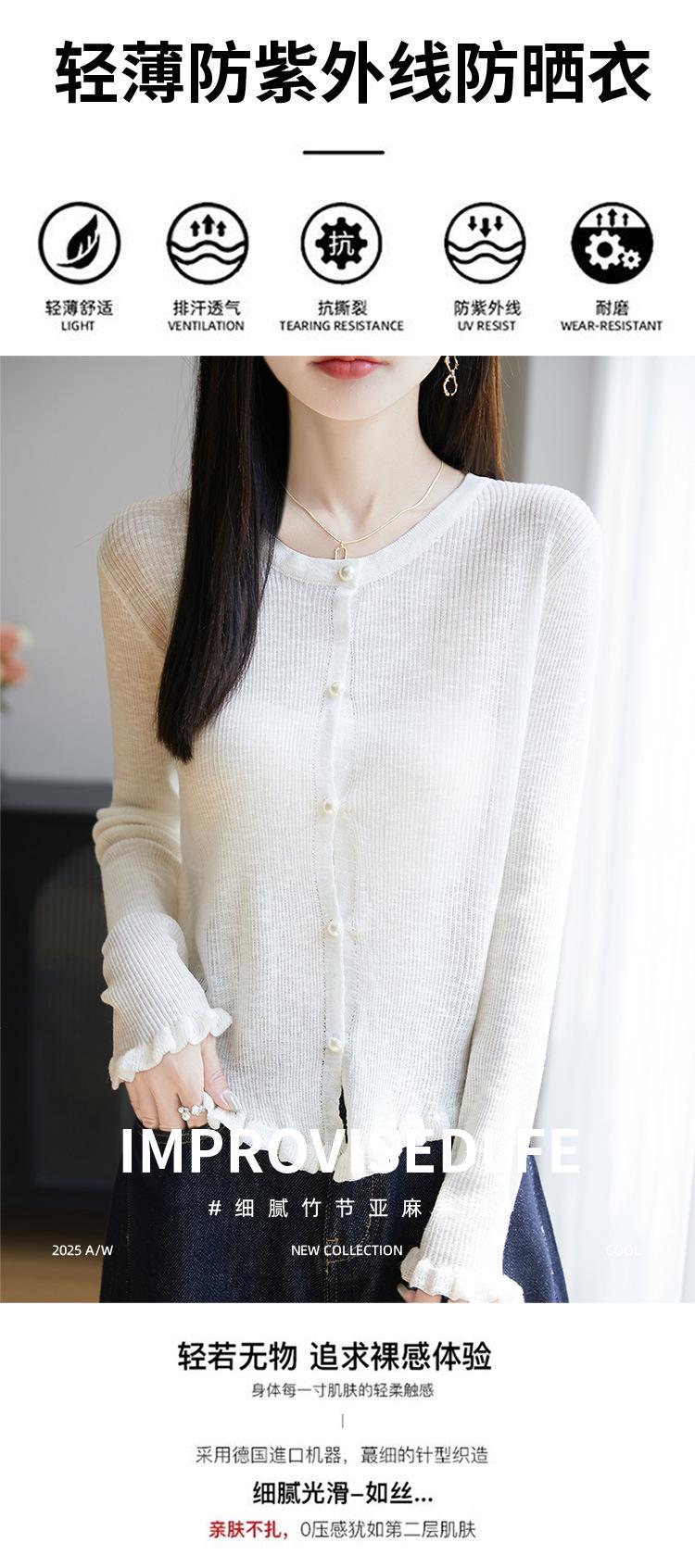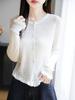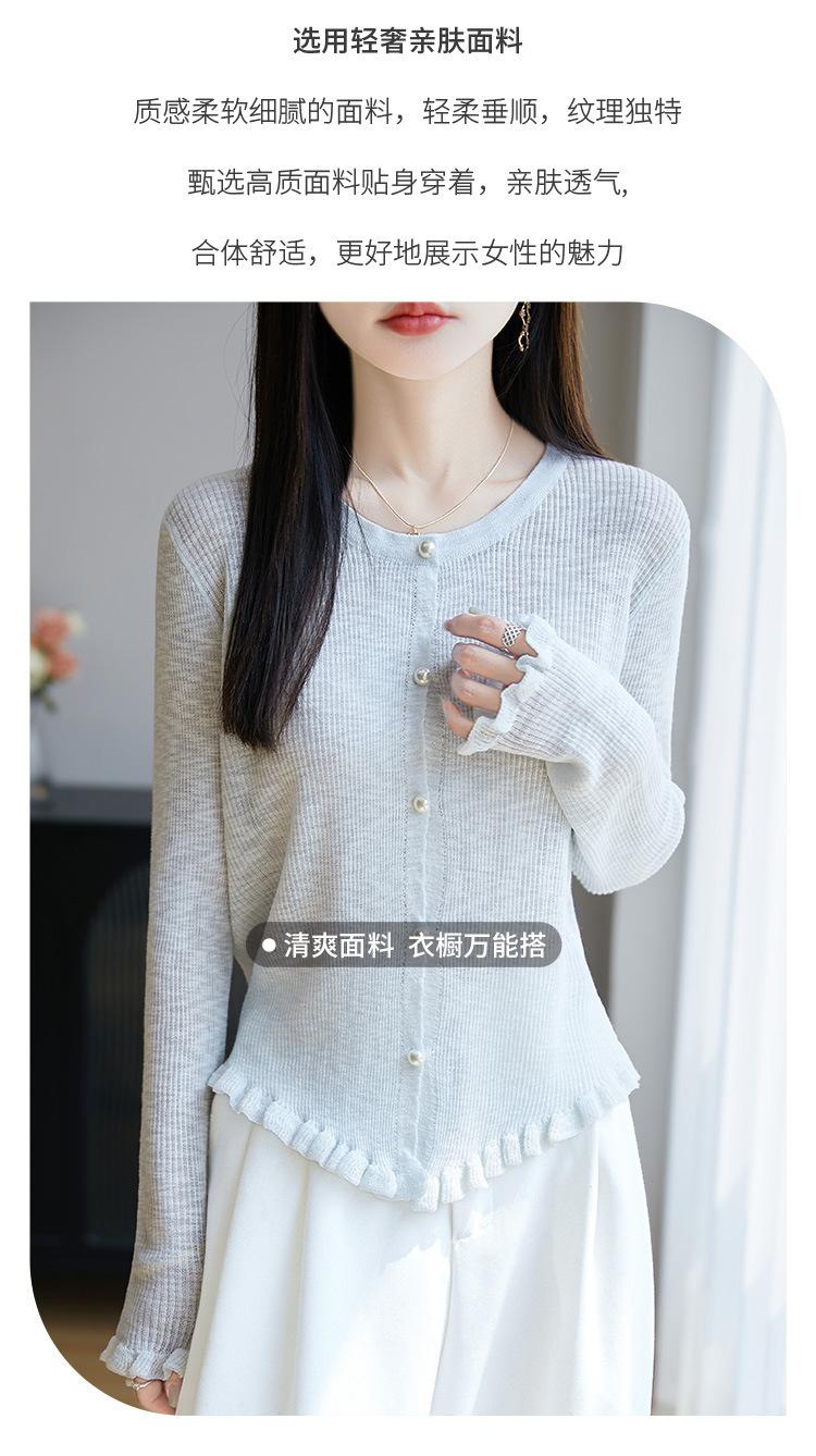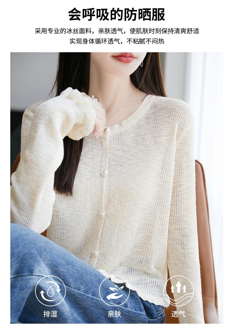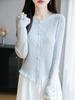Camisa de Protección Solar 2025 Verano Nuevo Moda Femenina Commuter Cuello Redondo Dobladillo con Orejas Solapa Sencilla Top Corto