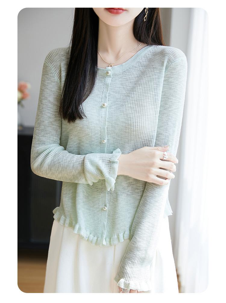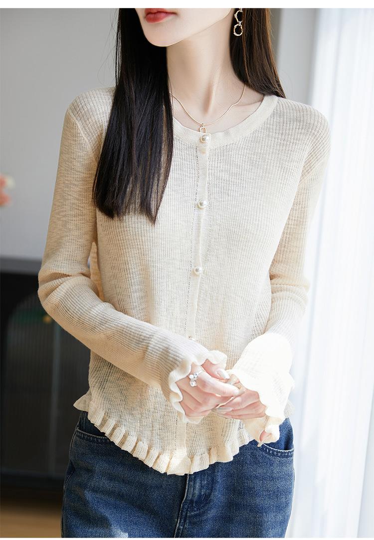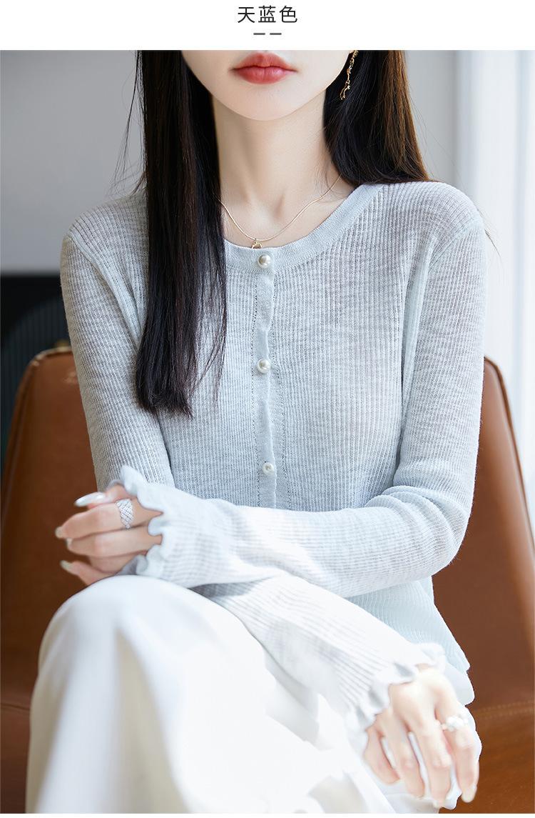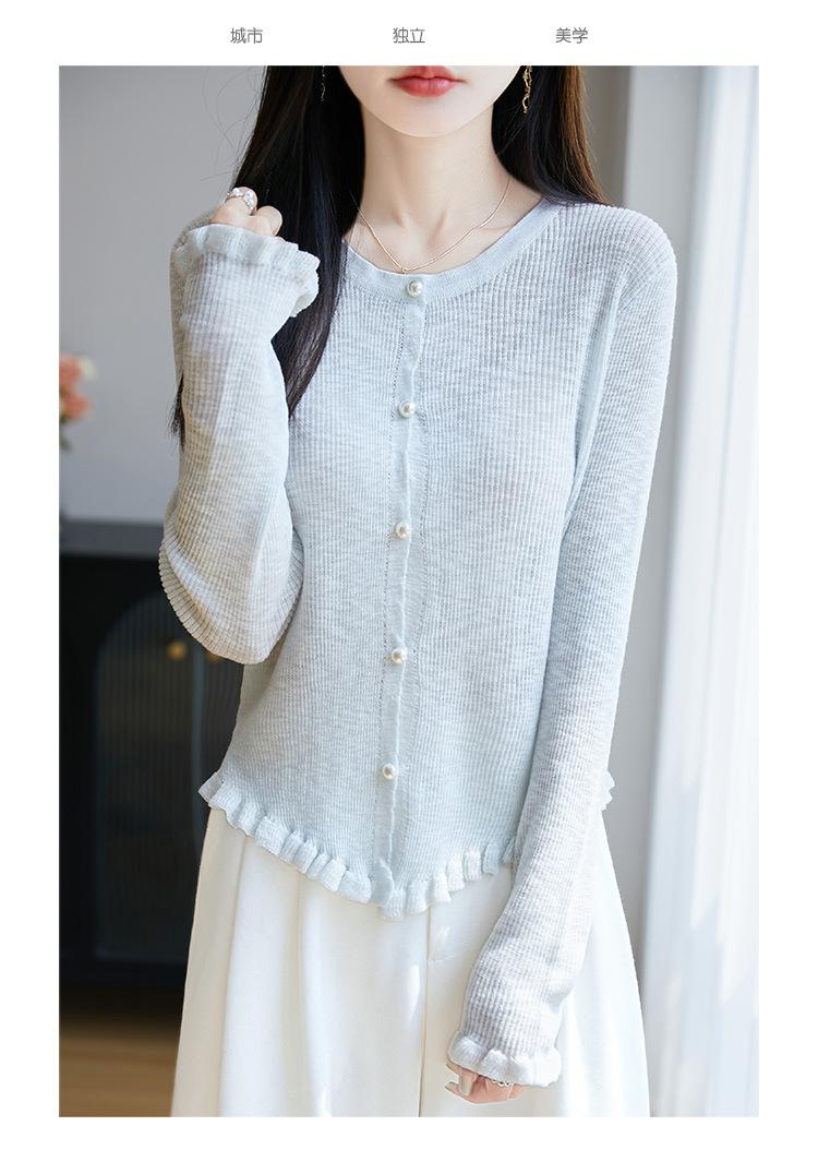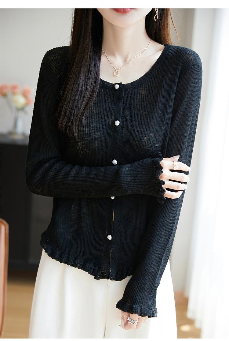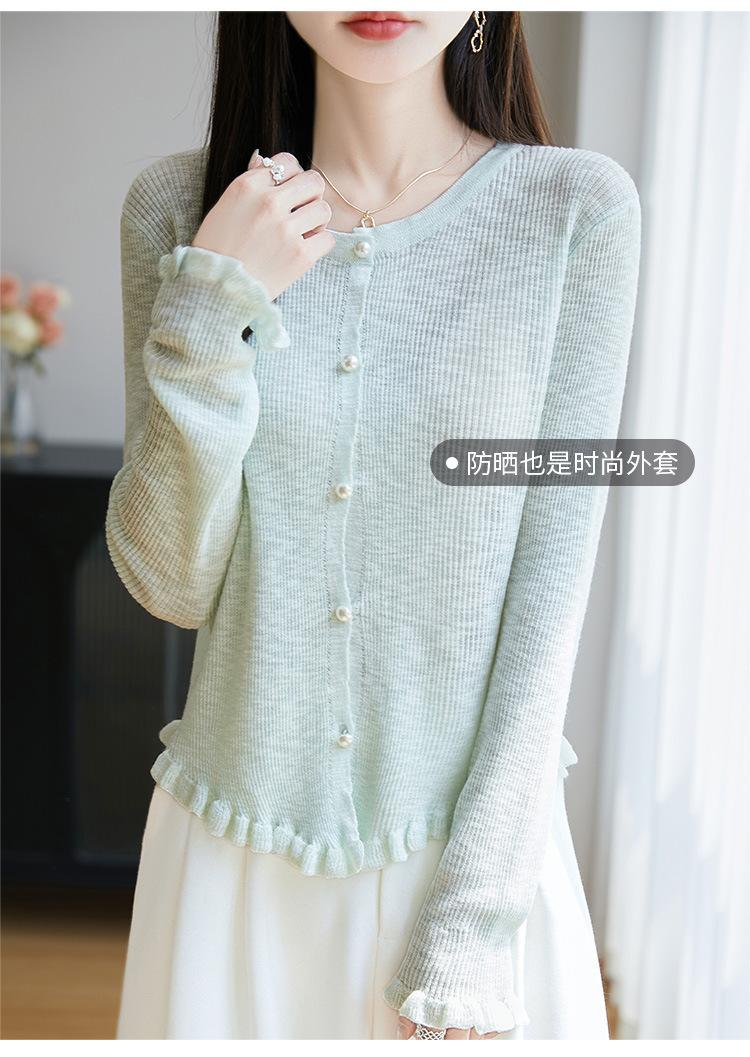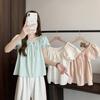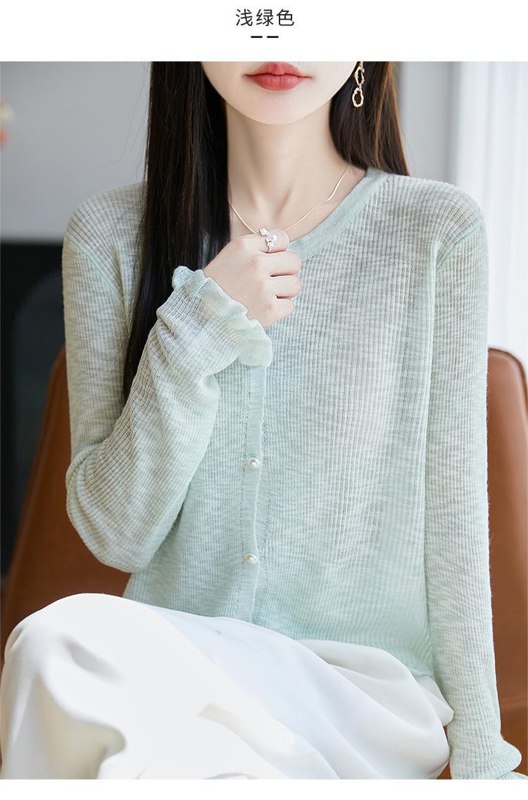 Camisa de Protección Solar 2025 Verano Nuevo Moda Femenina Commuter Cuello Redondo Dobladillo con Orejas Solapa Sencilla Top Corto