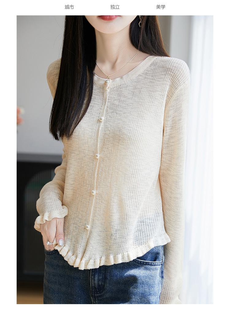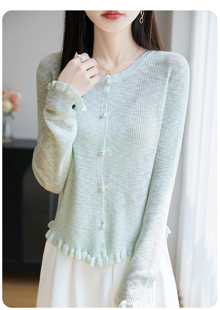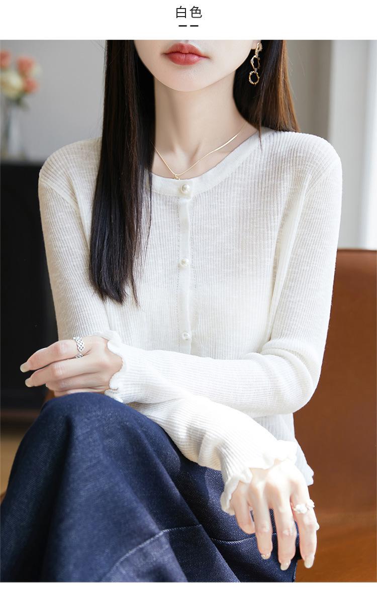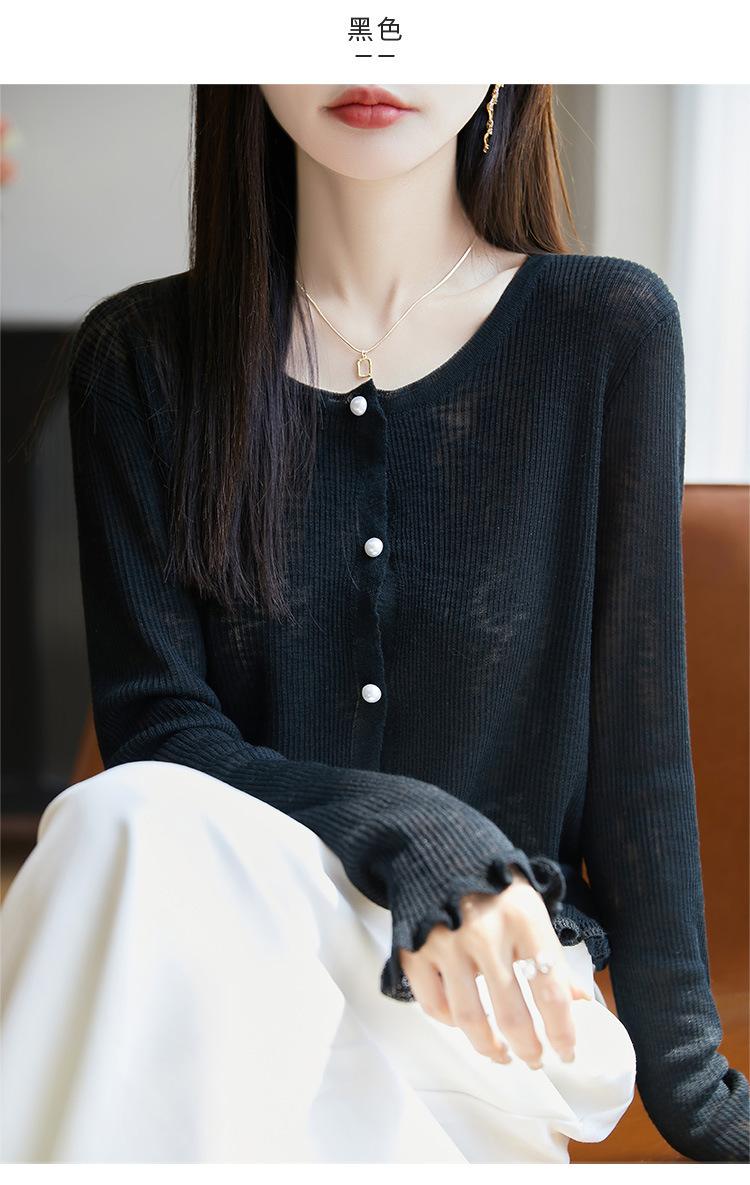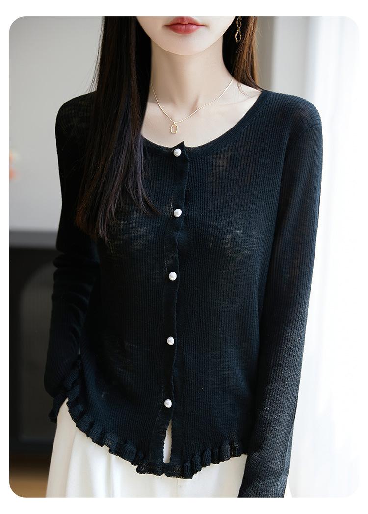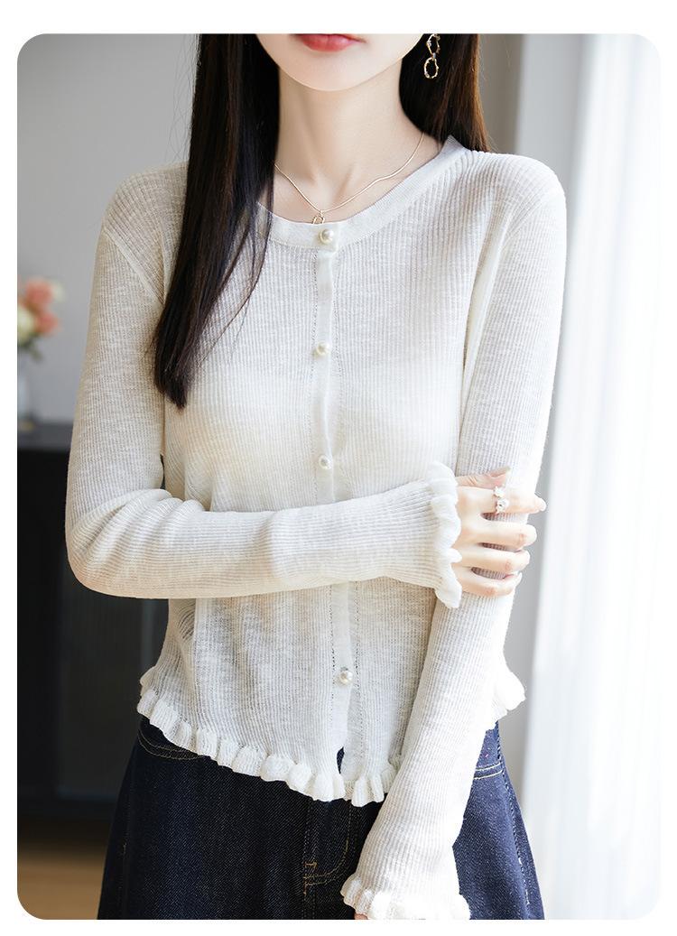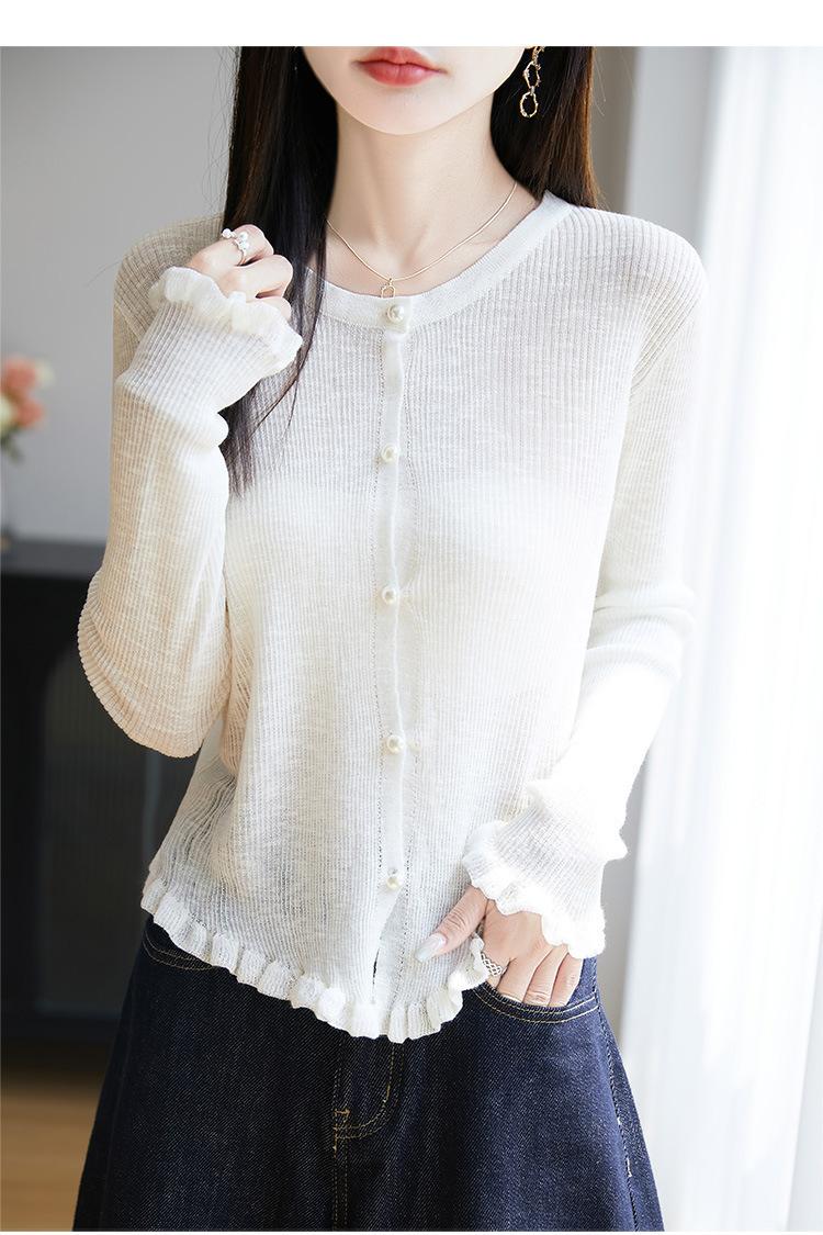 Camisa de Protección Solar 2025 Verano Nuevo Moda Femenina Commuter Cuello Redondo Dobladillo con Orejas Solapa Sencilla Top Corto