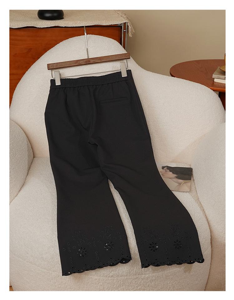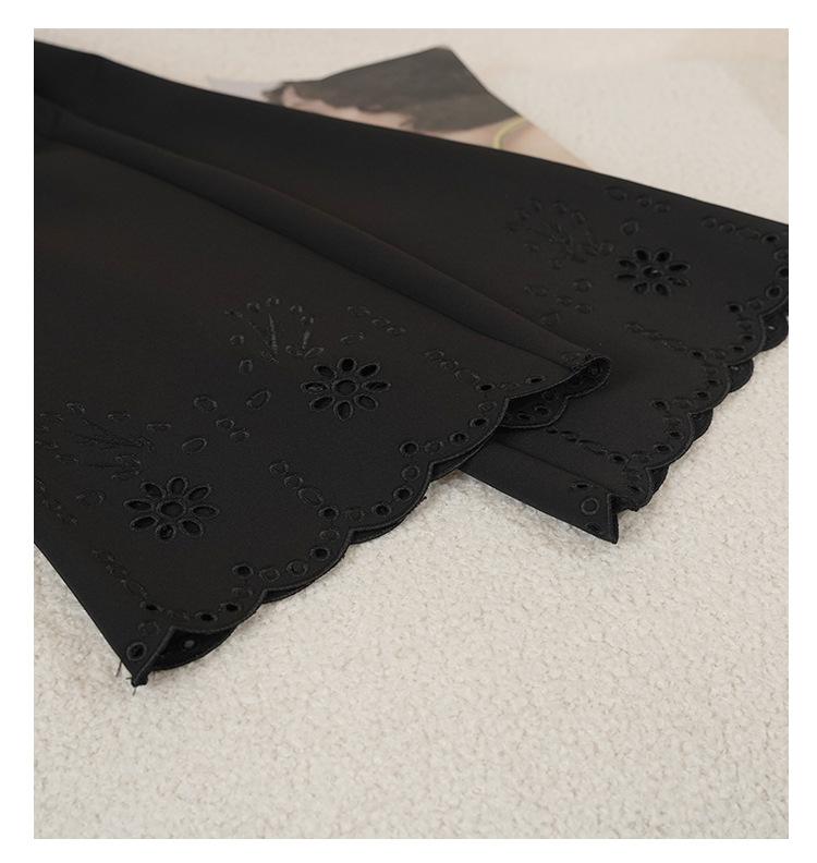 Anfeiona 2025 Nuevo Diseño Elástico Negro con Cintura Elástica Sentido Calado Bordado Moda Adelgazante Pantalones Nueve Puntos para Mujer