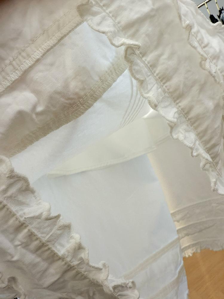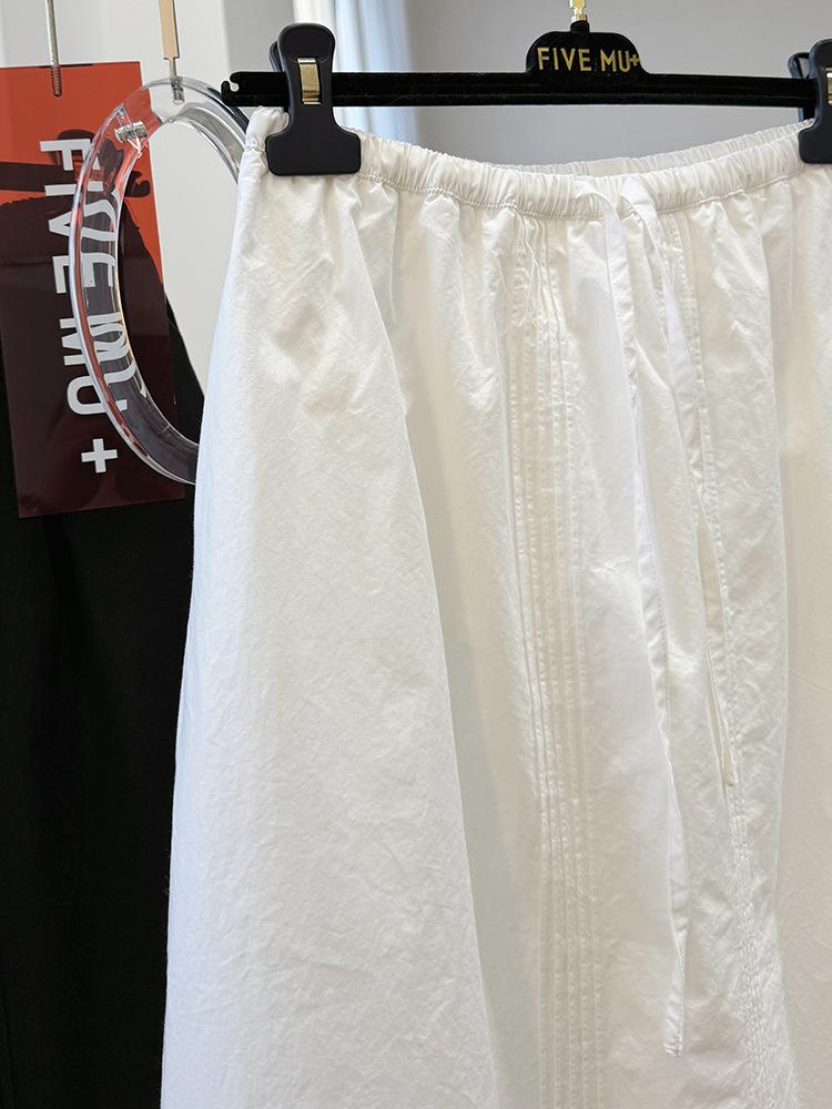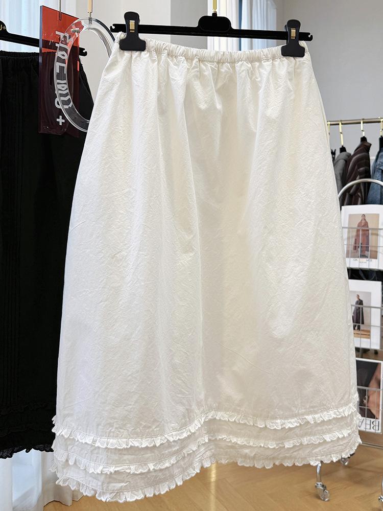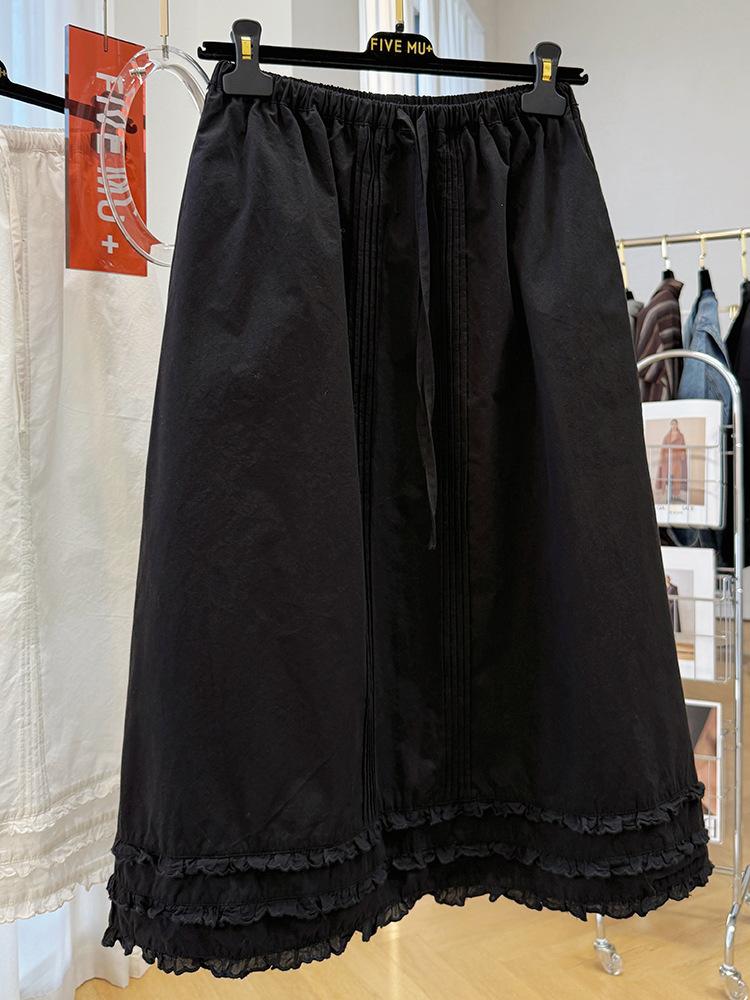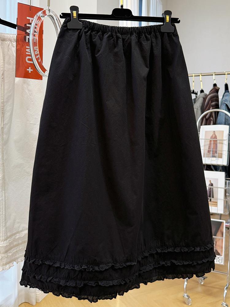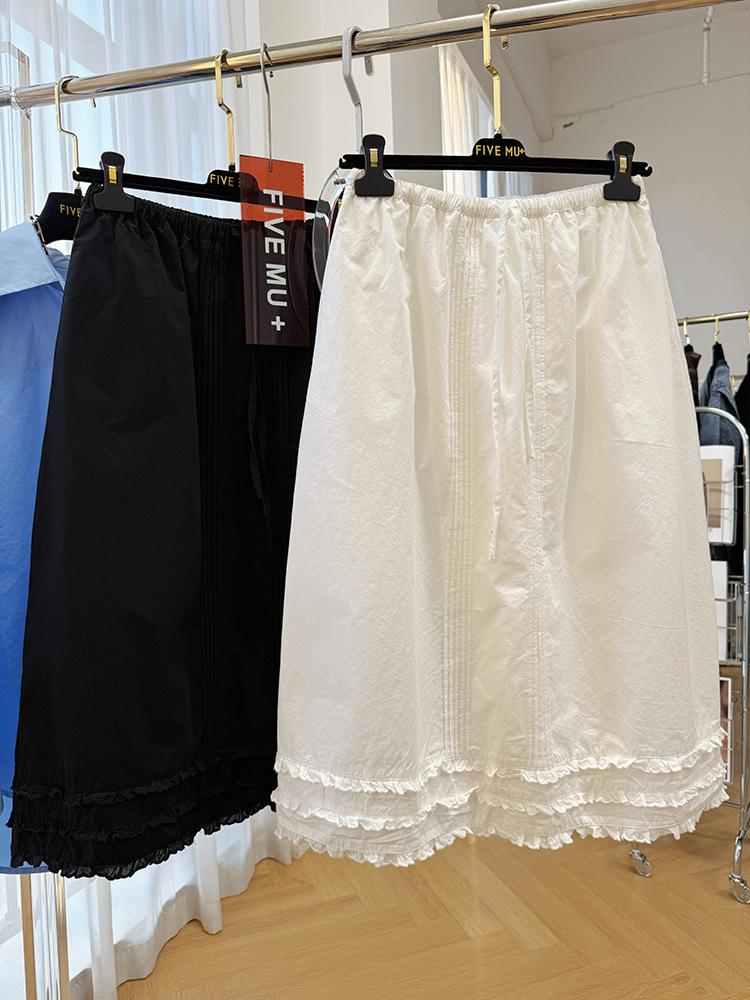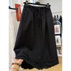 Falda A-line pura de largo medio con cordón en la cintura elástica para mujer Primavera Otoño Adelgazante Borde con volantes Falda bonita única