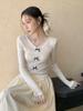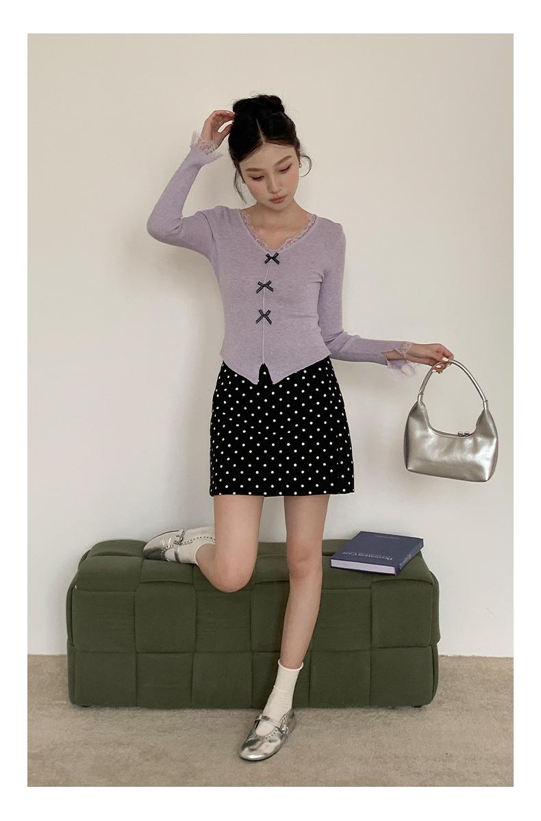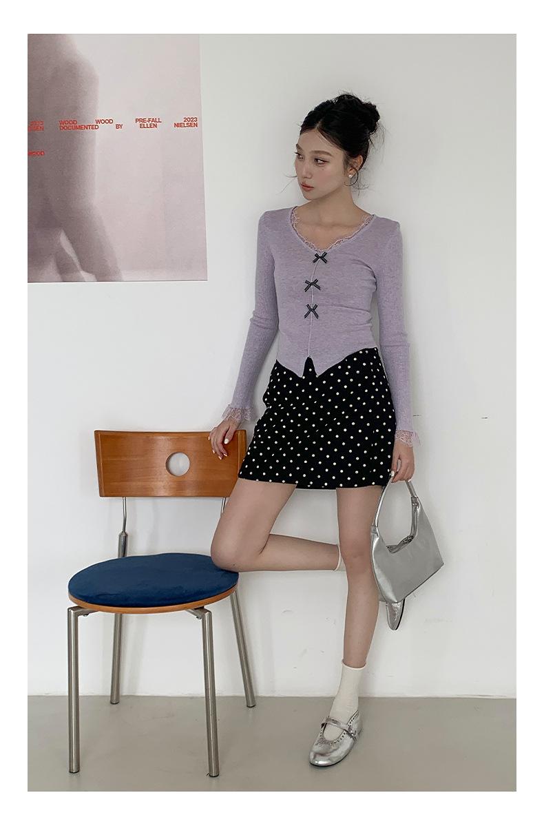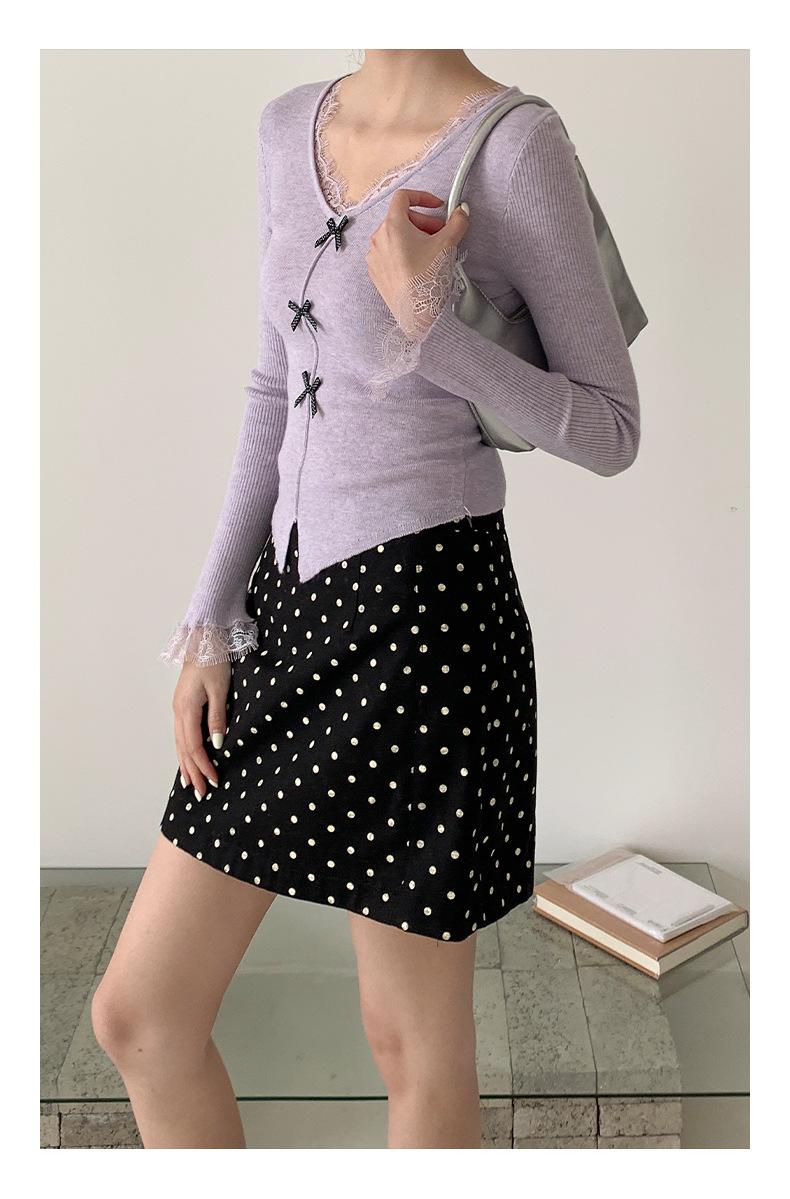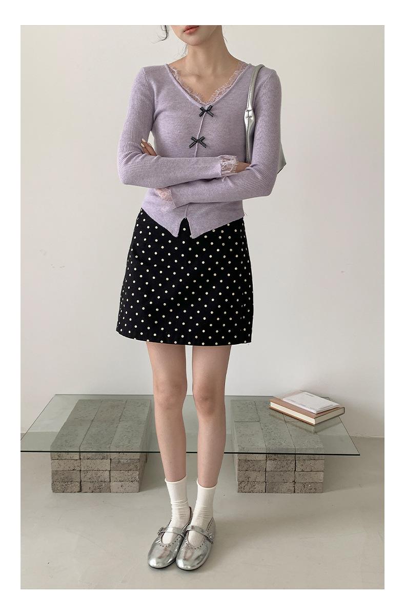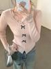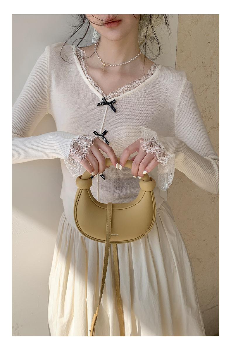 El estilo Yier Shan se ve bien lana corto encaje lazo corte ajustado suéter tejido mujer cuello en V estilo ins 0354