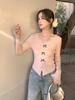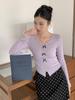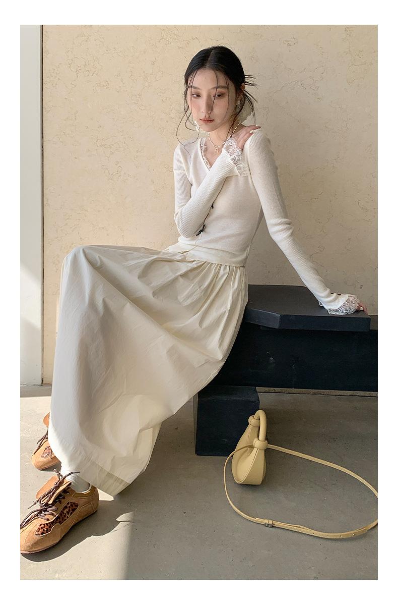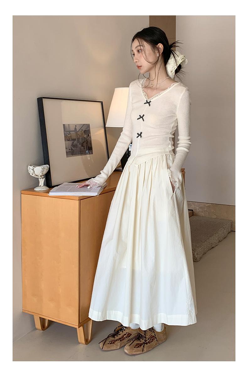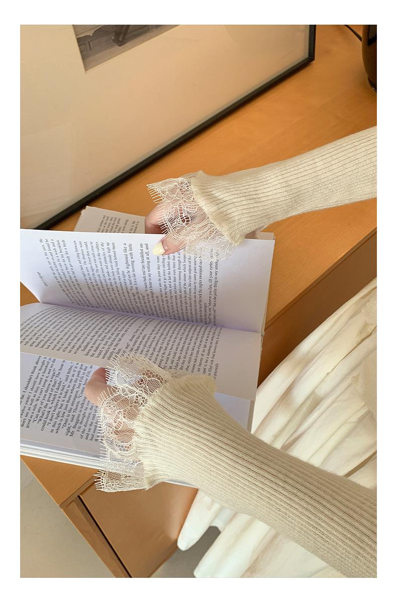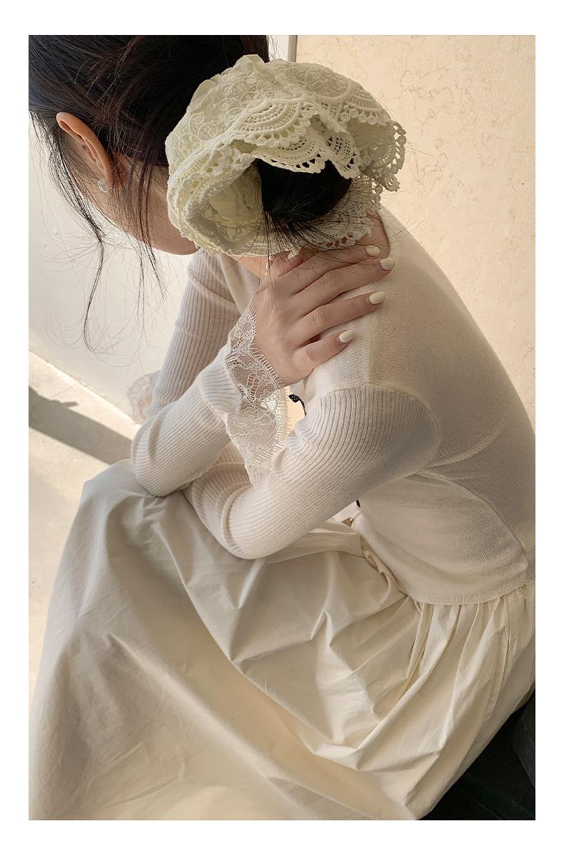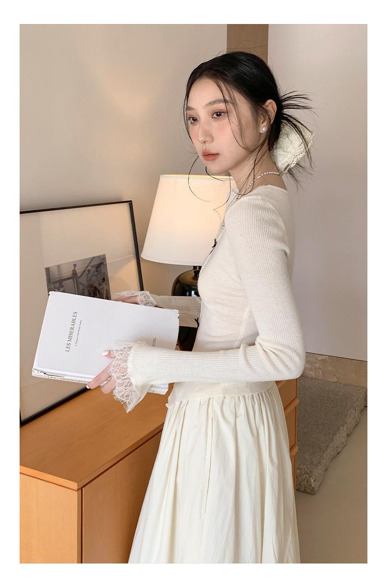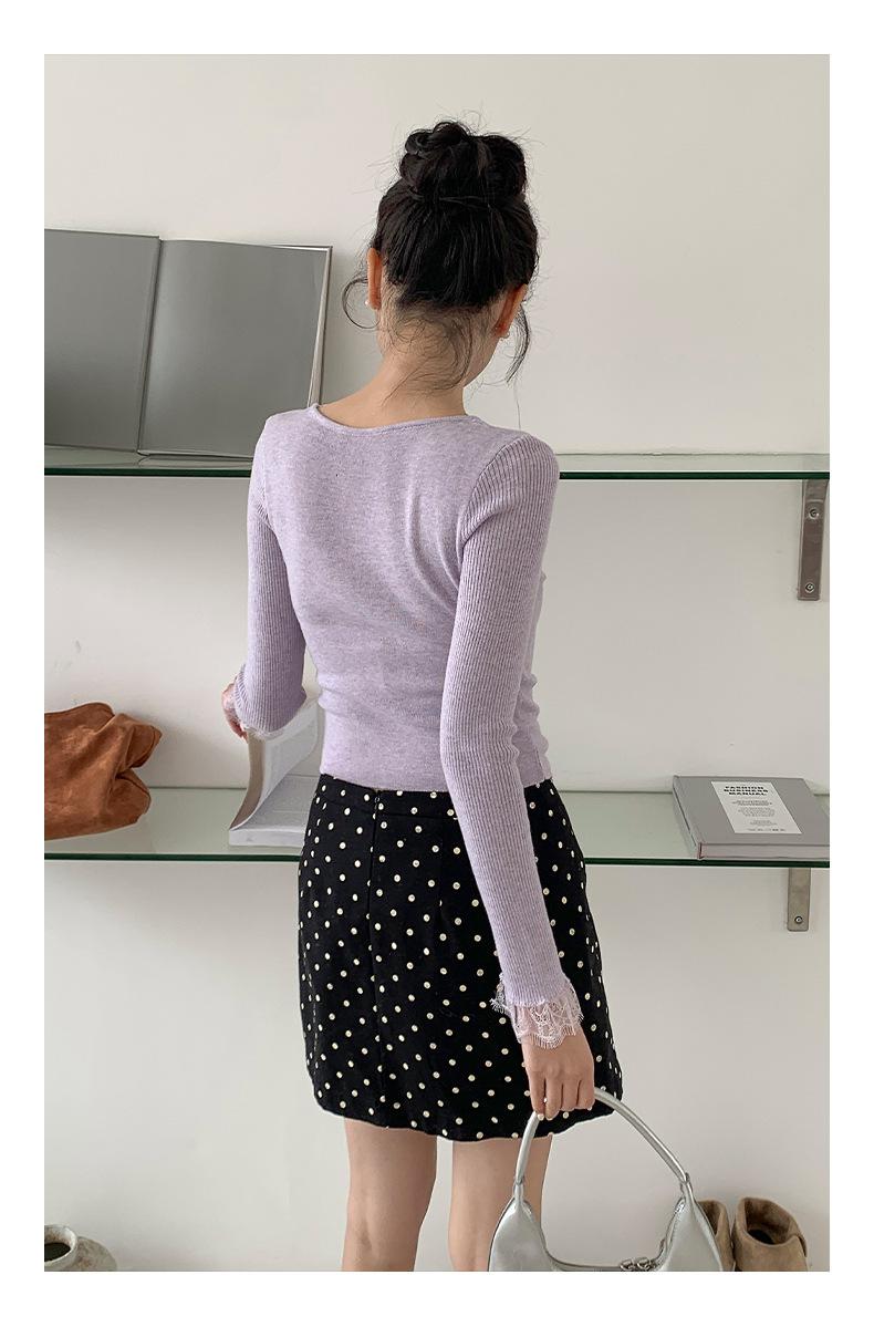 El estilo Yier Shan se ve bien lana corto encaje lazo corte ajustado suéter tejido mujer cuello en V estilo ins 0354