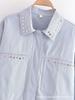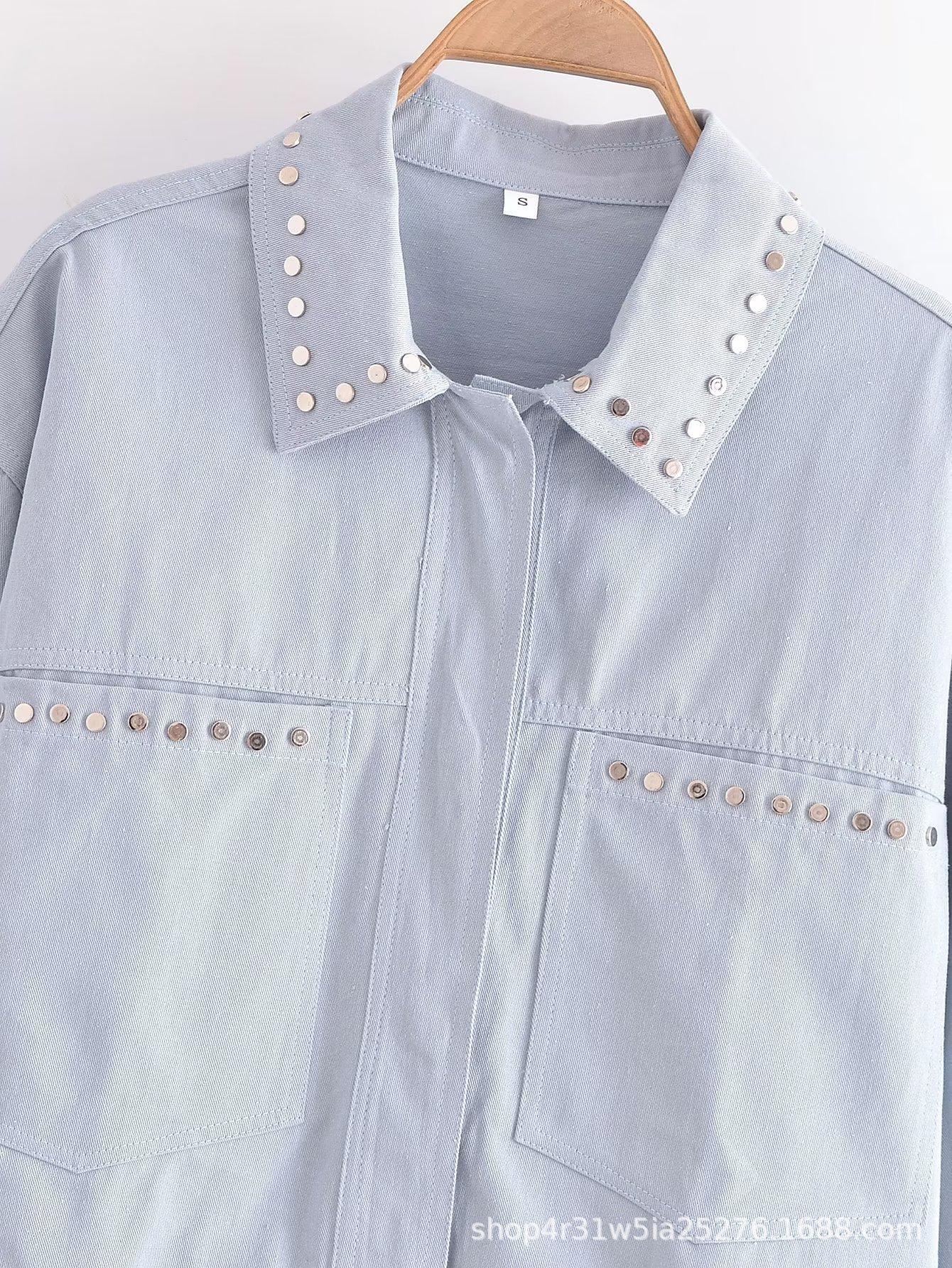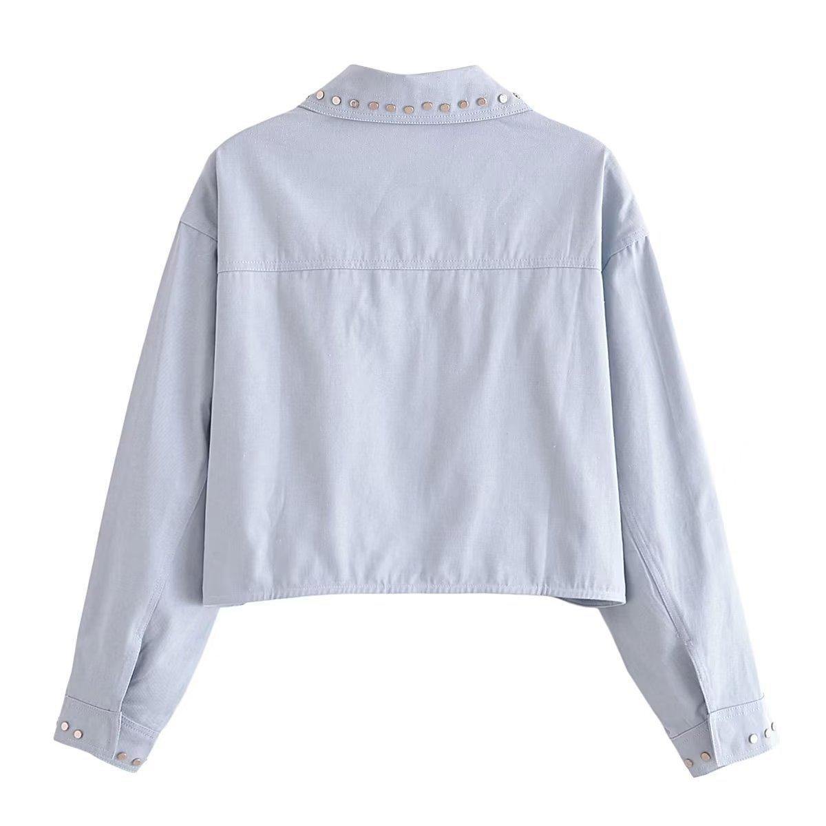 Venta al por mayor transfronteriza 2023 otoño nueva camisa corta suelta con remaches para mujer Abrigo de mezclilla