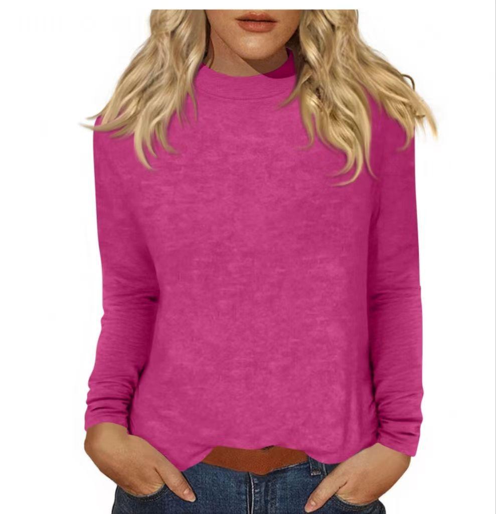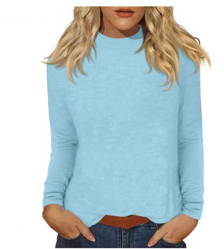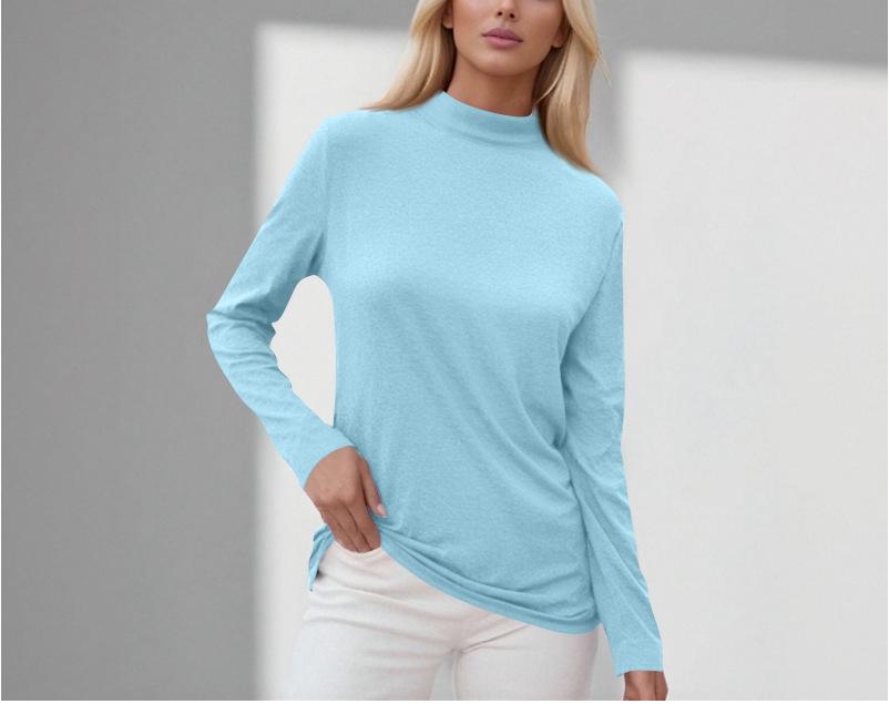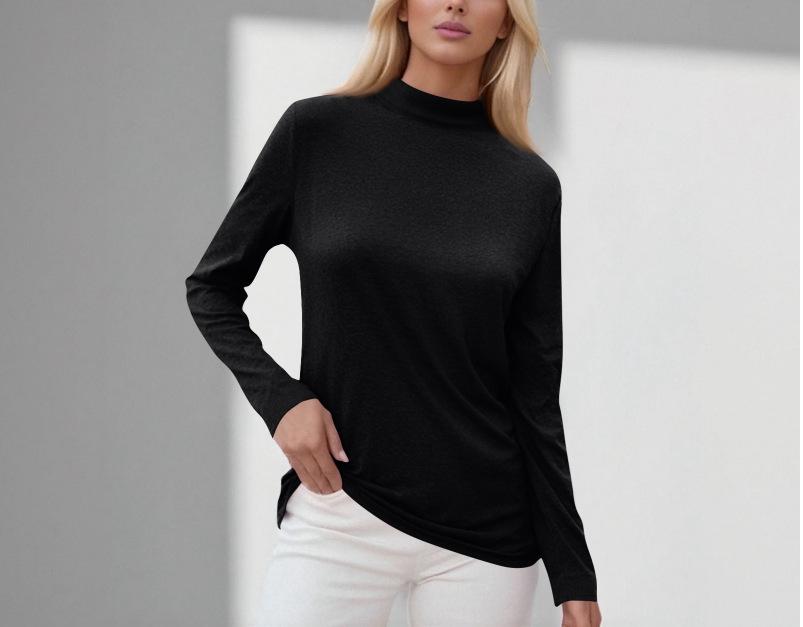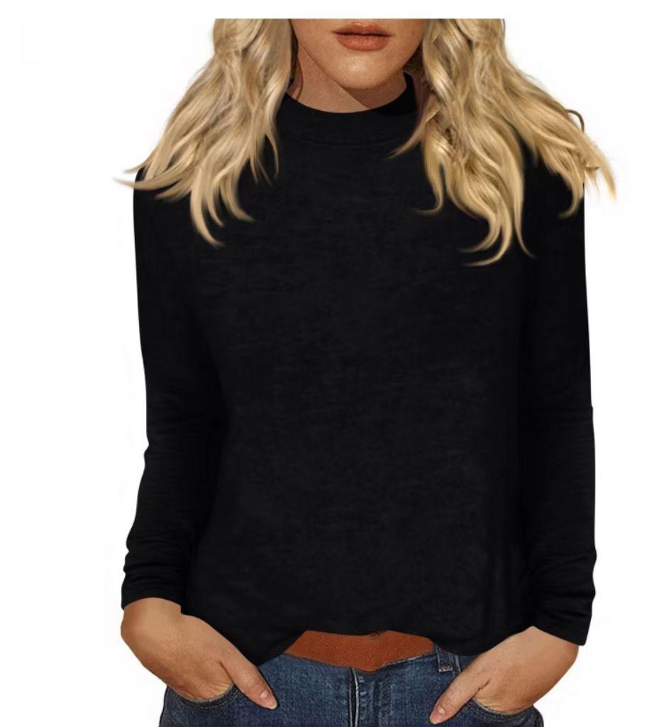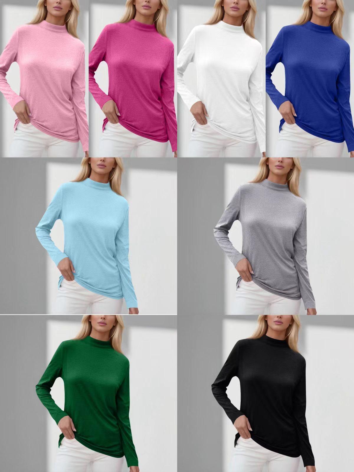 2025 Amazon transfronterizo nueva camiseta de mujer casual diaria de manga larga con cuello medio top de color sólido camisa base en stock