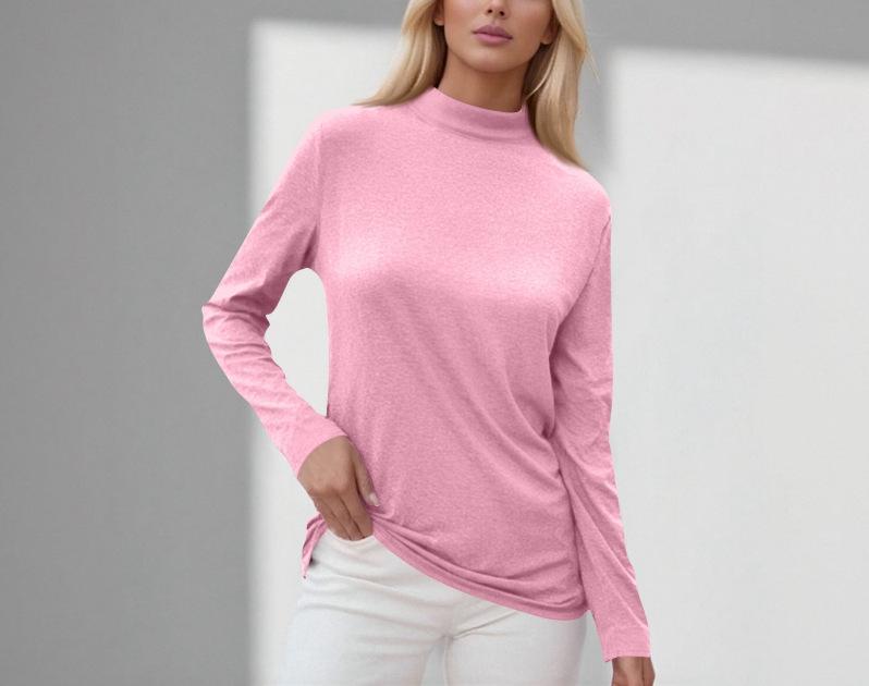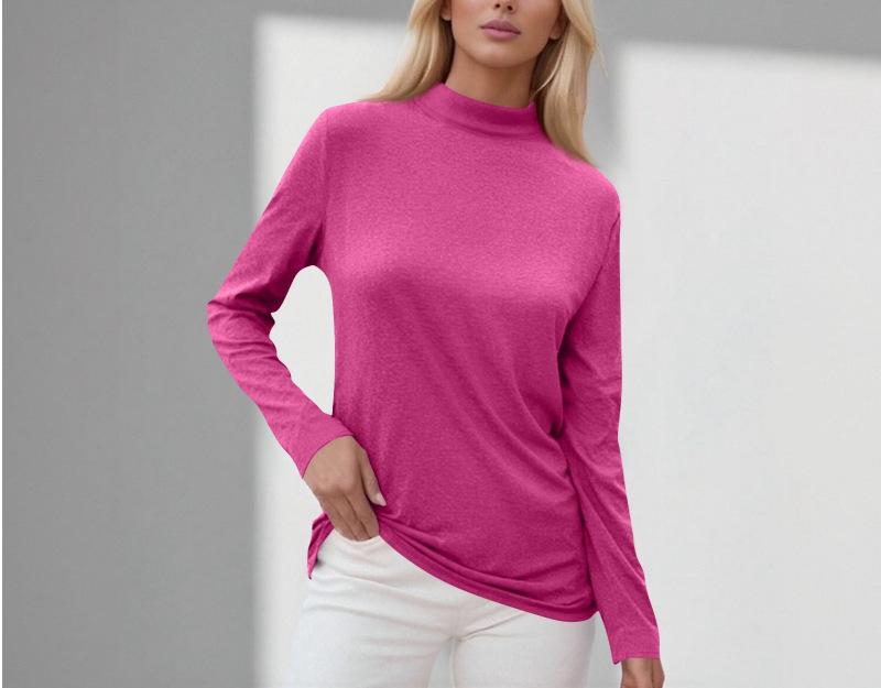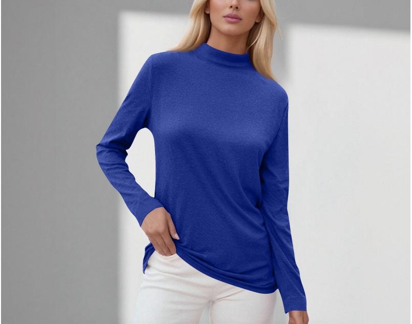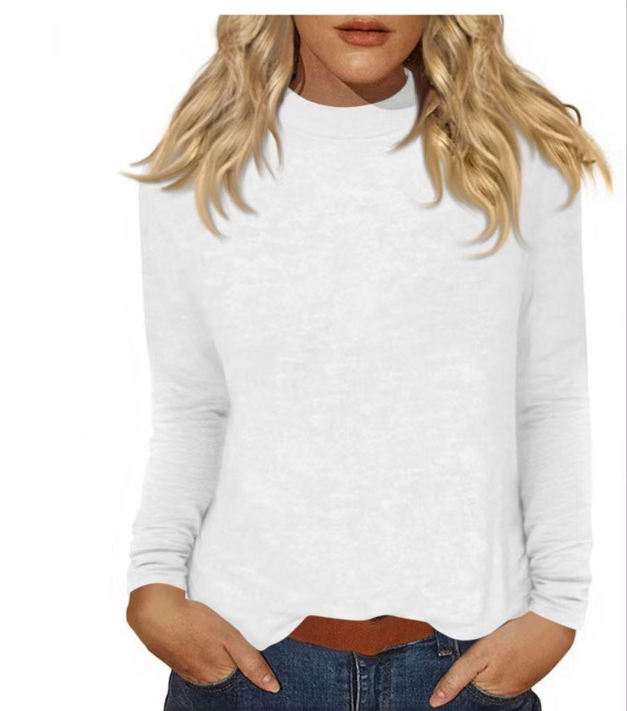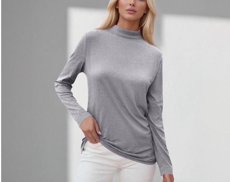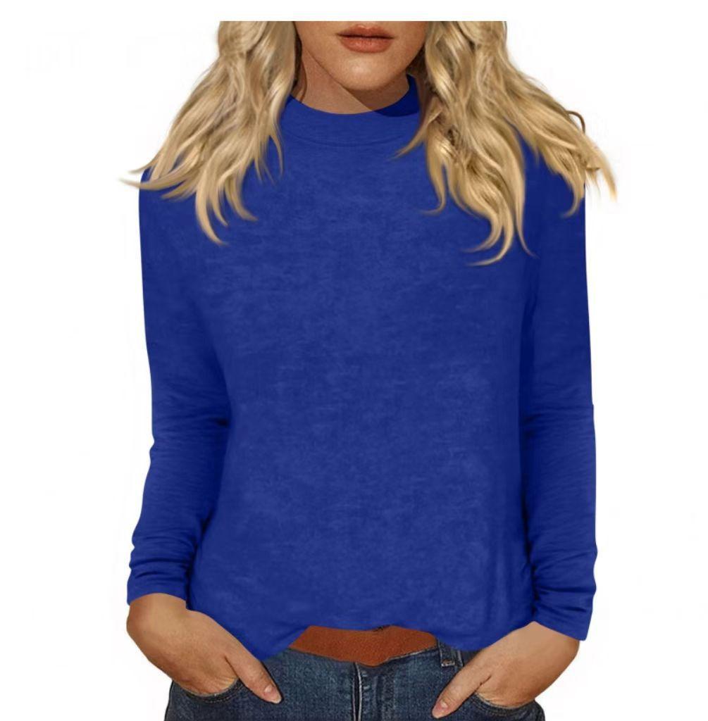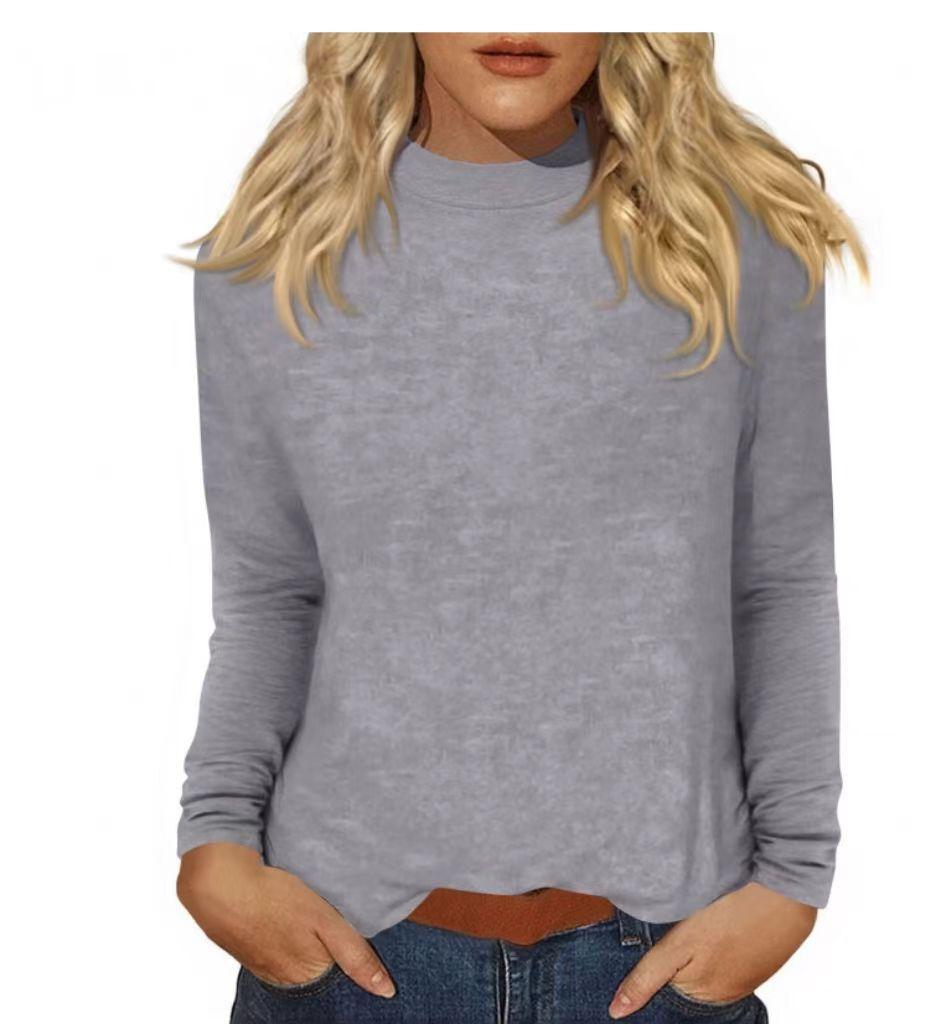 2025 Amazon transfronterizo nueva camiseta de mujer casual diaria de manga larga con cuello medio top de color sólido camisa base en stock