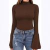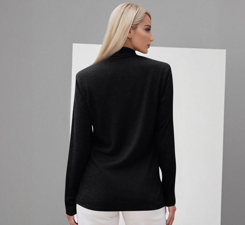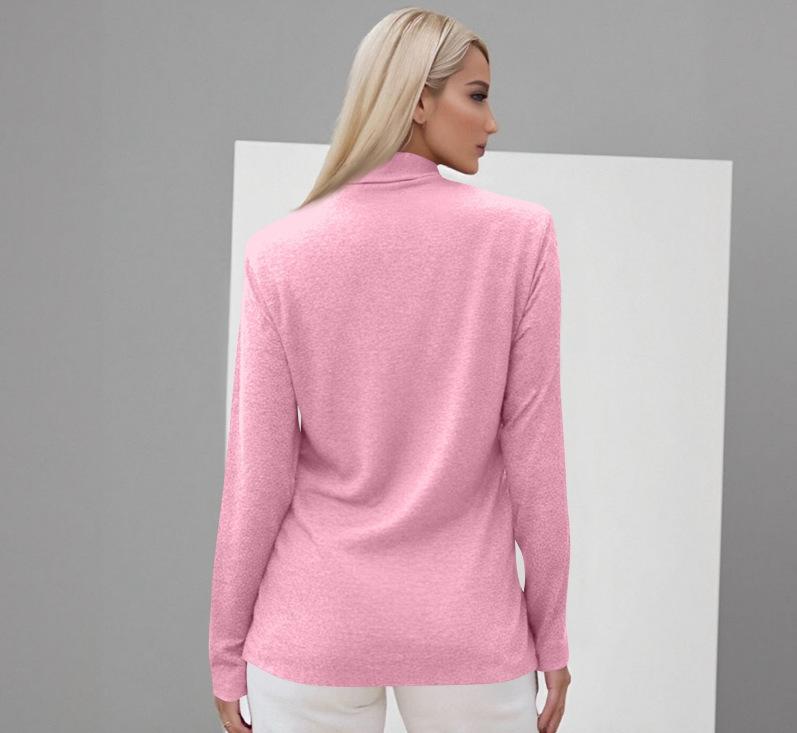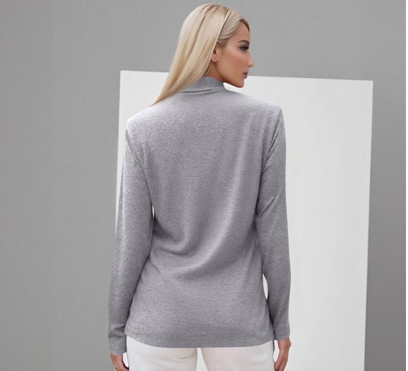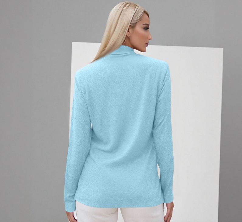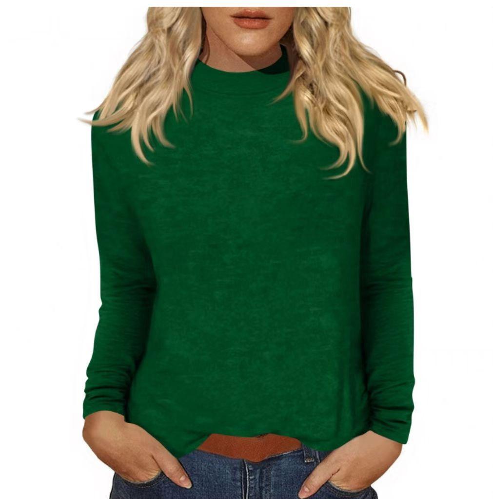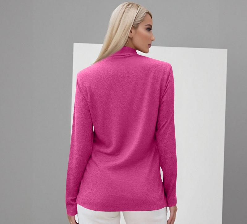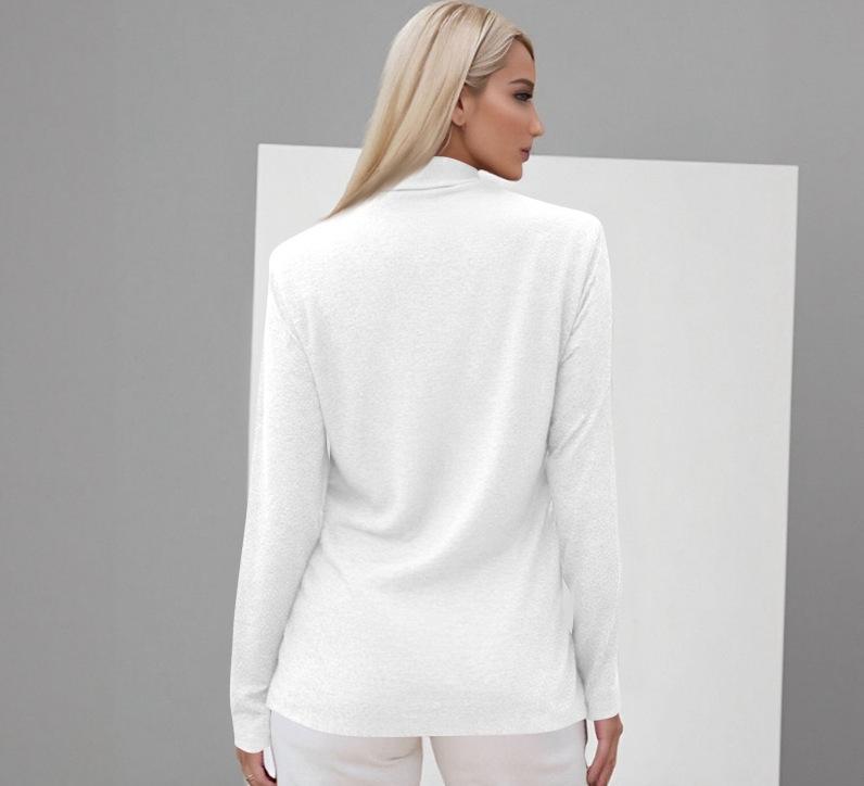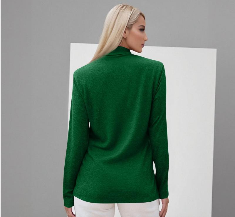 2025 Amazon transfronterizo nueva camiseta de mujer casual diaria de manga larga con cuello medio top de color sólido camisa base en stock